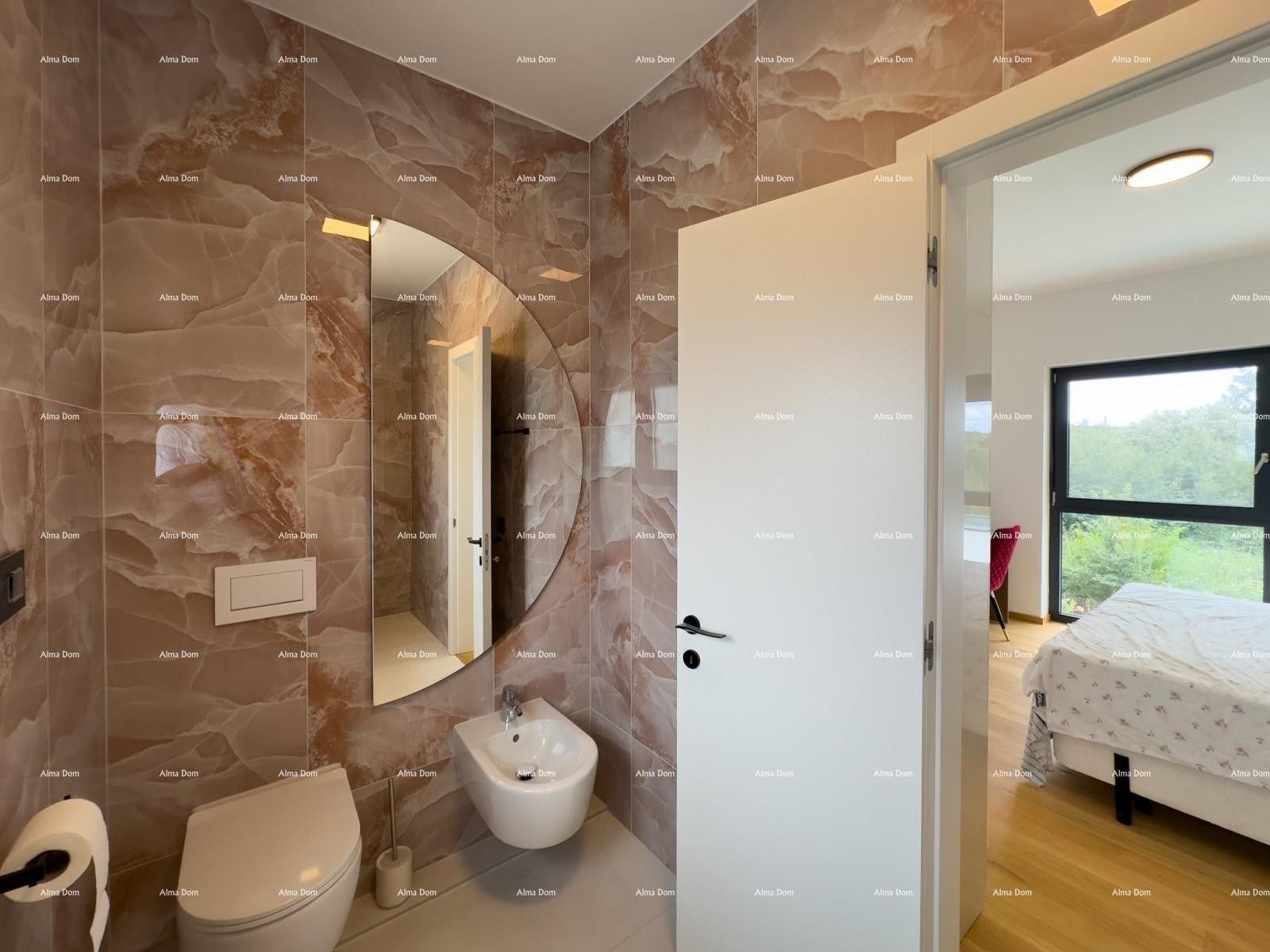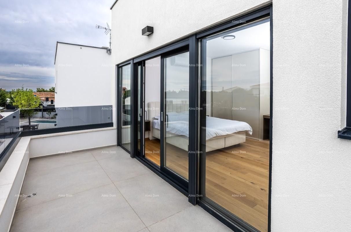Nemovitost je registrována k DPH. Tento krásný dům v Banjole je perfektní oázou pro rodinu nebo investicí do víkendového pobytu. Vila poskytuje pohodlí a soukromí všem členům rodiny. Skládá se z přízemí a horního patra. V přízemí se nachází technická místnost, koupelna, prostorný obývací pokoj s jídelnou a kuchyní. Velké, prostorné stěny nabízejí výhled na venkovní terasu a bazén. Vnitřní schodiště vede do horního patra domu, kde se nacházejí 3 prostorné ložnice s koupelnami (dva pokoje mají terasu). Upravená zahrada s množstvím středomořských rostlin, jako je levandule, rozmarýn, oleandr a staré trvalé olivovníky. Automatické zavlažování. Parkování pro 3 auta. Automatická brána do dvora. Systém video dohledu a alarmu. Video interkom a elektronický vstupní zámek s kódem. Dubové parkety s podlahovým vytápěním. Klimatizace BOSCH v každém pokoji. Kuchyň je zařízená a vybavená domácími spotřebiči MIELE. Pračka a sušička MIELE. TV v každém pokoji. Bazén o rozloze 27 metrů čtverečních - automatický na elektrolýzu. Užijte si letní dny u vlastního bazénu, který je ideální pro relaxaci nebo pohoštění přátel. Lokalita nabízí blízkost pláží a veškeré potřebné občanské vybavenosti, zatímco příroda obklopuje nemovitost a vytváří tak ideální prostředí pro bydlení. Tento dům je příležitostí, kterou si nesmíte nechat ujít!