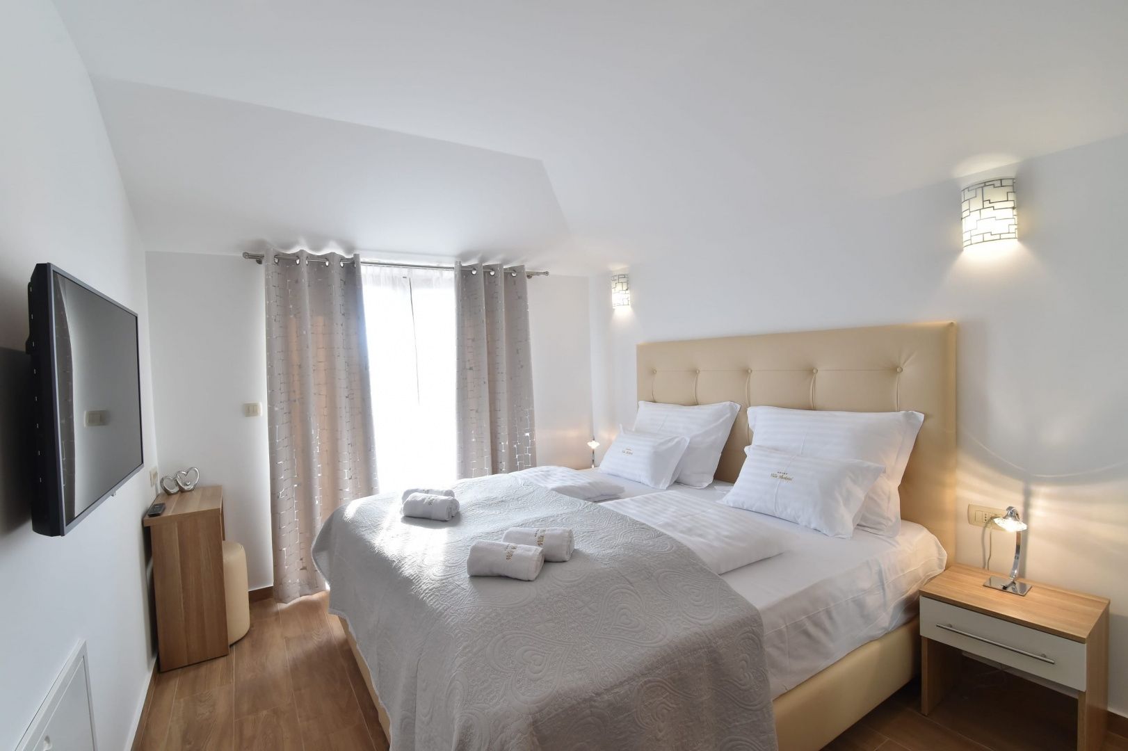 KRK, LINARDIĆI - Kombinace elegance, bezpečí a středomořského kouzla, 350 m2 V exkluzivní a diskrétní lokalitě nedaleko Krku se nachází nádherná samostatně stojící vila o rozloze 350 m², postavená v roce 2019 na pozemku o rozloze 735 m². Architektonicky čistá, moderní a elegantní, tato nemovitost je navržena jako soukromá rezidence pro ty, kteří se nespokojí s průměrem. Panoramatický výhled na moře se táhne jako živé plátno a každý detail domu je podřízen pohodlí, estetice a naprostému soukromí. Interiér je navržen pro optimální ubytování osmi osob, se čtyřmi prostornými ložnicemi, každá s vlastní luxusně vybavenou koupelnou, klimatizací a televizí. Tři pokoje nabízejí manželské postele velikosti king-size, zatímco čtvrtý má dvě samostatná lůžka. Prostor vyzařuje harmonii nejkvalitnějších materiálů, pečlivě vybraného osvětlení a moderních technologií. Obývací pokoj, jídelna a plně vybavená kuchyň tvoří reprezentativní celek ideální pro komorní setkání nebo elegantní večeře. Zvláštní nádech exkluzivity dodává krytý vyhřívaný bazén, navržený jako soukromá lázeňská zóna, která je k dispozici po celý rok. Vila navíc nabízí rekreační zařízení, jako je kulečník, stolní tenis a badminton, které vytvářejí atmosféru luxusní dovolené, aniž byste museli opustit svůj domov. Dvůr je kompletně oplocený a zahradnicky upravený a parkoviště poskytuje místo pro pět vozidel. Vybavení splňuje nejvyšší standardy moderního bydlení. Každý prvek interiéru i exteriéru byl pečlivě vybrán, aby poskytoval pocit rafinované elegance a trvalé hodnoty. Nemovitost dosahuje výjimečných výsledků v turistickém segmentu s vysokou obsazeností po celý rok. Budoucí majitel může převzít zavedený a ziskový podnik a nadále generovat značné příjmy s minimálním rizikem. Existuje možnost koupě společnosti s možností vrácení nebo započtení DPH, stejně jako možnost převzetí stávající společnosti s kompletním obchodním modelem, což činí tuto nabídku obzvláště atraktivní pro vážné investory. Vila se nachází 12 kilometrů od města Krk, restaurace a obchod jsou vzdáleny pouze 1 kilometr, moře 1,2 kilometru, letiště 28 kilometrů a sjezd z dálnice 33 kilometrů. Blízkost letiště zajišťuje rychlé a snadné spojení s domácími i mezinárodními destinacemi. Ostrov Krk, jeden z nejvyhledávanějších jadranských ostrovů, je známý svým křišťálově čistým mořem, exkluzivními zátokami a bohatým kulturním dědictvím. Historické jádro města Krk, špičková gastronomie, přístav, promenády a rozmanité pláže vytvářejí životní styl, který kombinuje prestiž, přírodu a bezpečnou investici. Tato vila je pečlivě navrženým luxusním prostorem v jedné z nejprestižnějších lokalit na Jadranu. Vážení potenciální kupující, těší nás, že máte zájem o nemovitosti z naší nabídky. Pro více informací a dohodu o prohlídce nemovitosti nás neváhejte kontaktovat. Prohlídka nemovitosti je možná pouze s podpisem Smlouvy o realitním zprostředkování.