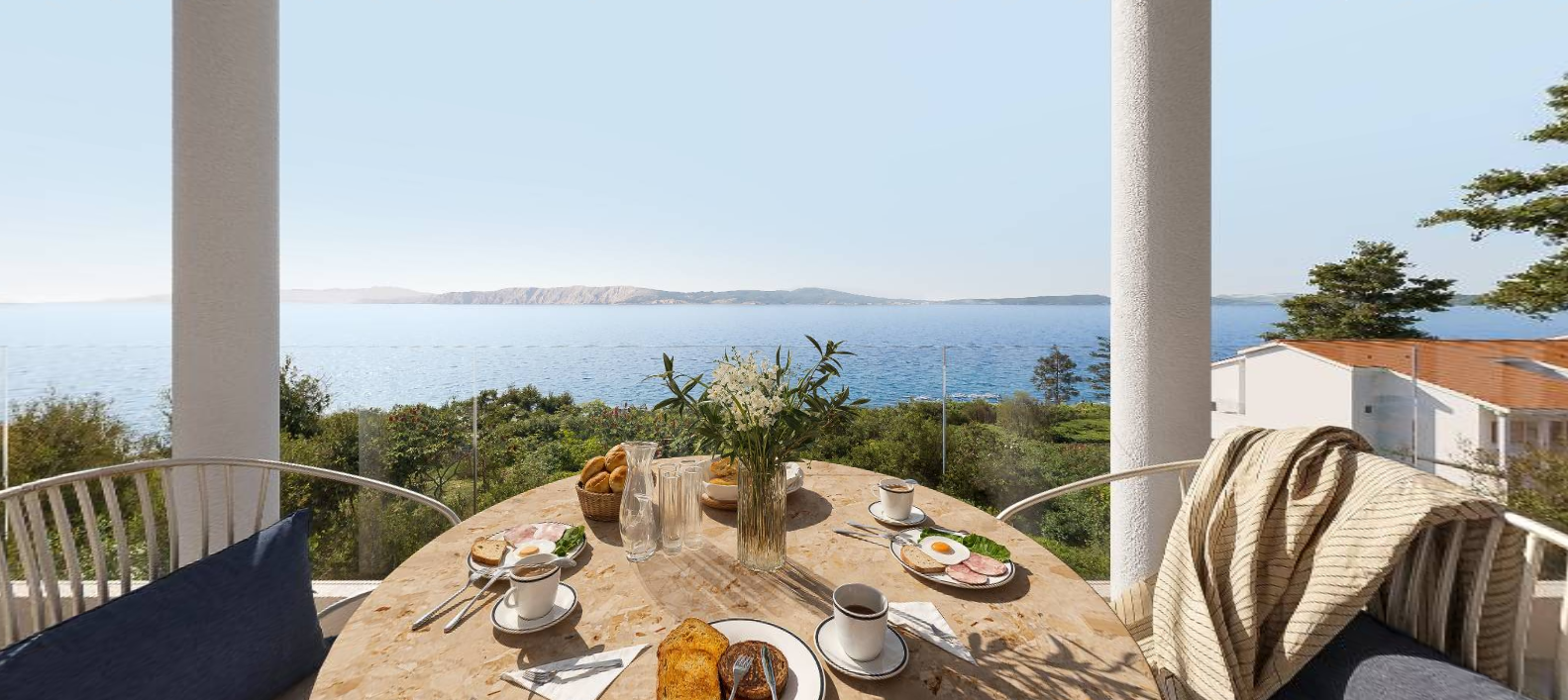 NOVI VINODOLSKI - Penthouse v první řadě u moře s hotelovým vybavením DUX exkluzivně představuje unikátní luxusní resort v Novi Vinodolski, který se nachází v první řadě u moře, s pláží v koncesi, zajištěnou pro majitele, a hotelovým vybavením, které poskytuje kompletní středomořský zážitek. Luxusní penthouse se nachází ve druhém patře Rezidence A o rozloze 142 m2. Centrální část penthousu tvoří prostorný obývací pokoj s kuchyní a jídelnou. Obývací prostor je propojen s prostornou terasou. Vstupní hala vede do dvou ložnic, z nichž každá má vlastní koupelnu. Hlavní ložnice vyniká přímým přístupem na venkovní balkon, zatímco druhá ložnice poskytuje stejnou úroveň pohodlí a soukromí. Penthouse dále zahrnuje koupelnu pro hosty a úložný prostor. Vnitřní dekorace je provedena dle standardu prodávajícího a je účtována paušálně, přičemž veškerá péče o vybavení prostoru je kompletně ponechána na investorovi. Resort dále nabízí řadu zařízení, která zvyšují životní standard. K dispozici jsou tři bazény a odpočinkové zóny, wellness a spa centrum, restaurace a bary a další vybavení, jako je tenisový kurt, kryté hřiště a aquapark pro nejmenší. V salonku pro majitele budou dva kurty na padel. K dispozici jsou také služby à la carte, jako je prádelna, rozvoz potravin, pronájem auta nebo lodi, rezervace výletů, soukromý trenér, masáže v rezidenci a hlídání dětí. Zakoupením rezidence získáte také exkluzivní členství v programu Accor Ownership Benefits se statusem VVIP a řadou výhod. Za užívání zařízení v tomto exkluzivním komplexu platí budoucí majitel paušální roční poplatek, který zahrnuje užívání všech běžných zařízení a pravidelnou údržbu zařízení. Služby, jako je venkovní úklid, údržba zahrady a zavlažovací systém, jsou zahrnuty v uvedené ceně, což majitelům zajišťuje bezstarostné užívání vysokého životního standardu, který tento komplex nabízí. Resort má soukromou garáž se 450 parkovacími místy, z nichž 304 je vyhrazeno pro majitele, a 10 nabíjecích stanic pro elektromobily. Parkovací místo lze zakoupit za 25 000 EUR, jinak je možný měsíční/roční pronájem. Pro sjednání prohlídky nebo další informace kontaktujte prosím důvěryhodného makléře. Konzultace jsou k dispozici i v němčině.