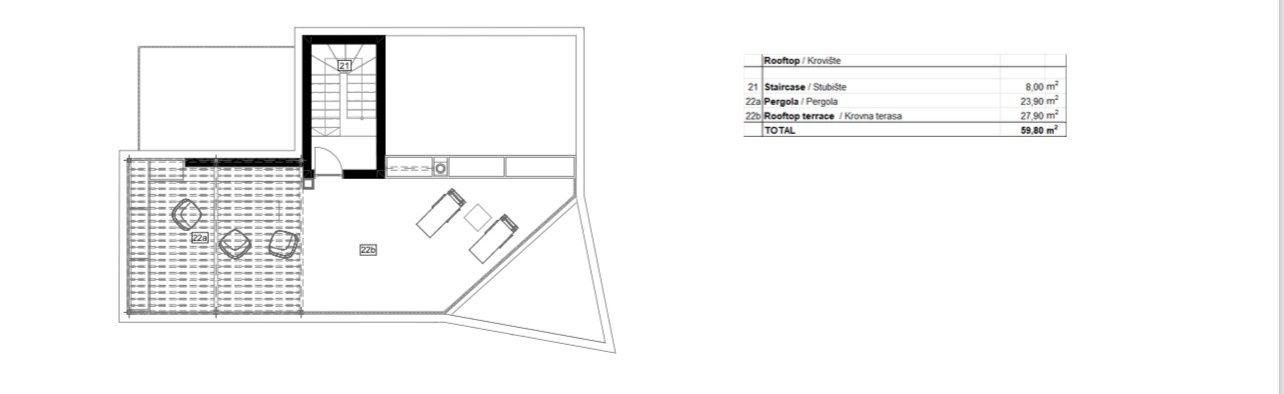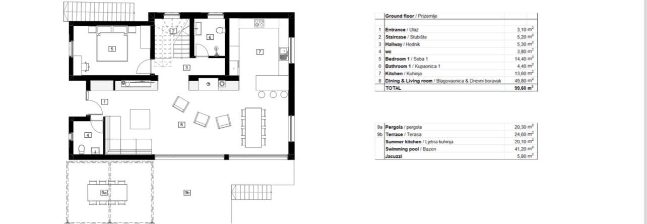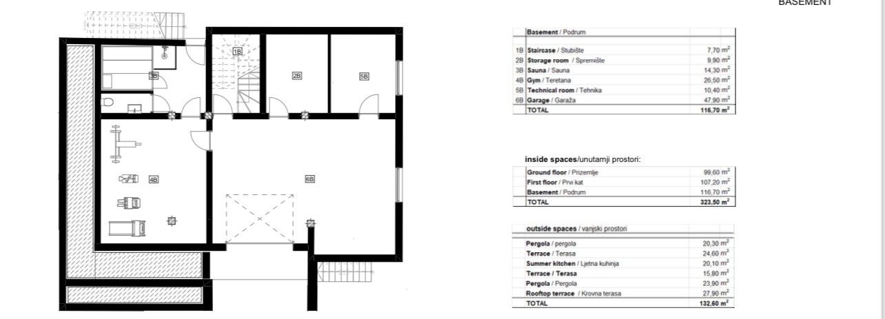 Novinka v nabídce! Prodáváme luxusní vilu s bazénem v Kašteliru, ideální pro ty, kteří hledají moderní design a prvotřídní vybavení! O vile: Tato nádherná vila kombinuje moderní architekturu s luxusními detaily a nabízí dokonalou kombinaci pohodlí a stylu. Rozkládá se na třech podlažích a je navržena tak, aby maximálně využívala přirozené světlo a poskytovala úchvatné výhledy na okolní krajinu. Přízemí: Prostorný vstup vedoucí do velkého obývacího pokoje a jídelny (48,89 m²) Moderní, plně vybavená kuchyně (6,90 m²) Pohodlná ložnice, plně vybavená koupelna a WC pro hosty Velká venkovní terasa s letní kuchyní a elegantní pergolou (20,30 m²) První patro: Čtyři prostorné ložnice s dostatkem přirozeného světla Hlavní ložnice (15,90 m²) s vlastní koupelnou (4,80 m²) Dvě další koupelny Velká terasa (16,80 m²) s panoramatickým výhledem Střecha: Krásně upravená střešní terasa (27,90 m²) s pergolou (23,90 m²) pro stolování pod širým nebem a odpočinek Suterén: Posilovna (26,50 m²), sauna (14,30 m²) a velká garáž (47,90 m²) Technická místnost (11,60 m²) a další úložný prostor Venkovní prostor: Soukromý bazén (41,20 m²) a jacuzzi (5,80 m²) Krásně upravená zahrada s místem pro relaxaci a venkovní aktivity Celková plocha: Vnitřní prostor: 323,50 m² Venkovní prostor: 132,60 m² Tato vila je ideální volbou pro rodiny nebo jednotlivce, kteří hledají moderní luxusní bydlení v klidném prostředí. Nezmeškejte tuto jedinečnou příležitost! Pro více informací a domluvení prohlídky nás kontaktujte