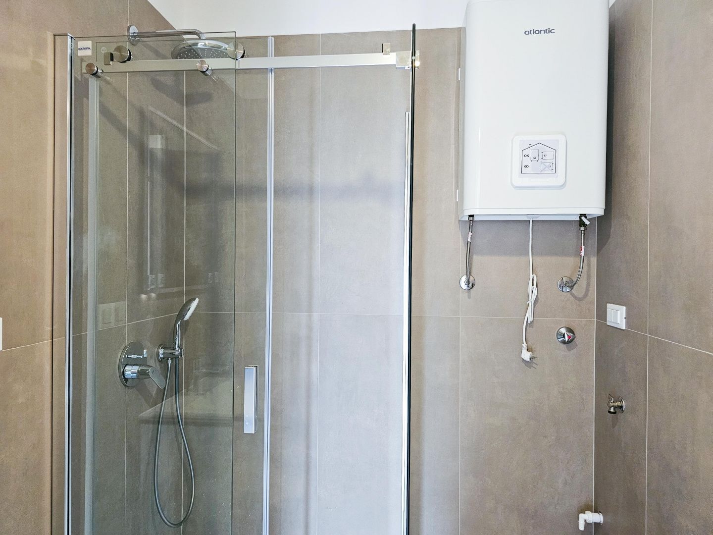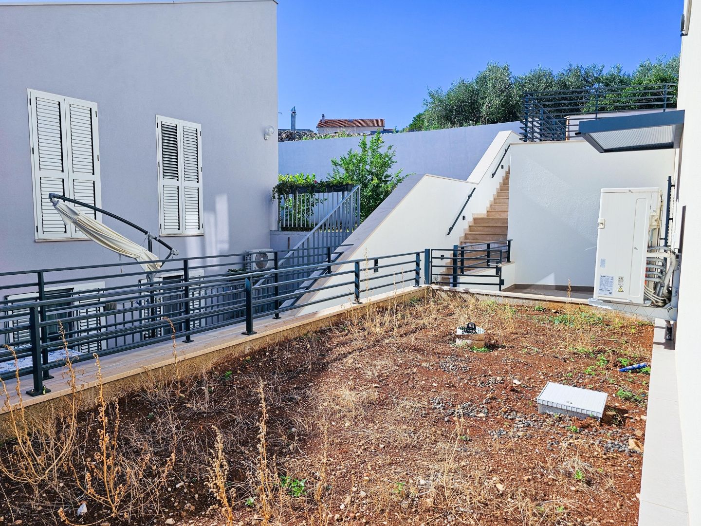 MALI LOŠINJ, CENTRUM - Nově postavený byt s garážovým parkovacím místem - VZÁCNOST! Vzácná nabídka! Představujeme nový byt v samém centru Mali Lošinj. Byt se nachází v přízemí malého bytového domu, pár minut chůze od hlavního náměstí, a potěší vás svým půdorysem a zahradou, která čeká na úpravu! Obytná plocha je 47,21 m2 a k bytu náleží také 30 m2 dvůr, parkovací místo v garáži a úložný prostor. Výborně navržený půdorys - u vstupu do bytu se nachází otevřená vstupní hala a koupelna. Přední část bytu obsahuje kuchyň, jídelnu a obývací pokoj s přístupem na lodžii. Za ní se nachází ložnice pěkného nepravidelného tvaru. Budova byla postavena z kvalitních materiálů, podlahové vytápění v koupelnách, moderní truhlářství s trojsklem, elektronické rolety, multisplit klimatizace, protipožární a bezpečnostní dveře, interkom. Podlahové krytiny jsou z vysoce kvalitní keramiky a prvotřídních parket a na vnější straně je protiskluzová keramika a kámen. Byty jsou připraveny k nastěhování. Dokumentace je v pořádku. Ověření investoři v systému DPH - Kupující neplatí daň z nemovitosti! ***