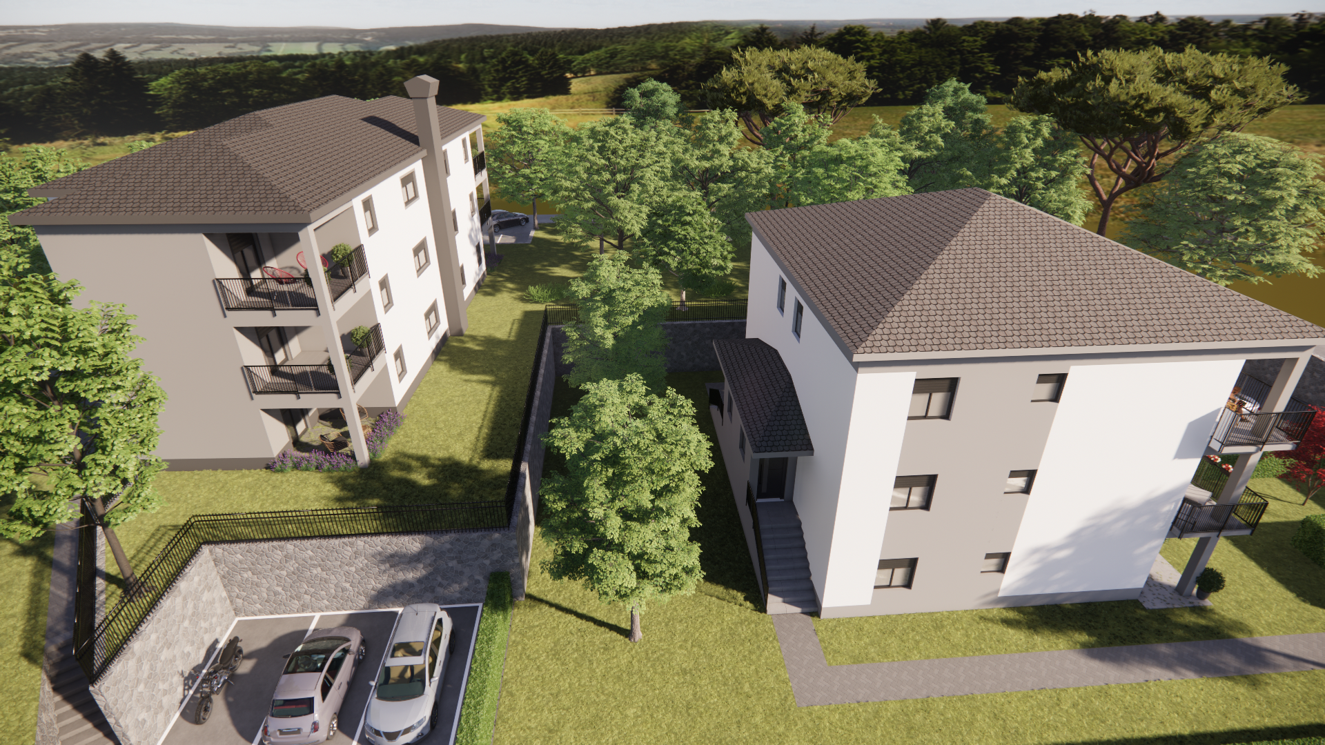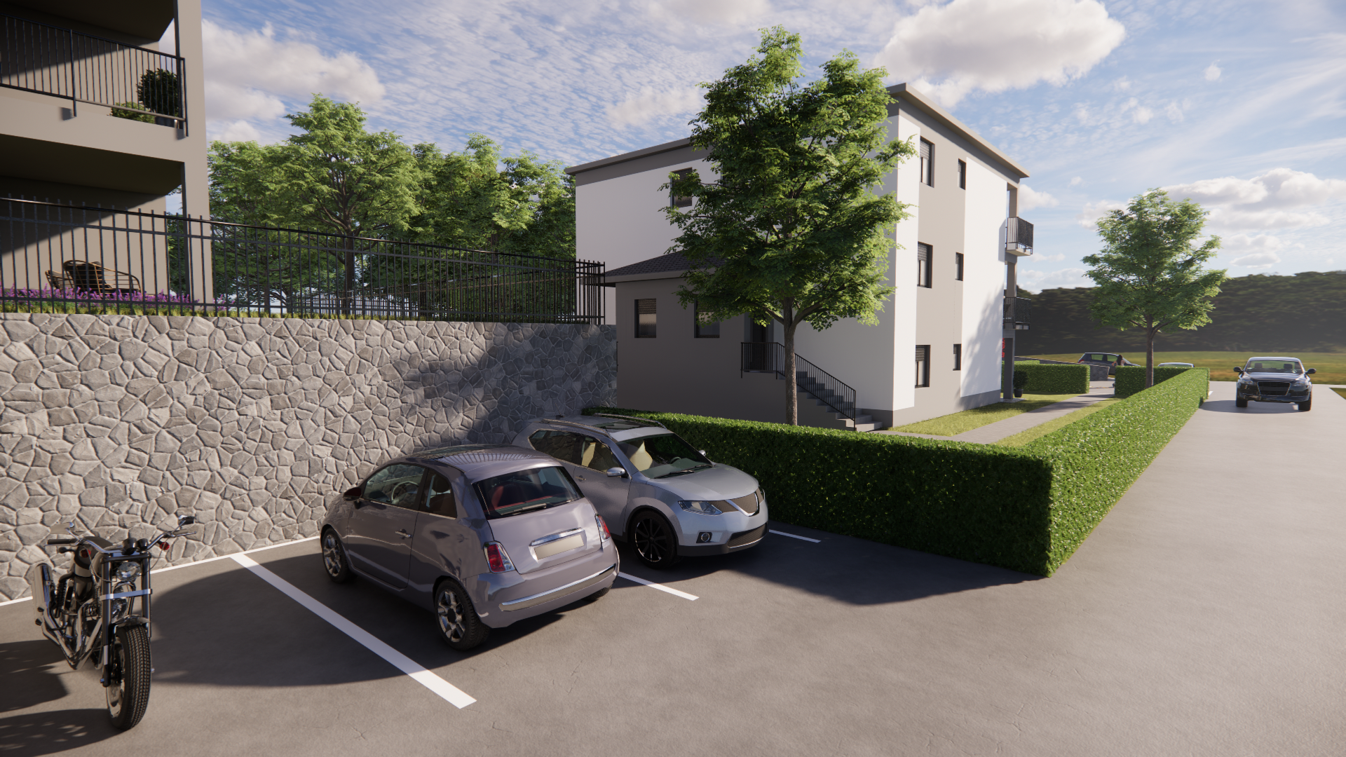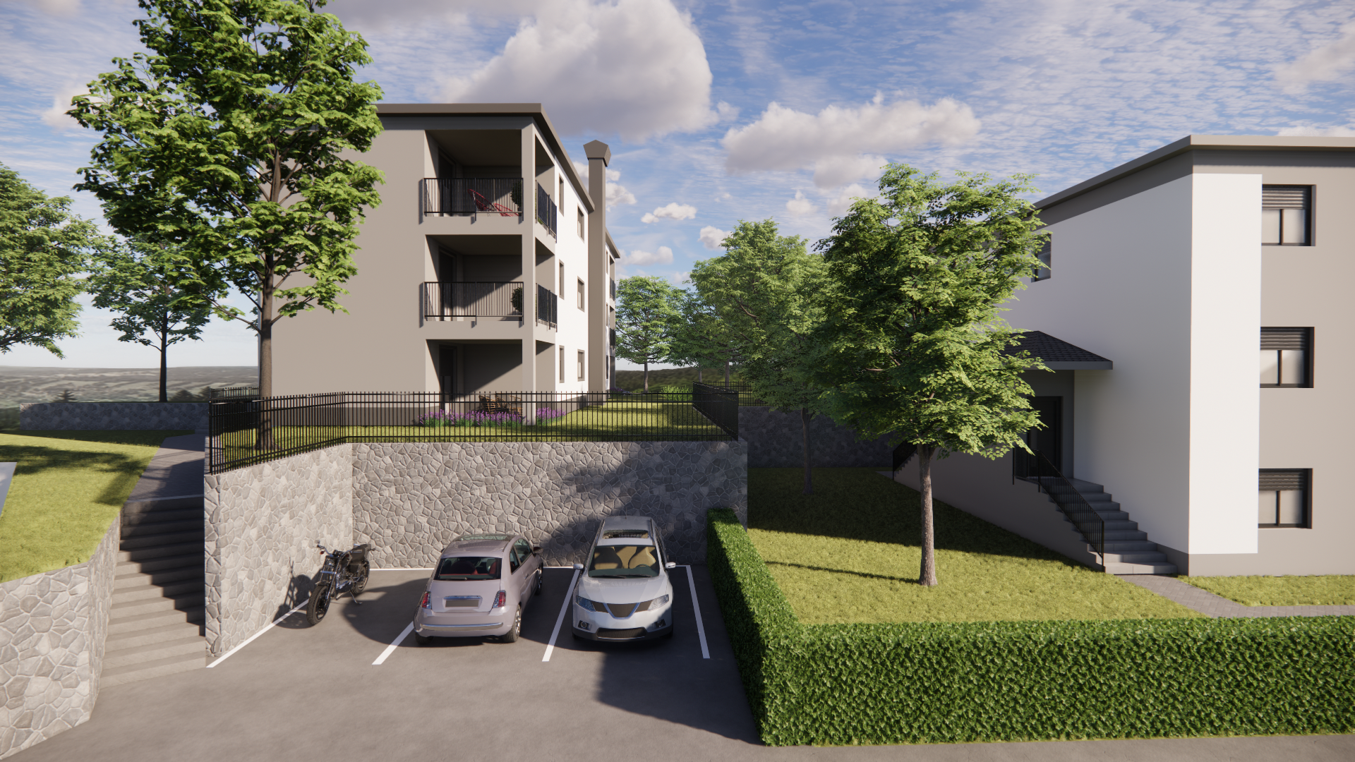 MATULJI, JUŠIĆI, JURDANI- byt, 2. NP, 64,19m2 v novostavbě, DB+2S se zahradou Nedaleko centra Matulji, v Jušići, prodáváme byt ve druhém patře sestávající z: - chodby, - dvou (2) ložnic, - jídelny + obývacího pokoje, - kuchyně, - koupelny a - zastřešené terasy, vše v 1. patře, a to: - jeden sklad (značka č. 3), - jedno parkovací stání (značka č. 3) a - zelené plochy (značka č. 3) mimo budovu, vše označeno modře. Celková plocha obytné části je 59,26 m², příslušenství 53,95 m². Celková plocha speciální části je 113,21 m³'. Zařízení je vybaveno kvalitním truhlářským PVC a elektrickým podlahovým vytápěním. V ceně je zahrnuto DPH, budoucí kupující tedy při koupi nemovitosti daň neplatí.