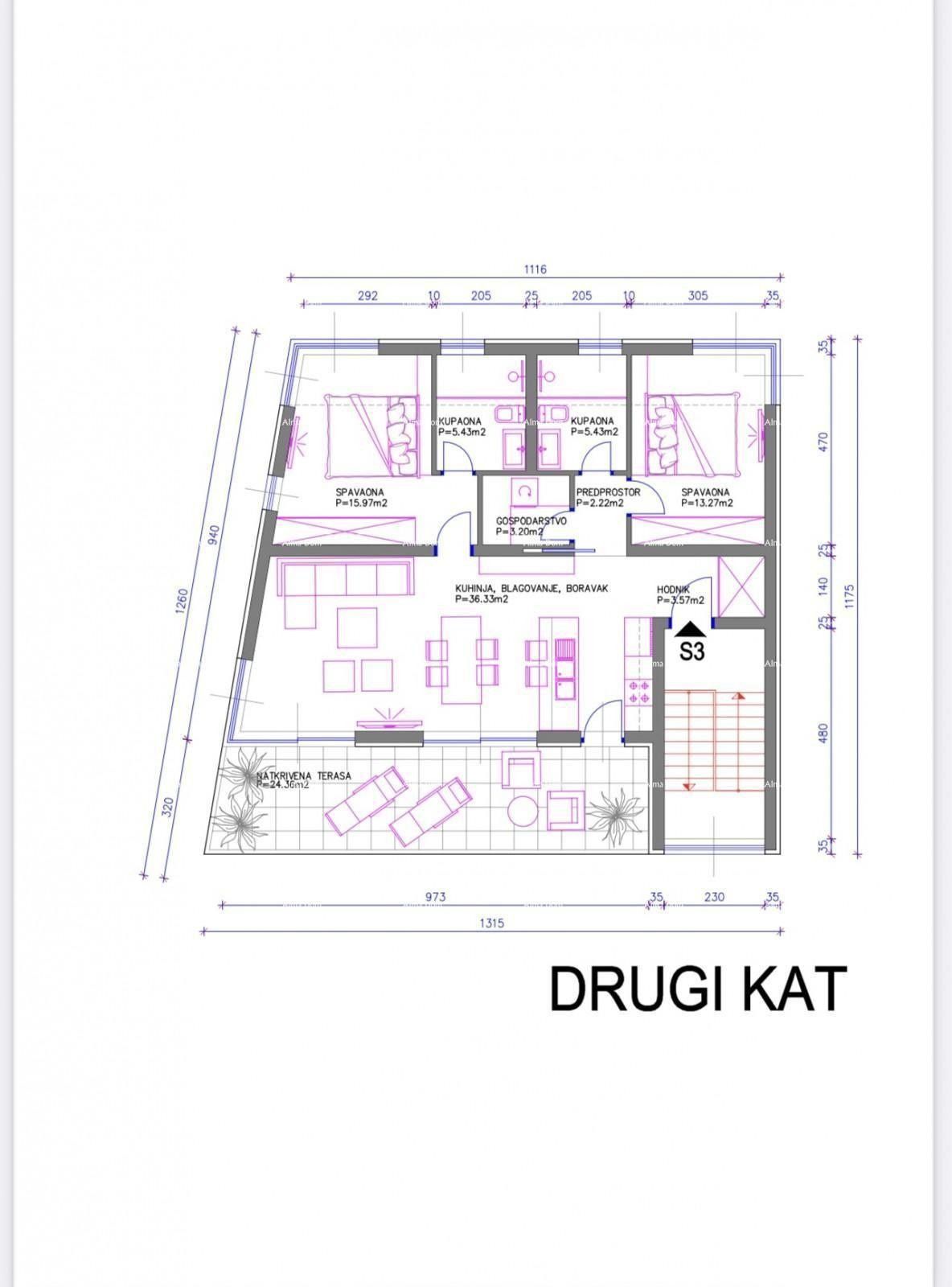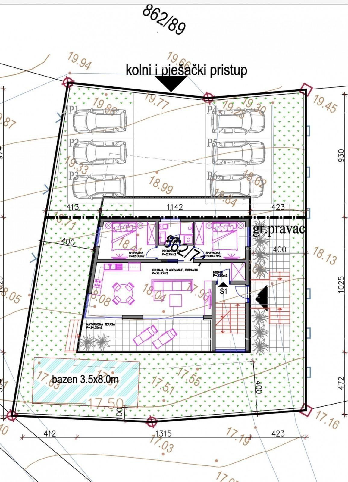 Medulin, Mukalba – Stavební pozemek s rozpracovanou výstavbou. Prodává se atraktivní stavební pozemek s platným stavebním povolením na výstavbu tří luxusních apartmánů – každý apartmán na samostatném podlaží (přízemí, první a druhé patro). Projekt zahrnuje i sklepní prostory. Klíčové výhody: Poplatky za energie již zaplaceny – výstavba v plném proudu! Vynikající lokalita: Pozemek se nachází na kopci s krásným, otevřeným výhledem na moře. Blízkost moře a pláže: Pouze přibližně 200 metrů od lokality. Stav výstavby: Výkopové práce již byly dokončeny. V současné době se betonuje deska a začala výstavba budovy. Ideální pro investici: Díky vynikající poloze, výhledu na moře a blízkosti pláže je tento pozemek ideální volbou pro výstavbu apartmánů k turistickému pronájmu nebo prodeji. Pro více informací nás neváhejte kontaktovat