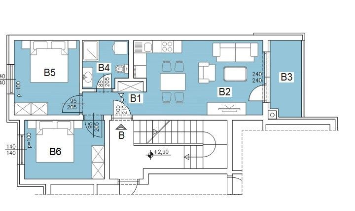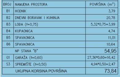 Nové v nabídce!!! Na prodej je moderní byt umístěný na atraktivní lokalitě na vstupu do Puly, v klidné a upravené části města. Projekt zahrnuje šest obytných budov s celkem 24 byty, a celý komplex bude uzavřeného a soukromého typu, ideální pro klidný a bezpečný život. V těsné blízkosti se nacházejí všechny důležité služby – školy, školky, obchodní centra, veřejná doprava, park-les, ideální pro procházky, rekreaci a pobyt v přírodě. Plánované dokončení výstavby je na jaře 2027, s veškerými potřebnými povoleními a energetickou certifikací vysoké účinnosti. Byt F-B se nachází v prvním patře budovy F a zahrnuje celkovou plochu 73,84 m², včetně obytné části, lodžie, garážového parkovacího místa a skladu. Obytný prostor o velikosti 54,95 m² se skládá z obývacího pokoje s kuchyní a jídelnou, dvou ložnic, koupelny, chodby a lodžie, která poskytuje příjemný prostor pro odpočinek. K bytu patří garážové parkovací místo a sklad v přízemí budovy. Zvláštní pozornost byla věnována kvalitě výstavby a finálním detailům. Charakteristiky výstavby: Byty mají energetickou třídu A/A+, s tepelnou izolací o tloušťce 10 cm, bezpečnostními vstupními dveřmi, PVC okny s izolačními skly a žaluziemi a moderní keramikou ve všech místnostech. Na lodžích je položena protiskluzová keramika, zatímco v obývacím pokoji, kuchyni a koupelně jsou plánovány klimatizační jednotky a elektrické podlahové vytápění. V koupelnách jsou instalovány elektrické radiátory se sušáky a termostatem. Okolí budovy bude upraveno s důrazem na detaily – zelené plochy s domácími rostlinami, trávník s automatickým zavlažováním, dlážděné cesty a LED osvětlení s pohybovými senzory vytvářejí příjemné a bezpečné prostředí. Tato část města se vyznačuje vynikající dopravní dostupností, rychlým přístupem do centra Puly a na všechny hlavní komunikace. Tato nemovitost je ideální pro rodinný život nebo investici do kvalitní novostavby.