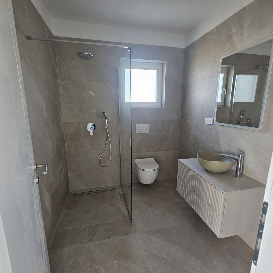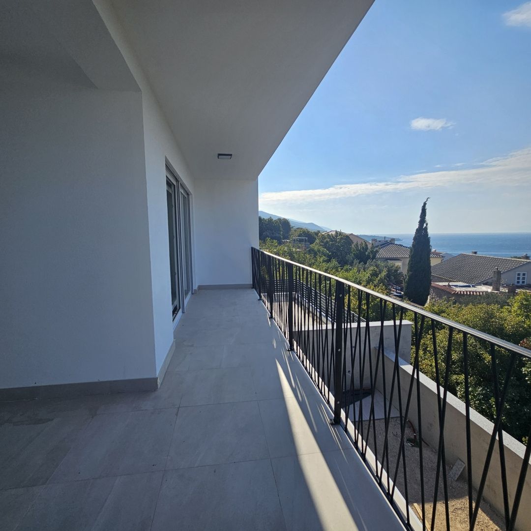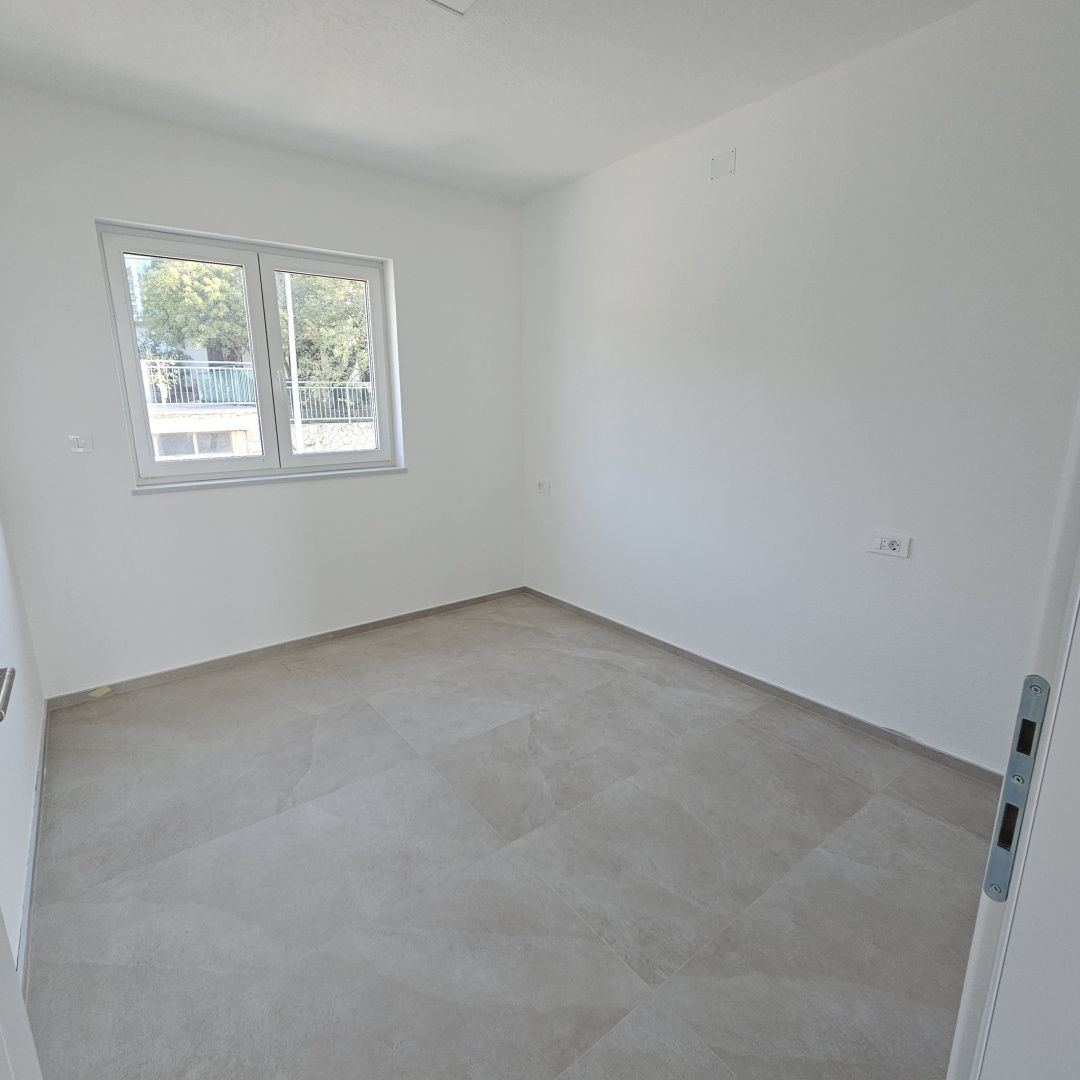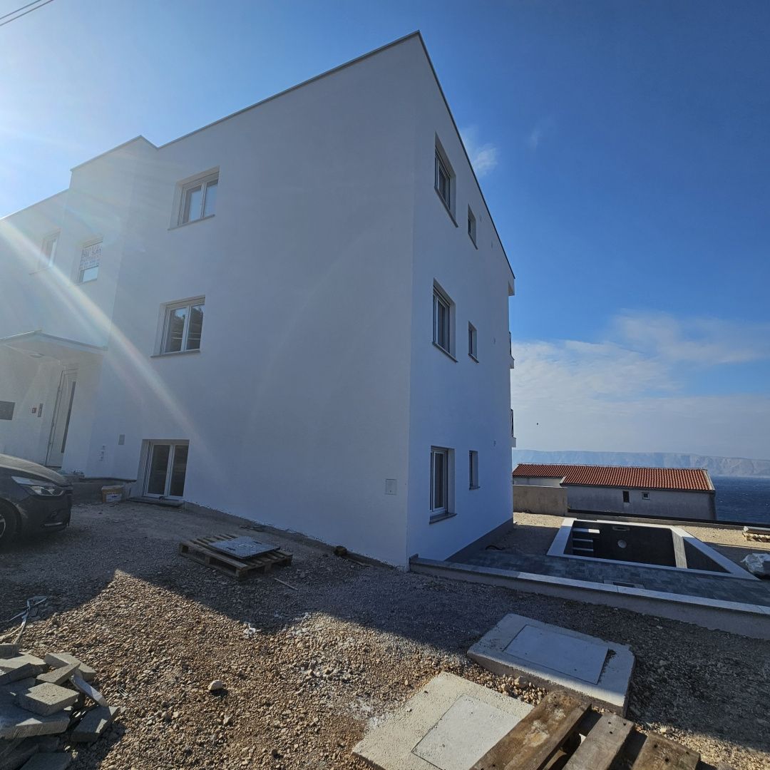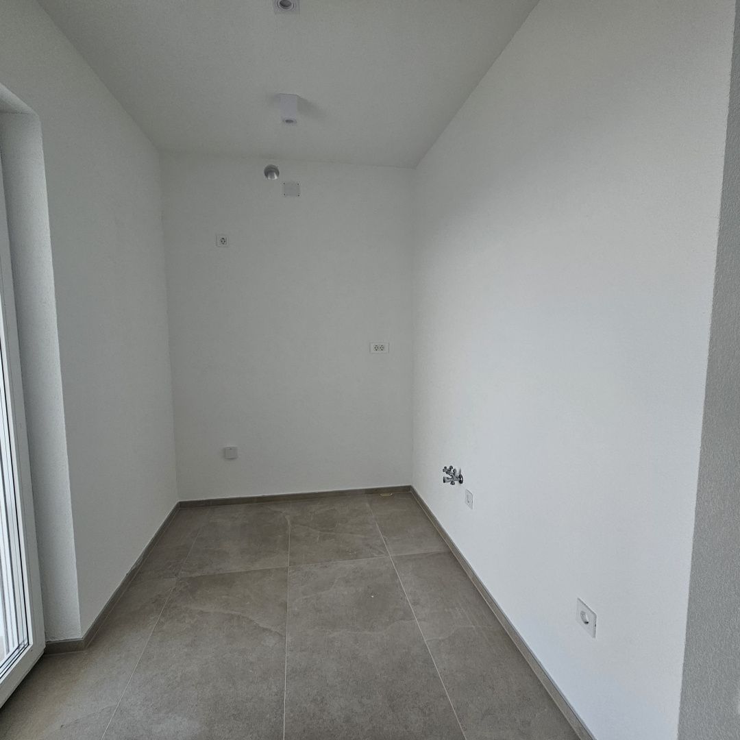 NOVI VINODOLSKI, SMOKVICA - byt v novostavbě, blízko moře Prodáváme byt 2+kk + obývací pokoj v prvotřídní novostavbě pouhých 200 m od moře. Nachází se v prvním patře. Skládá se ze vstupní haly, kuchyně s jídelnou a obývacím pokojem, dvou ložnic, koupelny. Z obývacího prostoru je vstup na prostornou terasu s krásným výhledem na moře. Celková plocha bytu je 53 m2, terasa má 19 m2, což celkem činí 60 m2. Pro vytápění je použito podlahové vytápění, které je zavedeno v celém bytě, a navíc klimatizace. K bytu patří jedno parkovací místo. Byt se prodává na klíč. Samotná budova je v závěrečné fázi výstavby, postavena z kvalitních materiálů ověřeným investorem. Kupující je osvobozen od placení daně z nemovitosti.