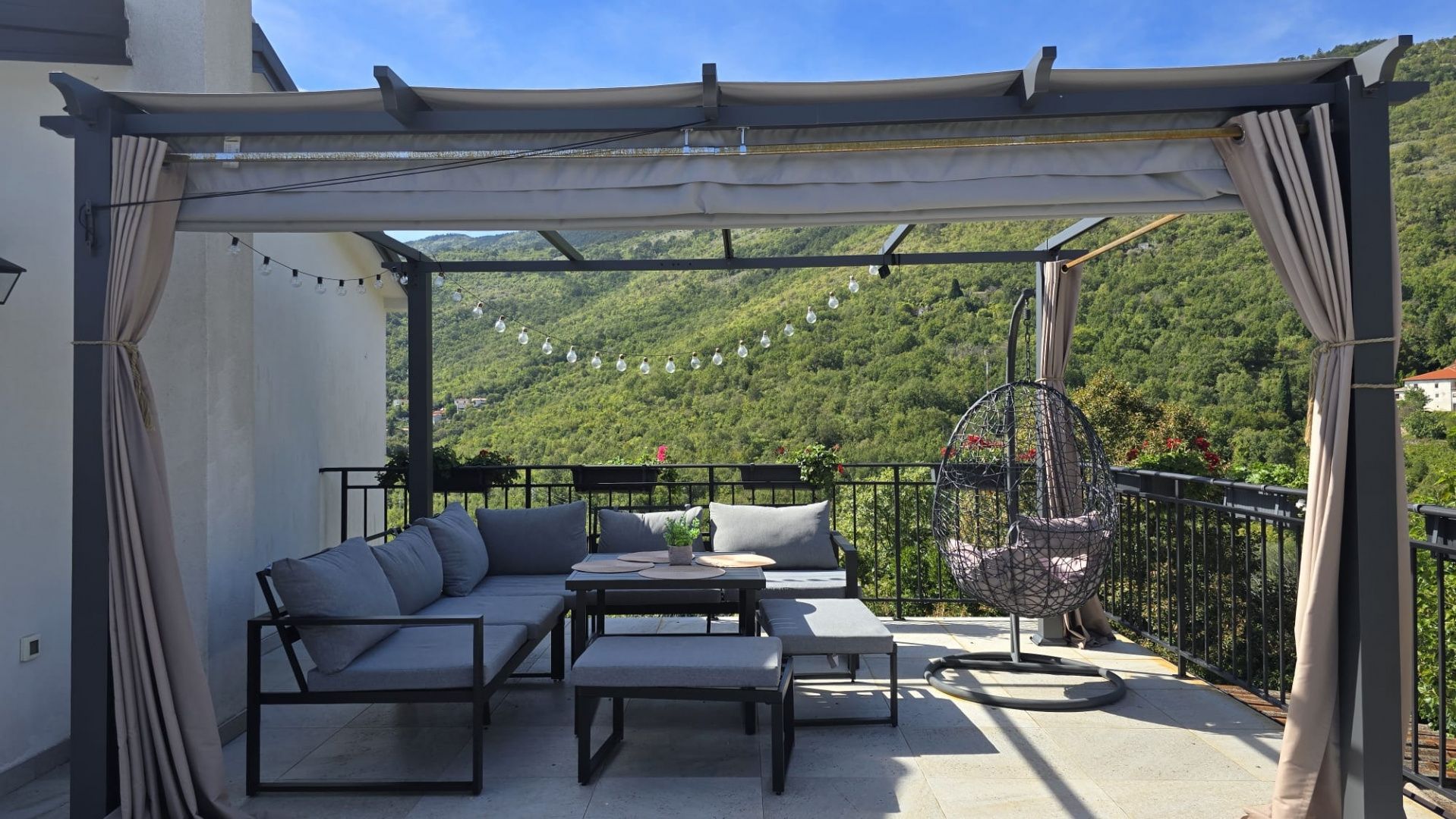 OPATIJA, BRSEČ - Soukromá oáza s wellness centrem poblíž Brseče a Mošćenické Dragy Na svazích nad pobřežím Jaderského moře, v klidném a zeleném koutě Kvarneru, se nachází kompletně zrekonstruovaný dvojdomek, dokonale integrovaný do přírodního prostředí. Tato nemovitost o rozloze 130 m² se rozkládá na třech podlažích a nachází se na upraveném pozemku o rozloze 300 m². Jen pár minut jízdy od moře a jedné z nejkrásnějších přírodních pláží v regionu představuje ideální kombinaci funkčního prostoru a hedonistické atmosféry. V suterénu domu se nacházejí dva samostatné pokoje se samostatnými vchody, které v současné době slouží jako úložný prostor a relaxační zóna, ale nabízejí také možnost přestavby dle potřeby - ať už chcete soukromý ateliér, domácí kancelář nebo koníčkový prostor. Centrální část domu, přízemí, je navržena jako teplý a vzdušný obytný prostor, který kombinuje moderně vybavenou kuchyň, jídelnu a obývací pokoj s přístupem na terasu. Dvě ložnice a elegantní koupelna doplňují toto patro a činí ho ideálním místem pro rodinný život nebo dovolenou. Nejvíce překvapení se skrývá v horním patře – luxusní soukromé wellness centrum navržené jako útočiště pro regeneraci těla i ducha. Finská sauna, krytá vířivka a terasa s posezením pod pergolou nabízejí jedinečný výhled na zeleň a relaxační ticho. Zahrada je kompletně upravená a navržena tak, aby splňovala potřeby všech generací. Najdete zde soukromé parkoviště, dětské hřiště, prostor pro grilování a zpevněný přístup k domu. Vše je promyšleně uspořádáno a připraveno k užívání – ať už pro osobní potřeby nebo turistiku. Dům byl detailně zrekonstruován – včetně všech instalací, podlah, obkladů stěn, sociálního zařízení a nábytku. Instalace klimatizace zajišťuje příjemný pobyt po celý rok. Přístup je zajištěn asfaltovou silnicí a veřejná doprava je vzdálena pouhých 300 metrů. Jeho poloha dává této nemovitosti zvláštní hodnotu. Obklopen přírodou, přesto mimořádně dobře dostupný – je vzdálen pouhých deset minut od trajektového přístavu se spojením na Cres a Lošinj, zatímco Opatija, Rijeka a Matulji jsou snadno dostupné autem. Milovníci aktivního životního stylu najdou na Učce četné možnosti pro pěší turistiku a cyklistiku, stejně jako vynikající podmínky pro potápění, plavání a poznávání krás pobřeží. Blízkost Itálie, Terstu a Benátek dále zvyšuje hodnotu lokality, díky čemuž je tato nemovitost ideální volbou pro ty, kteří chtějí rovnováhu mezi středomořským životním stylem a evropským spojením. Ať už hledáte soukromé útočiště daleko od ruchu města, nebo investici s vynikajícím potenciálem návratnosti, tento dům nabízí výjimečnou hodnotu, vysokou úroveň komfortu a spoustu možností - to vše v autentickém a okouzlujícím prostředí Kvarneru.