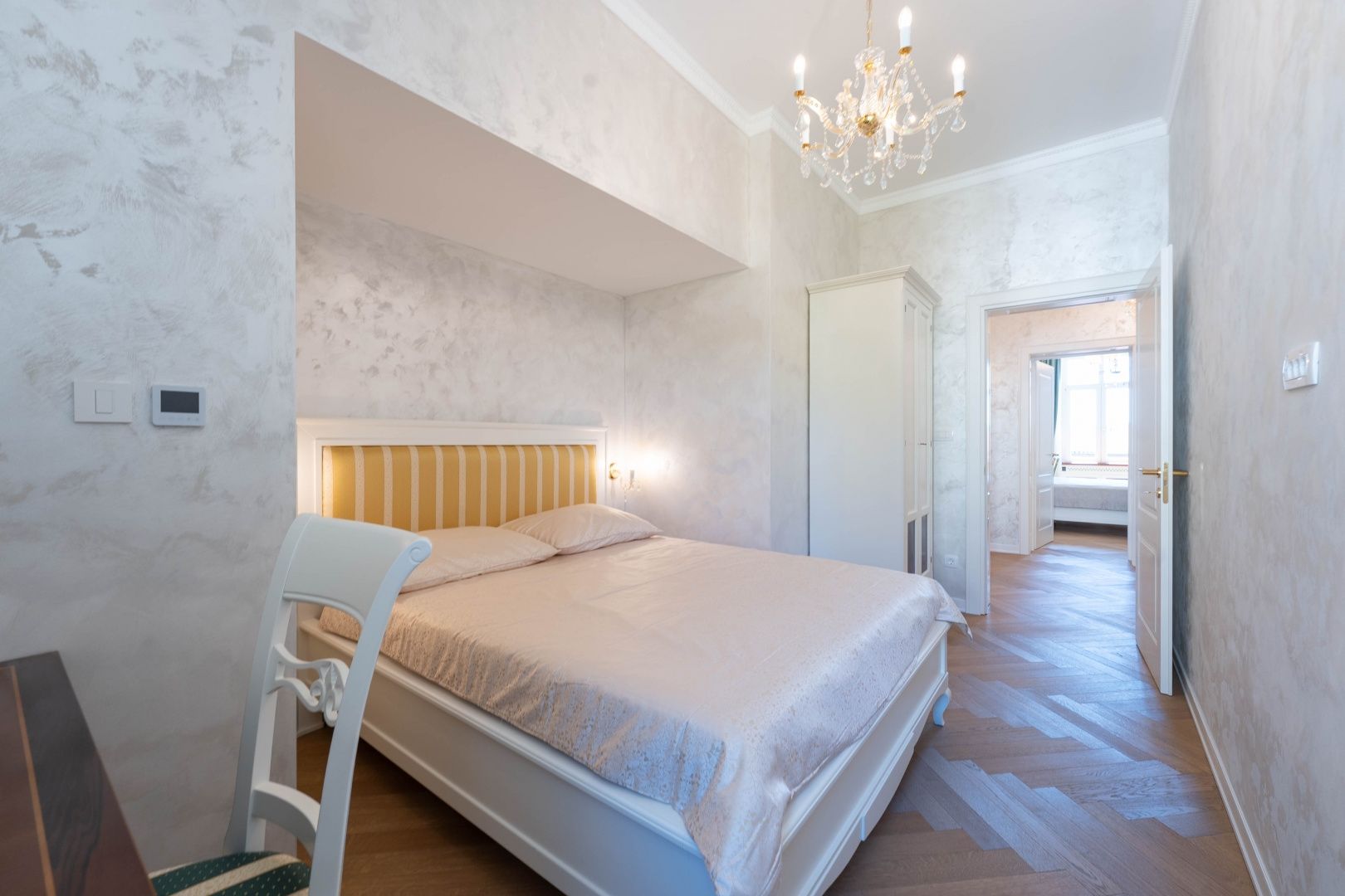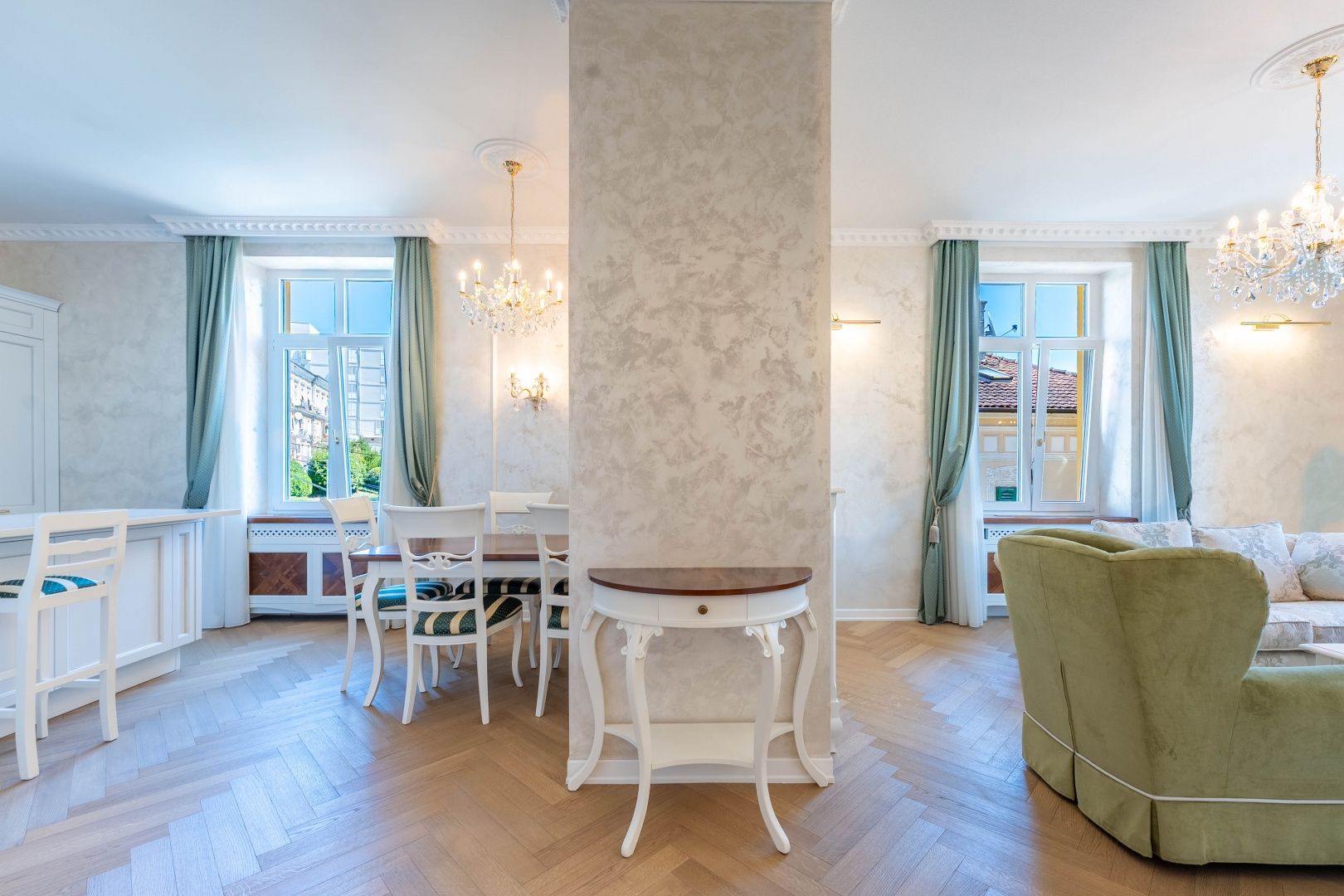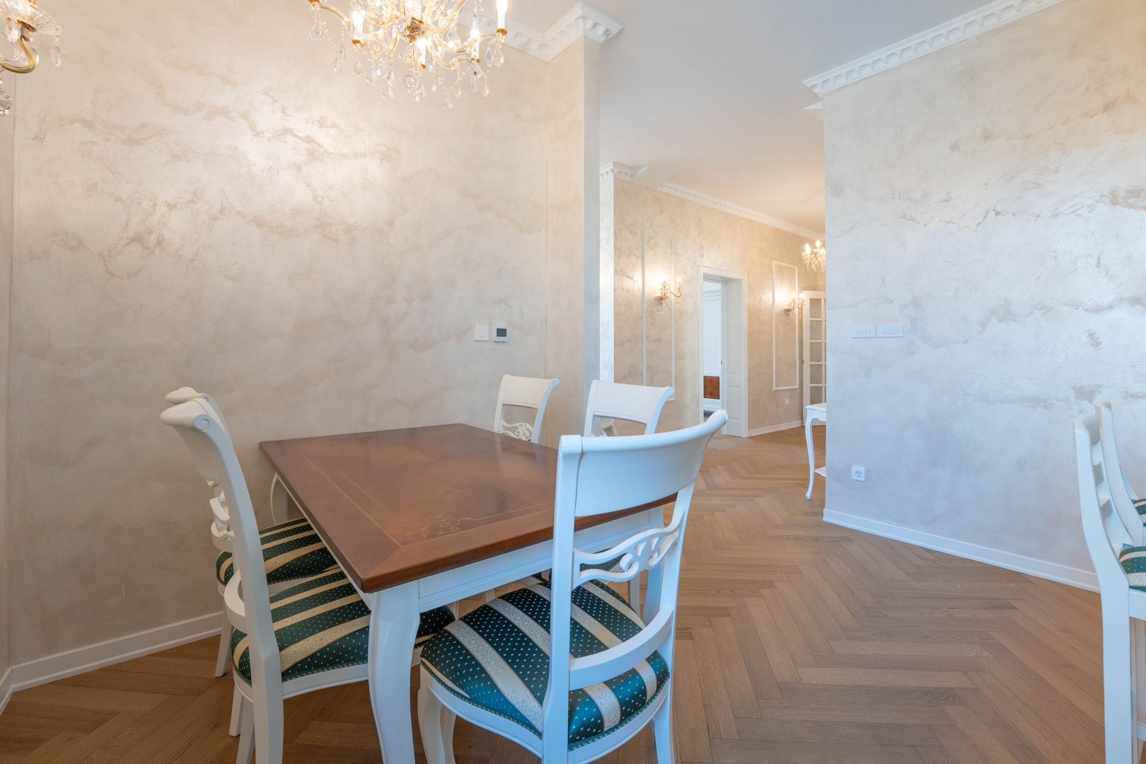 OPATIJA, CENTRUM - kombinace luxusu a autenticity, byt v zrekonstruované historické vile v centru Opatije s výhledem Představujeme vám jedinečnou příležitost bydlet v srdci Opatije - byt nacházející se ve 130 let staré historické vile, která vyzařuje kouzlo a autenticitu. Tento mimořádně dobře zrekonstruovaný byt se rozkládá na čisté ploše přibližně 96 m², s podílem na okolním pozemku a zahrnuje právo užívání parkovacího místa (v současné době není ve vlastnictví). Byt byl kompletně zrekonstruován se zvláštním důrazem na detail a špičkovou funkčnost. Každý pokoj je vybaven tepelným čerpadlem Mitsubishi, které umožňuje podlahové vytápění a chlazení pomocí podlahových klimatizací, což poskytuje vynikající komfort po celý rok. Nábytek je ručně vyrobený v renomované truhlářské dílně ve Veroně a křišťálové lustry dále zdůrazňují luxusní atmosféru prostoru. Každý detail byl pečlivě promyšlen a navržen tak, aby se z tohoto bytu stala dokonalá oáza elegance a pohodlí. Poloha apartmánu je ideální – nachází se v samém centru města, pouhých 130 metrů od moře. Do Voloska se dostanete pěšky po slavné promenádě Lungomare nebo autem za 3 minuty, zatímco Ičići je vzdálené pouhých 7 minut jízdy. Pro domluvení prohlídky nemovitosti volejte důvěryhodného makléře – konzultace v němčině je možná.