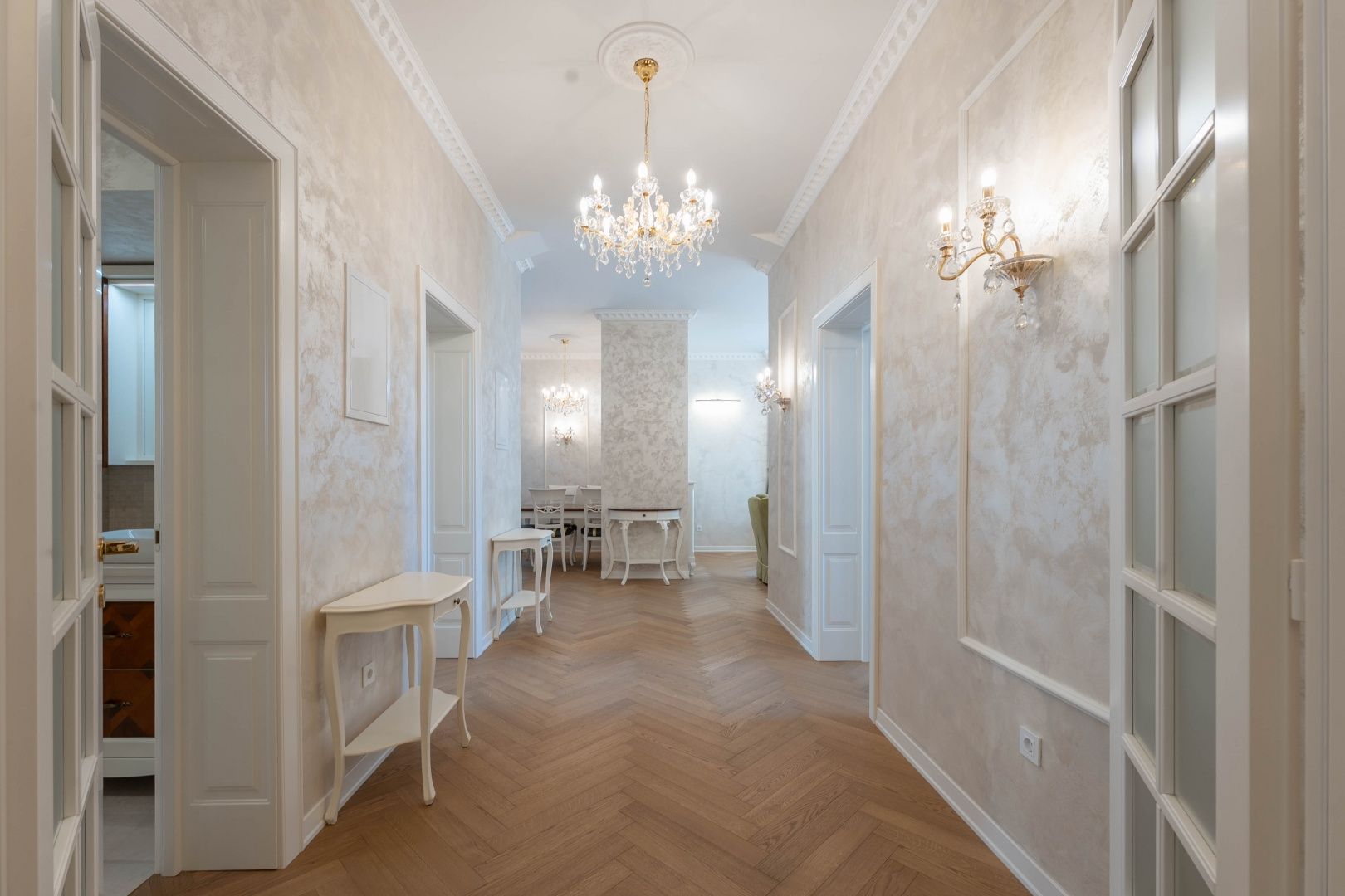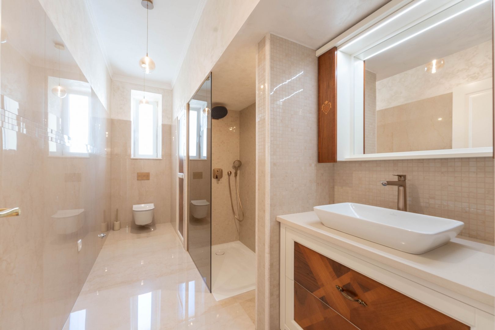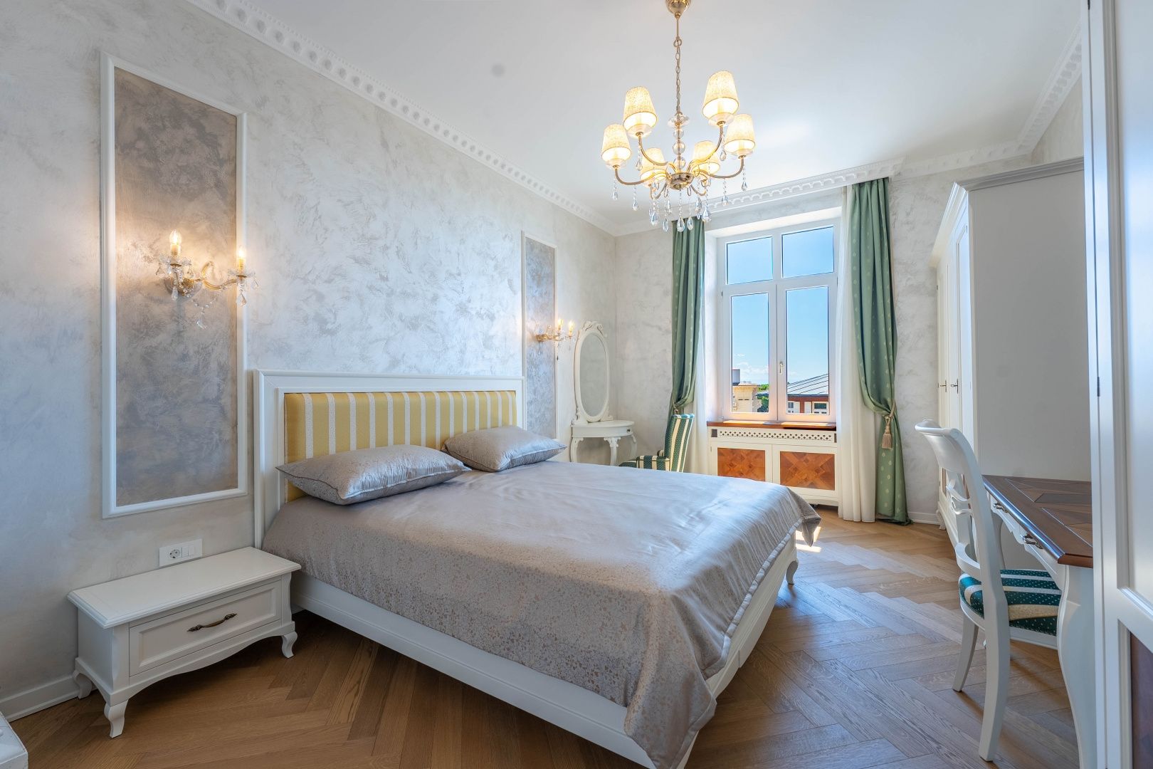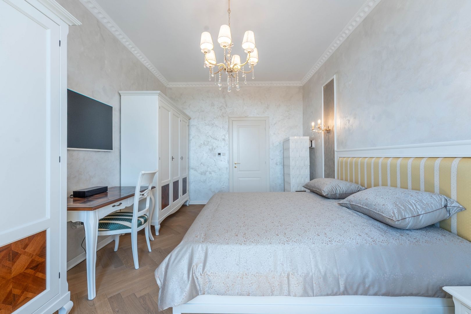 OPATIJA, CENTRUM - kombinace luxusu a autenticity, byt v zrekonstruované historické vile v centru Opatije s výhledem Představujeme vám jedinečnou příležitost bydlet v srdci Opatije - byt nacházející se ve 130 let staré historické vile, která vyzařuje kouzlo a autenticitu. Tento mimořádně dobře zrekonstruovaný byt se rozkládá na čisté ploše přibližně 96 m², s podílem na okolním pozemku a zahrnuje právo užívání parkovacího místa (v současné době není ve vlastnictví). Byt byl kompletně zrekonstruován se zvláštním důrazem na detail a špičkovou funkčnost. Každý pokoj je vybaven tepelným čerpadlem Mitsubishi, které umožňuje podlahové vytápění a chlazení pomocí podlahových klimatizací, což poskytuje vynikající komfort po celý rok. Nábytek je ručně vyrobený v renomované truhlářské dílně ve Veroně a křišťálové lustry dále zdůrazňují luxusní atmosféru prostoru. Každý detail byl pečlivě promyšlen a navržen tak, aby se z tohoto bytu stala dokonalá oáza elegance a pohodlí. Poloha apartmánu je ideální – nachází se v samém centru města, pouhých 130 metrů od moře. Do Voloska se dostanete pěšky po slavné promenádě Lungomare nebo autem za 3 minuty, zatímco Ičići je vzdálené pouhých 7 minut jízdy. Pro domluvení prohlídky nemovitosti volejte důvěryhodného makléře – konzultace v němčině je možná.