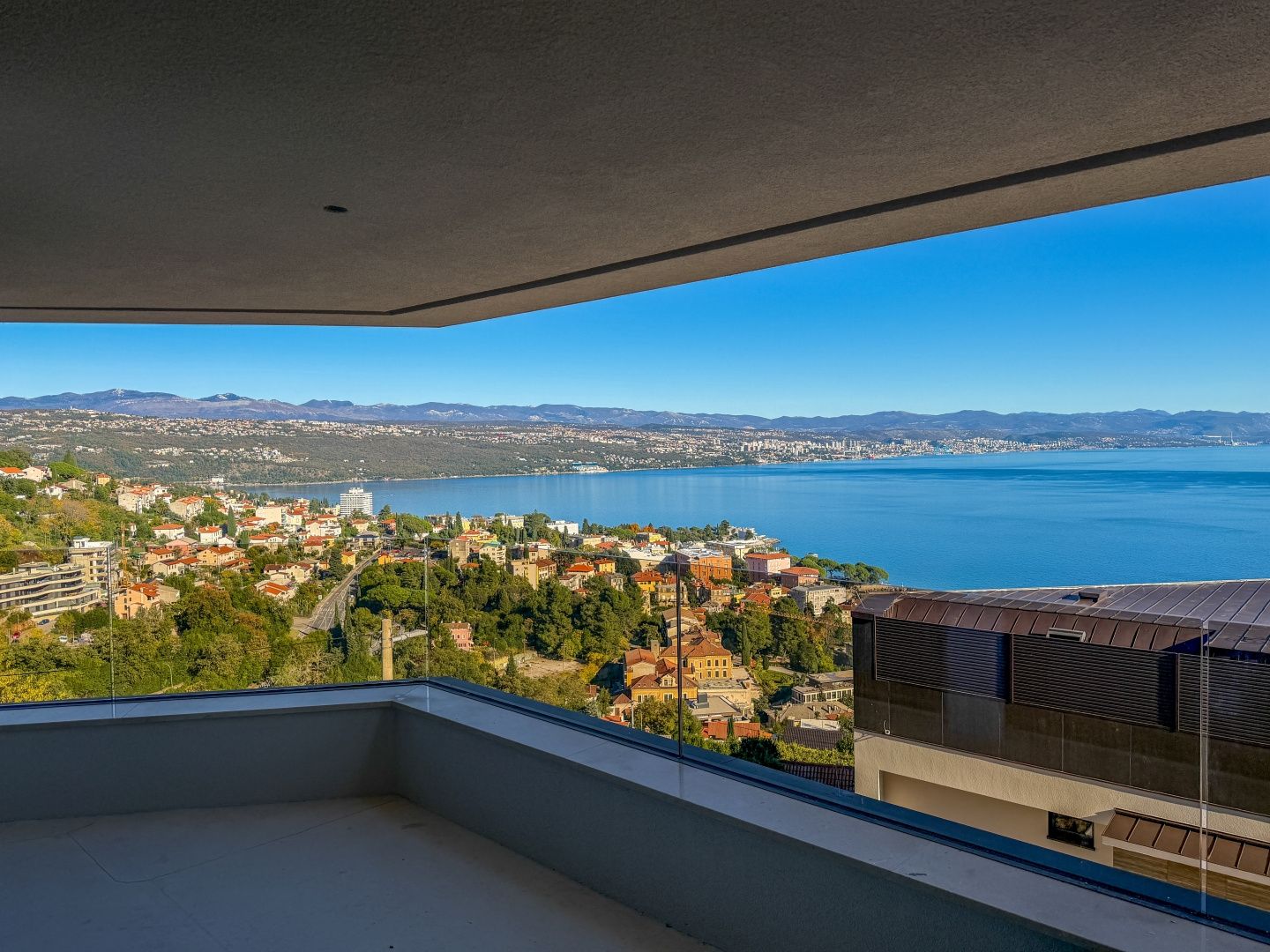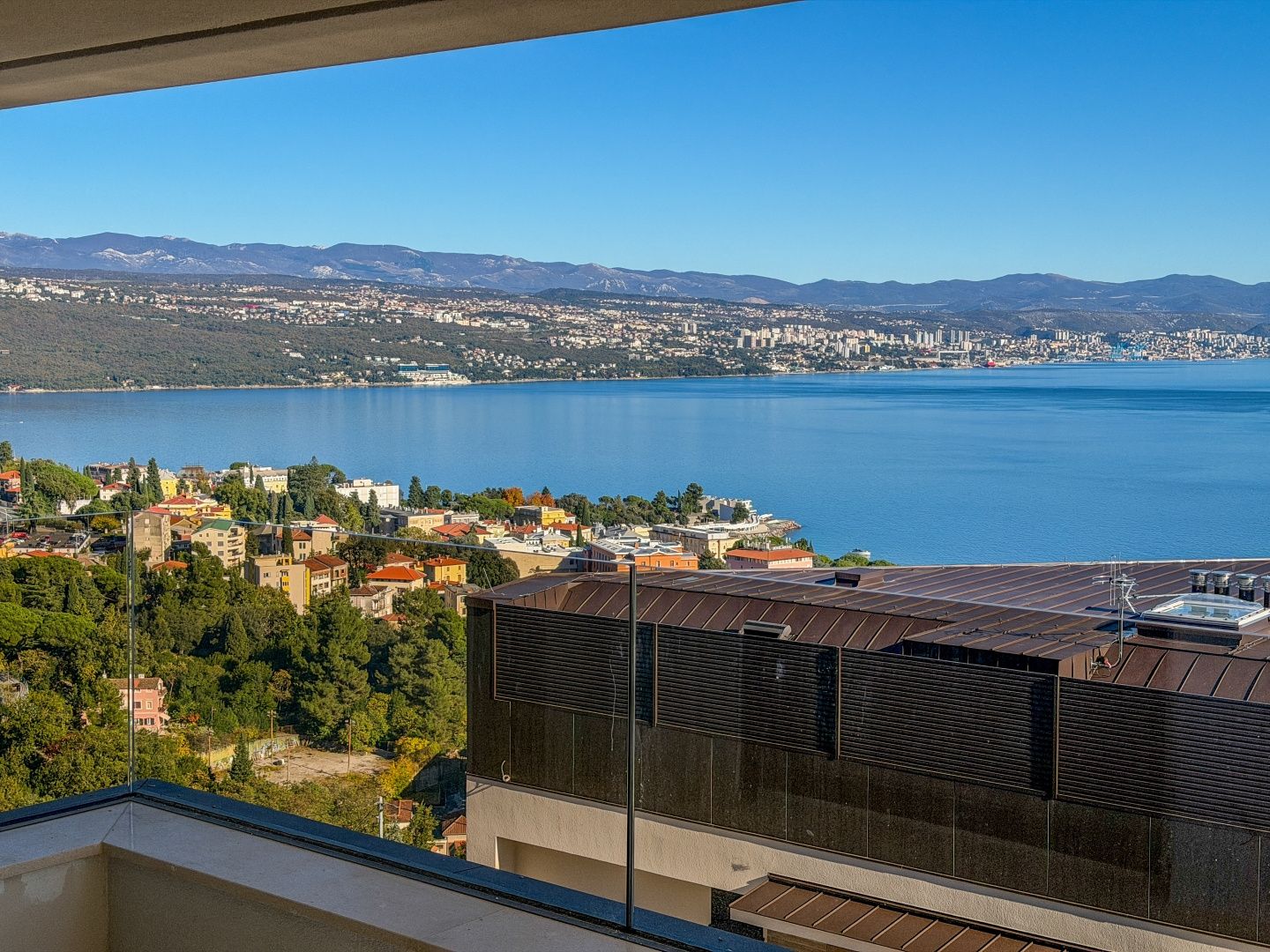 OPATIJA, CENTRUM - krásný byt v novostavbě s wellness, posilovnou a garáží Exkluzivní příležitost v D reality: Prodej bytu 3 o velikosti 105,93 m2, z toho terasa 9,80 m2 s krásným výhledem na moře. Do bytu se dostanete výtahem, který vede do velkého otevřeného prostoru obývacího pokoje s kuchyní, jídelnou a vstupem na terasu, 2 ložnic s vlastními koupelnami. Z uvedených pokojů je také výstup na velkou terasu s výhledem a prostorem pro společenské akce. K bytu náleží 2 parkovací místa, která jsou na vyžádání zpoplatněna. Existuje také možnost zakoupení dalších parkovacích míst. Tato moderní novostavba nabízí špičkovou kvalitu konstrukce a vybavení: - rekuperace vzduchu s filtrací pylů a alergenů - podlahové vytápění ve všech místnostech a energeticky úsporné vytápění pomocí tepelných čerpadel - hnědé hliníkové truhlářské výrobky s trojvrstvým IZO sklem - chytrá správa bytů a kontrola přístupu (ABB Free@home) - sanitární vybavení Hansgrohe, dubové vícevrstvé parkety a bezpečnostní dveře - elektrické hliníkové žaluzie, LED osvětlení a video dohled nad společnými prostory - sdílená posilovna a wellness zóna - výška stropu 260 cm a tichý výtah OTIS s luxusní kabinou Perfektní příležitost ke koupi luxusního bytu v samém centru Opatije, v novostavbě, která kombinuje komfort, technologie a elegantní středomořský styl s úchvatným výhledem. Pro sjednání prohlídky nemovitosti volejte důvěryhodného makléře - konzultace možná v němčině.