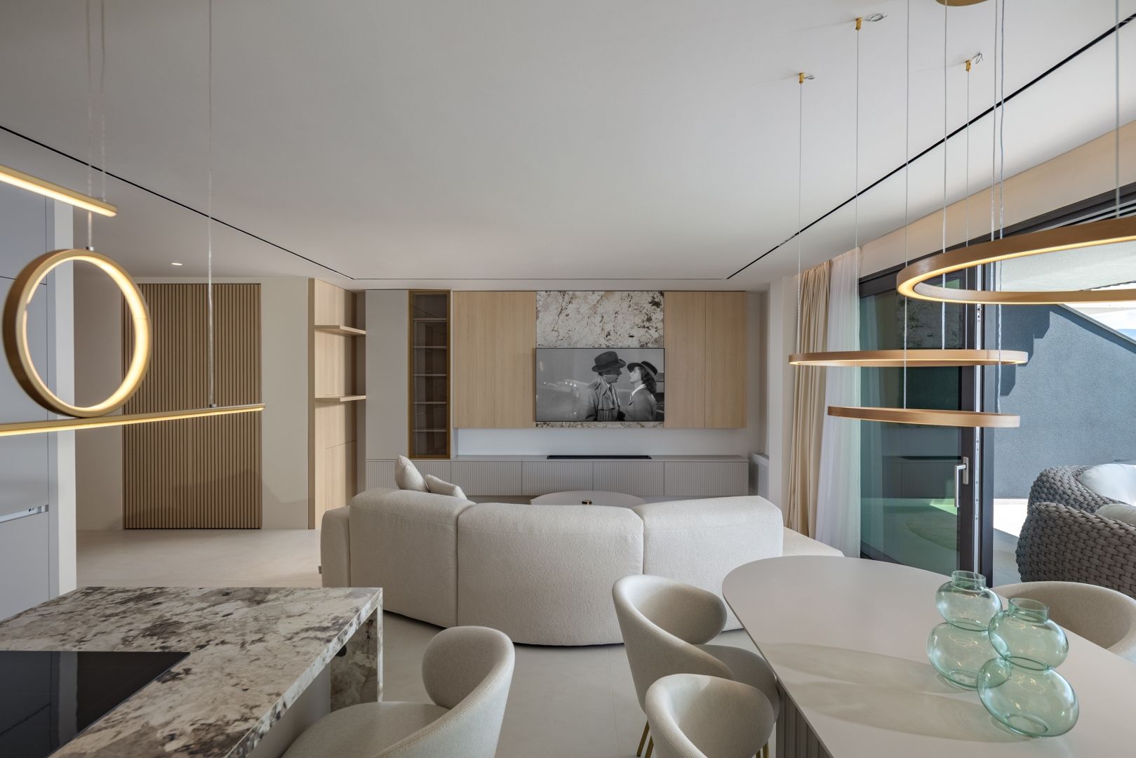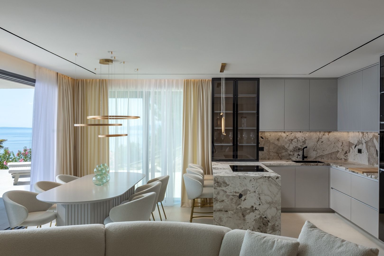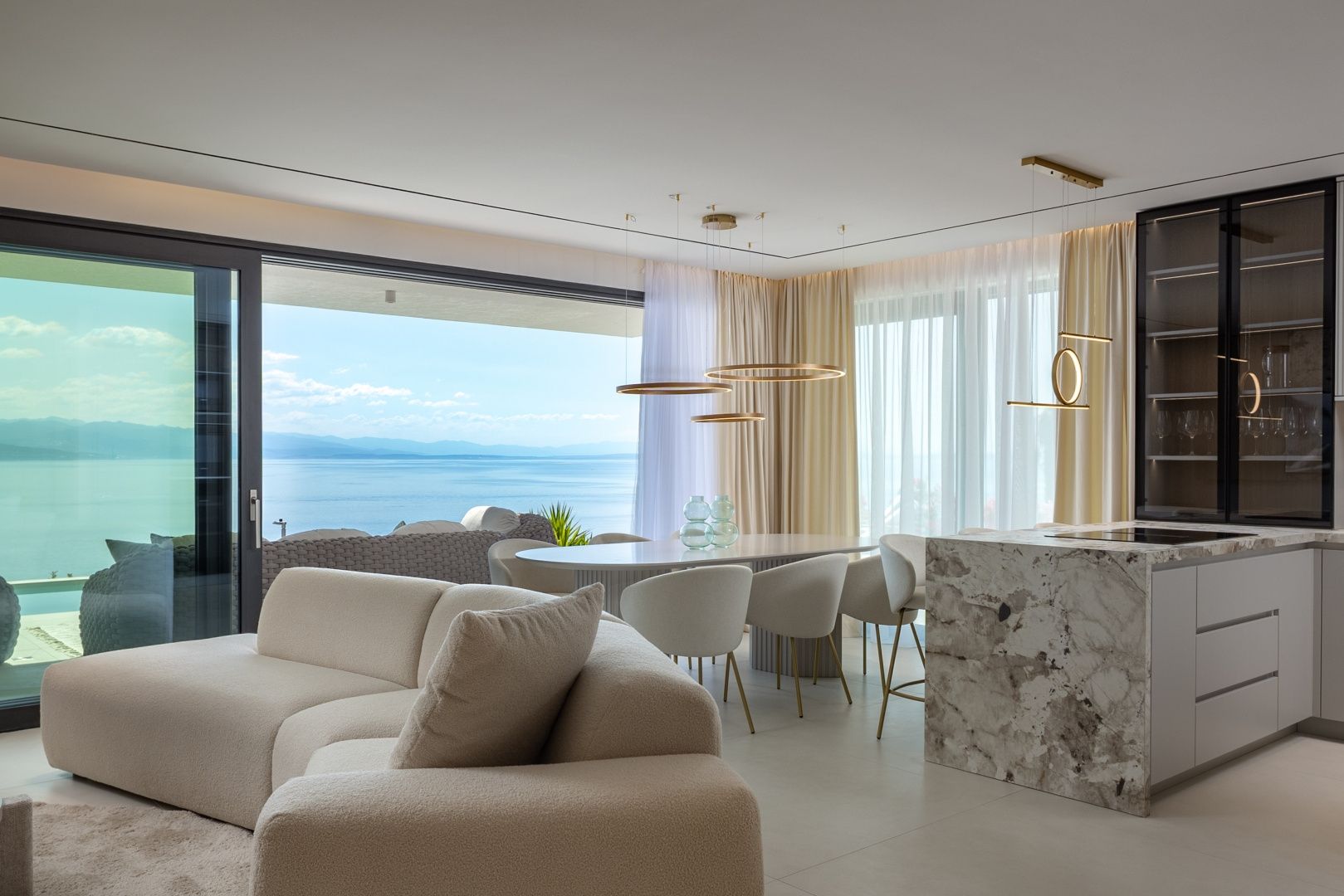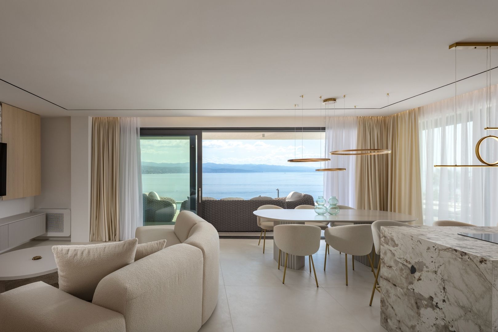 OPATIJA, CENTRUM - luxusní rezidence k dlouhodobému pronájmu se soukromým bazénem a garáží Exkluzivní novostavba v bezprostřední blízkosti centra Opatije se nachází v kvalitní ulici pouhých 250 metrů od moře. Díky své poloze si tato ulice zachovává soukromí a klid s panoramatickým výhledem na moře. Jedná se o budovu zvláštní kvality, která se vyznačuje způsobem a typem výstavby na Riviéře. Materiály použité pro interiér budovy je důležité zdůraznit v popisu s dodatkem, že budova bude kompletním chytrým domovem. Apartmán A2 ve velkém přízemí se soukromým přelivovým bazénem o hrubé velikosti 272,37 m2. Čistá obytná plocha apartmánu je 164 m2 a dispozice je následující: Apartmán se skládá ze vstupní haly, koupelny a technické místnosti, velkého otevřeného obývacího pokoje s kuchyní a jídelnou (40 m2), 3 ložnic, z nichž jedna má koupelnu. Garáž v objektu zaručuje bezpečnost a soukromí se dvěma parkovacími místy a nabízí výhodu výtahu vedoucího přímo k ubytování. Jižní ložnice a velký obývací pokoj jsou dále propojeny s prostornou terasou, která zahrnuje soukromý bazén. Tato nemovitost má kromě dalších 40 m2 exotických rostlin také tyto unikátní vlastnosti: - luxusní designově zařízený byt - přímý výtah z garáže - video dohled a alarm - přepadový nekonečný bazén (s přípravou na vytápění, 2,65 m2) - tepelné čerpadlo DAIKIN - integrované, samostatné chlazení DAIKIN ve všech místnostech - podlahové vytápění v celé budově - špičková sanitární keramika ALICE - bezpečnostní dveře KOLNOA zajišťující vynikající tepelnou a zvukovou izolaci - všechny interiérové dveře renomované značky FILOMURO - vysoce kvalitní vícevrstvé dubové parkety v ložnicích (ve stylu Chevron) - vnitřní a venkovní keramické obklady rozpoznatelné značky FLORIM Tato budova se nachází v soukromé, kvalitní ulici, pouhých 250 m vzdušnou čarou od moře. K moři je to 5 minut chůze, zatímco cesta autem do centra Opatije trvá pouhé 2 minuty. Tato luxusní nemovitost na záviděníhodném místě se vyznačuje vysoce kvalitními materiály a exkluzivním doprovodným vybavením. Nabízí tak dokonalou kombinaci moderního stylu, elegance a funkčnosti moderních domácích technologií a je vnímána jako fantastická příležitost k investici do pohádkové Opatije.