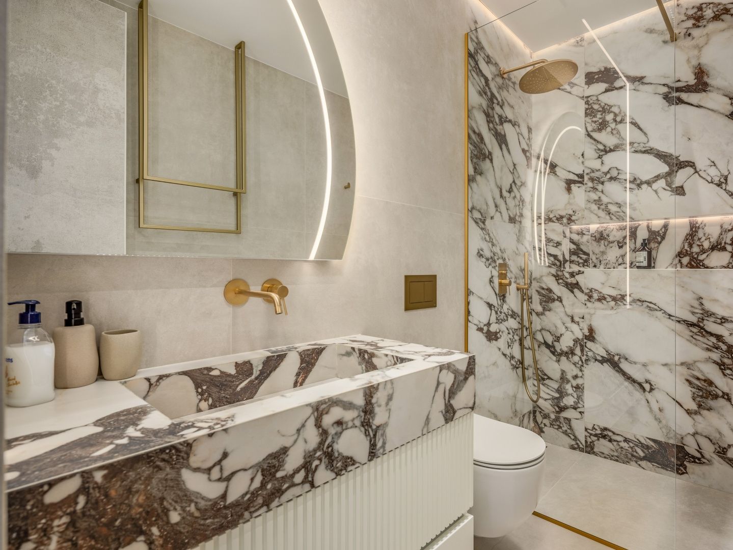 OPATIJA, CENTRUM - 134m2 prestižní budova v nádherné novostavbě, panoramatický výhled na moře Exkluzivní novostavba v bezprostřední blízkosti centra Opatije, která se nachází v kvalitní ulici jen 250 metrů od moře. Tato ulice si díky své poloze zachovává soukromí a klid s panoramatickým výhledem na moře. Jde o stavbu zvláštní kvality, která se na Riviéře liší způsobem a typem výstavby. V popisu je důležité vyzdvihnout materiály použité pro interiér budovy s dodatkem, že budova bude kompletním chytrým domem. Byt S2 v prvním patře této unikátní novostavby má celkovou výměru 176,43 m2. Čistá obytná plocha bytu je 134 m2 a dispozičně je řešena následovně: Byt se skládá ze vstupní chodby, koupelny a komory, velkého otevřeného obývacího pokoje s kuchyní a jídelnou (57m2), 3 ložnic, jeden z nich zahrnuje koupelnu. Garáž v objektu zaručuje bezpečnost a soukromí s přidruženými dvěma parkovacími místy a nabízí privilegium výtahu, který vede přímo k ubytování. Tato nemovitost má následující unikátní vlastnosti: - přímý výtah z garáže - video dohled a alarm - tepelné čerpadlo DAIKIN - integrované, samostatné chlazení DAIKIN ve všech místnostech - podlahové vytápění v celém objektu - špičková sanita ALICE - kvalitní bezpečnostní dveře KOLNOA poskytují špičková tepelná a zvuková izolace - veškeré interiérové dveře renomované značky FILOMURO - kvalitní vícevrstvé dubové parkety v ložnicích (styl Chevron) - interiérové a exteriérové keramické obklady a dlažby známé značky FLORIM Tato budova se nachází v privátu, kvalitní ulice jen 250m vzdušnou čarou k moři. K moři je to 5 minut chůze, zatímco cesta autem do centra Opatije trvá jen 2 minuty. Toto luxusní zařízení v záviděníhodné lokalitě se vyznačuje špičkovými materiály a exkluzivním doprovodným zázemím. Jako takový poskytuje dokonalou kombinaci moderního stylu, elegance a funkčnosti moderních domácích technologií a je vnímán jako fantastická příležitost pro investici do pohádkové Opatije.