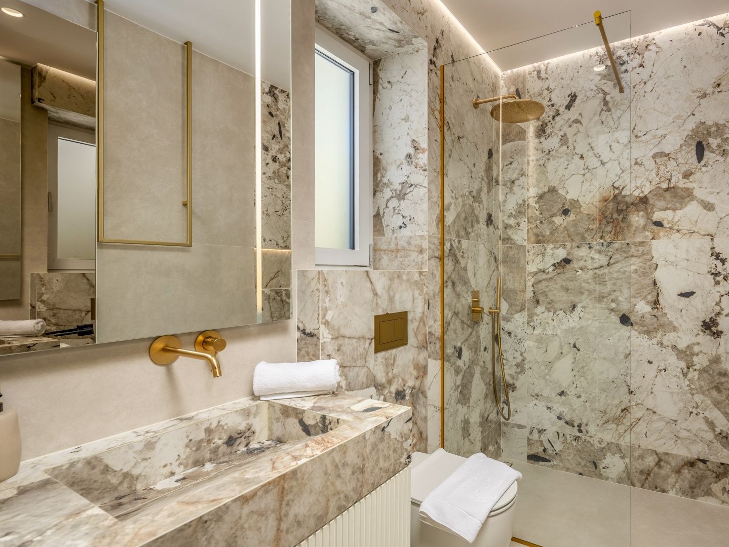 OPATIJA, CENTRUM - 134m2 prestižní budova k pronájmu v prvotřídní novostavbě, panoramatický výhled na moře Exkluzivní novostavba v bezprostřední blízkosti centra Opatije se nachází v kvalitní ulici pouhých 250 metrů od moře. Díky své poloze si tato ulice zachovává soukromí a klid s panoramatickým výhledem na moře. Jedná se o budovu zvláštní kvality, která se vyznačuje způsobem a typem výstavby na Riviéře. Materiály použité pro interiér budovy je důležité zdůraznit v popisu s dodatkem, že budova bude kompletním chytrým domovem. Byt S2 v prvním patře této unikátní novostavby má hrubou plochu 176,43m2. Čistá obytná plocha bytu je 134m2 a dispozice je následující: Byt se skládá ze vstupní haly, koupelny a technické místnosti, velkého otevřeného obývacího pokoje s kuchyní a jídelnou (57m2), 3 ložnic, z nichž jedna má koupelnu. Garáž v objektu zaručuje bezpečnost a soukromí se dvěma parkovacími místy a nabízí výhodu výtahu vedoucího přímo k ubytování. Tato nemovitost má následující jedinečné vlastnosti: - přímý výtah z garáže - video dohled a alarm - tepelné čerpadlo DAIKIN - integrované, samostatné chlazení DAIKIN ve všech místnostech - podlahové vytápění v celé budově - špičková sanitární keramika ALICE - bezpečnostní dveře KOLNOA poskytují vynikající tepelnou a zvukovou izolaci - všechny interiérové dveře od renomované značky FILOMURO - vysoce kvalitní vícevrstvé dubové parkety v ložnicích (ve stylu Chevron) - vnitřní a venkovní keramické obklady od rozpoznatelné značky FLORIM Tato budova se nachází v soukromé, kvalitní ulici, pouhých 250 m vzdušnou čarou od moře. Je to 5 minut chůze k moři a 2 minuty jízdy do centra Opatije. Tato luxusní nemovitost na záviděníhodném místě se vyznačuje vysoce kvalitními materiály a exkluzivním doprovodným vybavením. Nabízí tak dokonalou kombinaci moderního stylu, elegance a funkčnosti moderních domácích technologií a je fantastickou příležitostí k investici do nádherné Opatije. Měsíční nájemné činí 4 500 EUR s dodatečnou úhradou režijních nákladů.