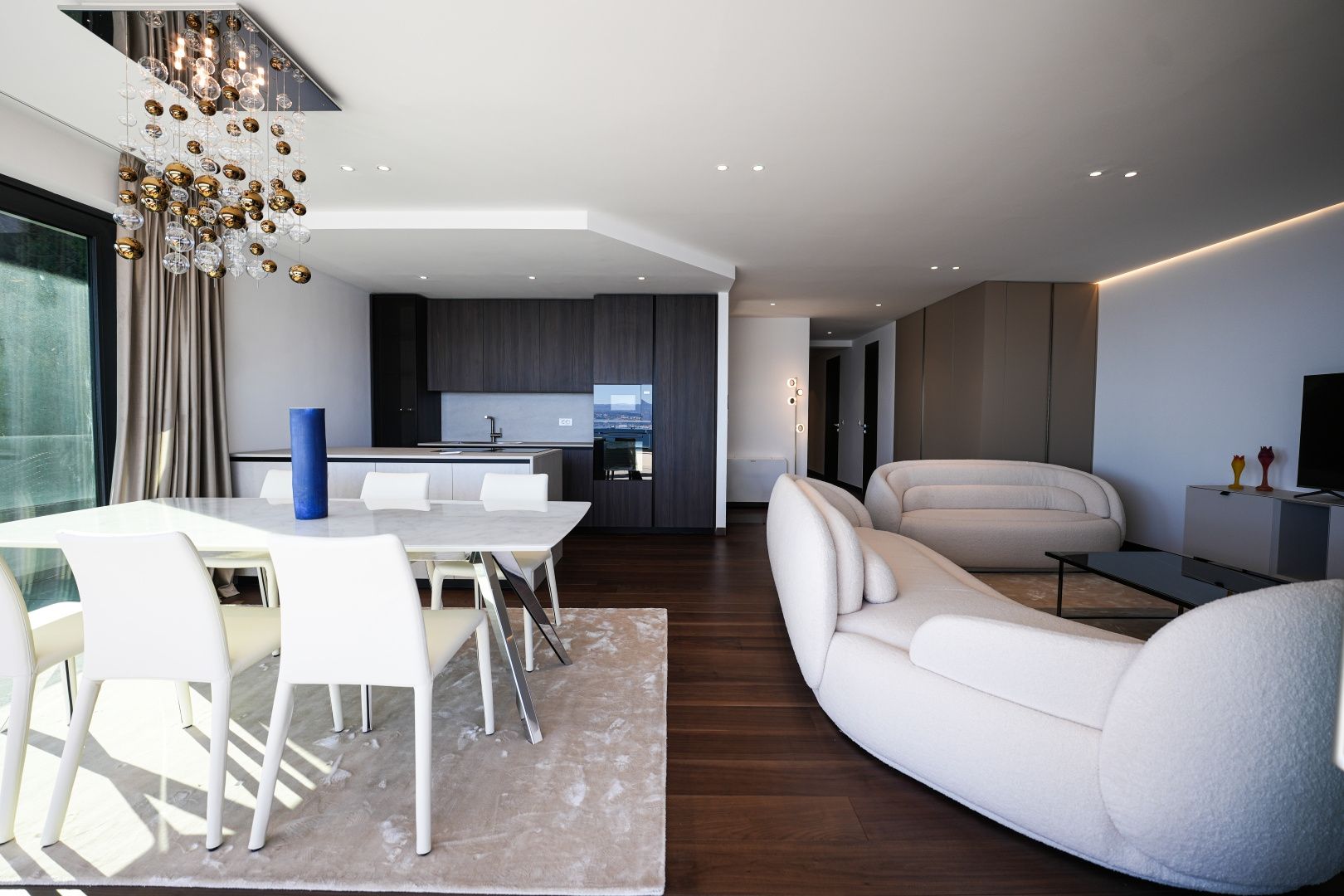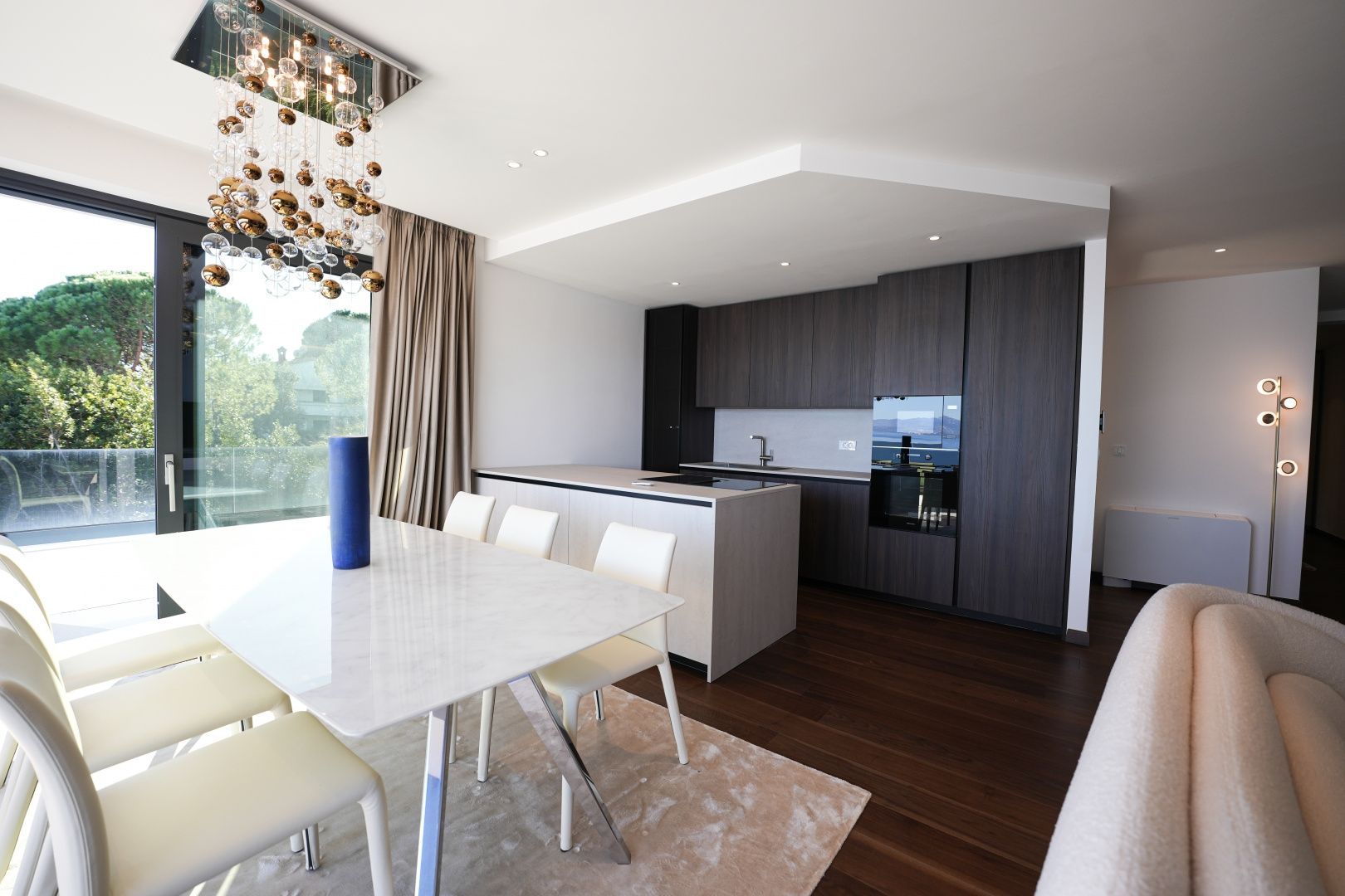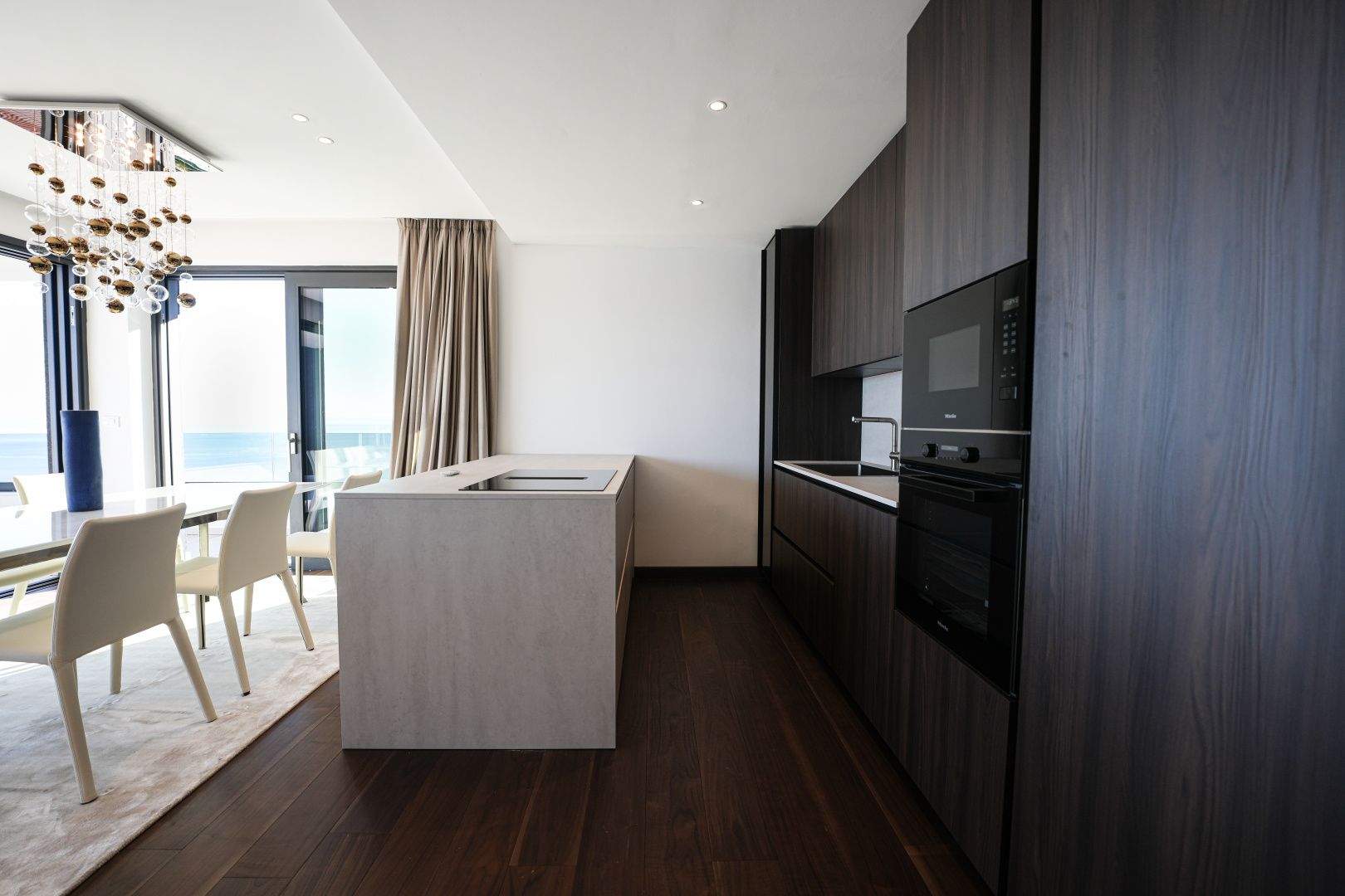 OPATIJA, CENTRUM - větší byt v prvotřídní novostavbě s garáží a panoramatickým výhledem na moře Exkluzivní novostavba v bezprostřední blízkosti centra Opatije se nachází v kvalitní ulici, pouhých 250 metrů od moře. Díky své poloze si tato ulice zachovává soukromí a klid s panoramatickým výhledem na moře. Jedná se o budovu zvláštní kvality, která se vyznačuje způsobem a typem výstavby na Riviéře. Materiály použité pro interiér budovy je důležité zdůraznit v popisu s dodatkem, že budova je vybavena špičkovou kvalitou. Byt S2 ve druhém patře této unikátní novostavby má hrubou plochu 140 m². Čistá obytná plocha bytu je 113 m² a dispozice je následující: byt se skládá ze vstupní haly, koupelny a technické místnosti, velkého otevřeného obývacího pokoje s kuchyní a jídelnou a tří velkých ložnic, každá s vlastní koupelnou. Garáž v objektu zaručuje bezpečnost a soukromí se dvěma parkovacími místy a nabízí výhodu výtahu vedoucího přímo k bytu. Tato nemovitost má následující unikátní vlastnosti: - přímý výtah z garáže - kamerový systém v celém objektu - tepelné čerpadlo VAILLANT s podlahovým vytápěním v celém objektu a klimatizace s ventilátorem v každém pokoji - kuchyň známé značky s kompletními spotřebiči MIELE - špičková sanitární keramika CATALANO - baterie známé italské značky FIMA - CARLO FRATTINI - vstupní dveře známé italské značky BARAUSSE poskytují vynikající tepelnou a zvukovou izolaci - všechny interiérové dveře jsou také značky BARAUSSE - vysoce kvalitní vícevrstvé ořechové parkety značky FOGLIE D'ORO v celém objektu - interiérová i exteriérová keramická dlažba známé italské značky Důležité je poznamenat, že nemovitost je zařízena nábytkem známé italské značky PIANCA. Každý kus nábytku, od křesla až po postel, byl pečlivě vybrán podle designu výše zmíněného designového domu. Tato budova se nachází v soukromé, kvalitní ulici, pouhých 250 m vzdušnou čarou od moře. Moře je vzdálené 5 minut pěšky, zatímco cesta autem do centra Opatije trvá pouhé 2 minuty. Tato luxusní budova na záviděníhodném místě se vyznačuje vysoce kvalitními materiály a exkluzivním doprovodným vybavením. Jako taková nabízí perfektní kombinaci moderního stylu, elegance a funkčnosti moderních bytových technologií a představuje fantastickou investiční příležitost v pohádkové Opatiji.