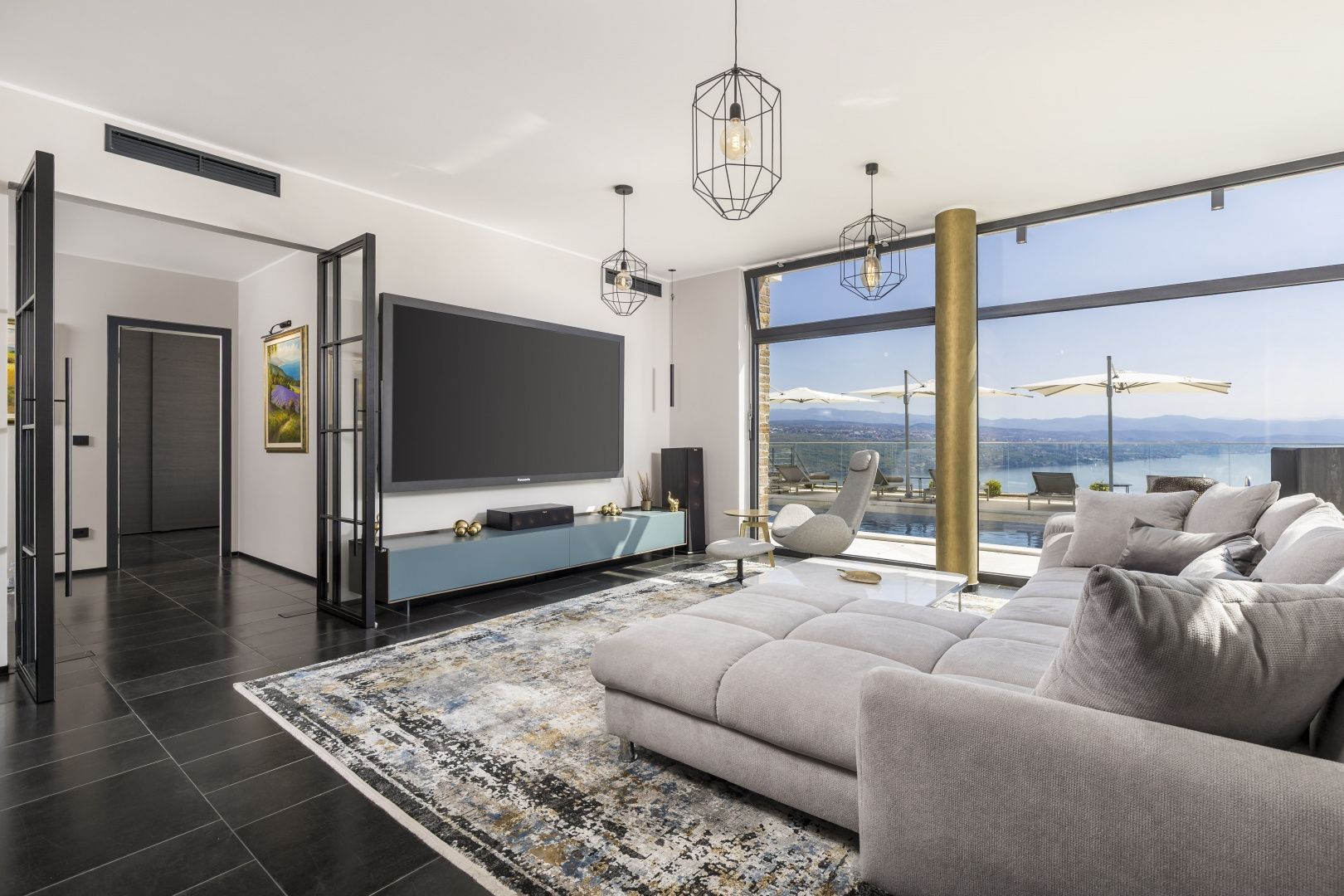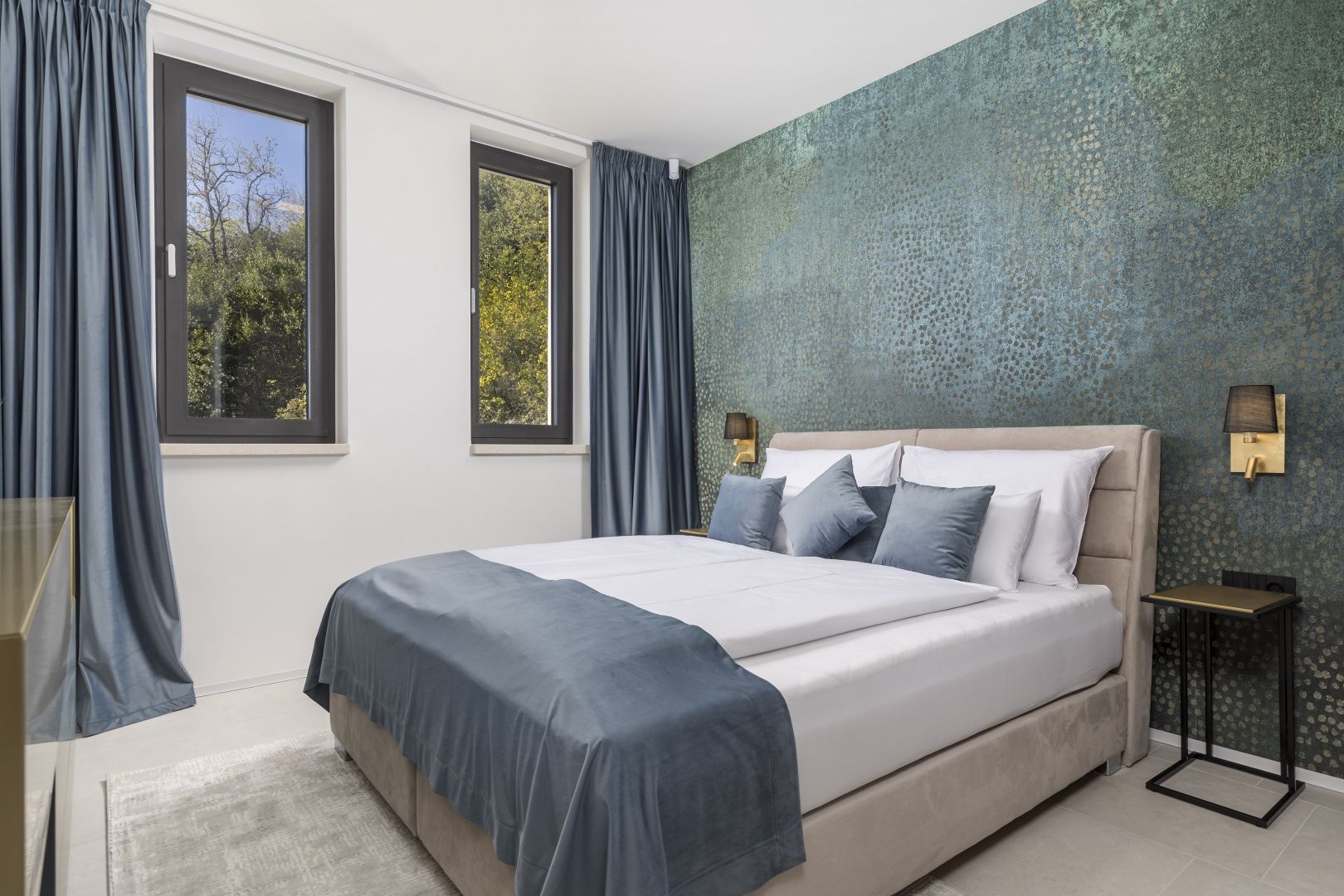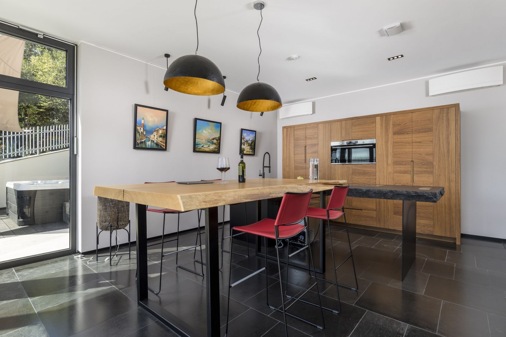 OPATIJA, CENTRUM – zimní pronájem v luxusní vile nad centrem Opatije, v klidné rezidenční čtvrti Nad centrem Opatije, v klidném a prestižním rezidenčním prostředí, se nachází exkluzivní moderní pětihvězdičková vila, která nabízí dokonalou kombinaci luxusu, soukromí a úžasného panoramatického výhledu na moře. V přízemí vily se nachází chodba vedoucí do jedné ložnice s vlastní koupelnou a prostorného obývacího pokoje, který je propojen s jídelnou a velkou kuchyní. Jižní část celého patra je od podlahy až ke stropu pokryta prosklenými stěnami, které poskytují pokojům dostatek přirozeného světla a přímý přístup na velkou terasu a k bazénu. V přízemí se nachází také prádelna a další toaleta. Venkovní prostor je obohacen o vyhřívanou vířivku, gril a terasu na opalování a moře se rozprostírá jako na dlani ze všech stran. V prvním patře se nacházejí zbývající čtyři ložnice, každá s vlastní elegantně zařízenou koupelnou, což zaručuje naprosté pohodlí a soukromí. Do vily se dostanete soukromým výtahem, který poskytuje zvláštní zážitek exkluzivity při příjezdu. Interiér vyzařuje sofistikovanost – vysoce kvalitní designový nábytek, moderní kuchyň a obývací pokoj s příjemnou atmosférou jsou ideální volbou pro zimní měsíce. Na oploceném pozemku je k dispozici soukromé kryté parkování. Vila je ze severní a východní strany obklopena lesními pozemky, zatímco poloha na jižní straně zaručuje naprosté soukromí a působivý výhled na Kvarnerský záliv. Cesta do centra Opatije trvá pouhé dvě minuty a do centra nebo na promenádu Lungomare se dostanete pěšky za 15 minut. Tato vila je k dispozici k zimnímu pronájmu od 1. října do 1. června, ideální pro ty, kteří hledají klid, pohodlí a prestiž v každém detailu. Měsíční nájemné: 8 000 € + poplatky. Pro sjednání prohlídky nemovitosti volejte s důvěrou makléře