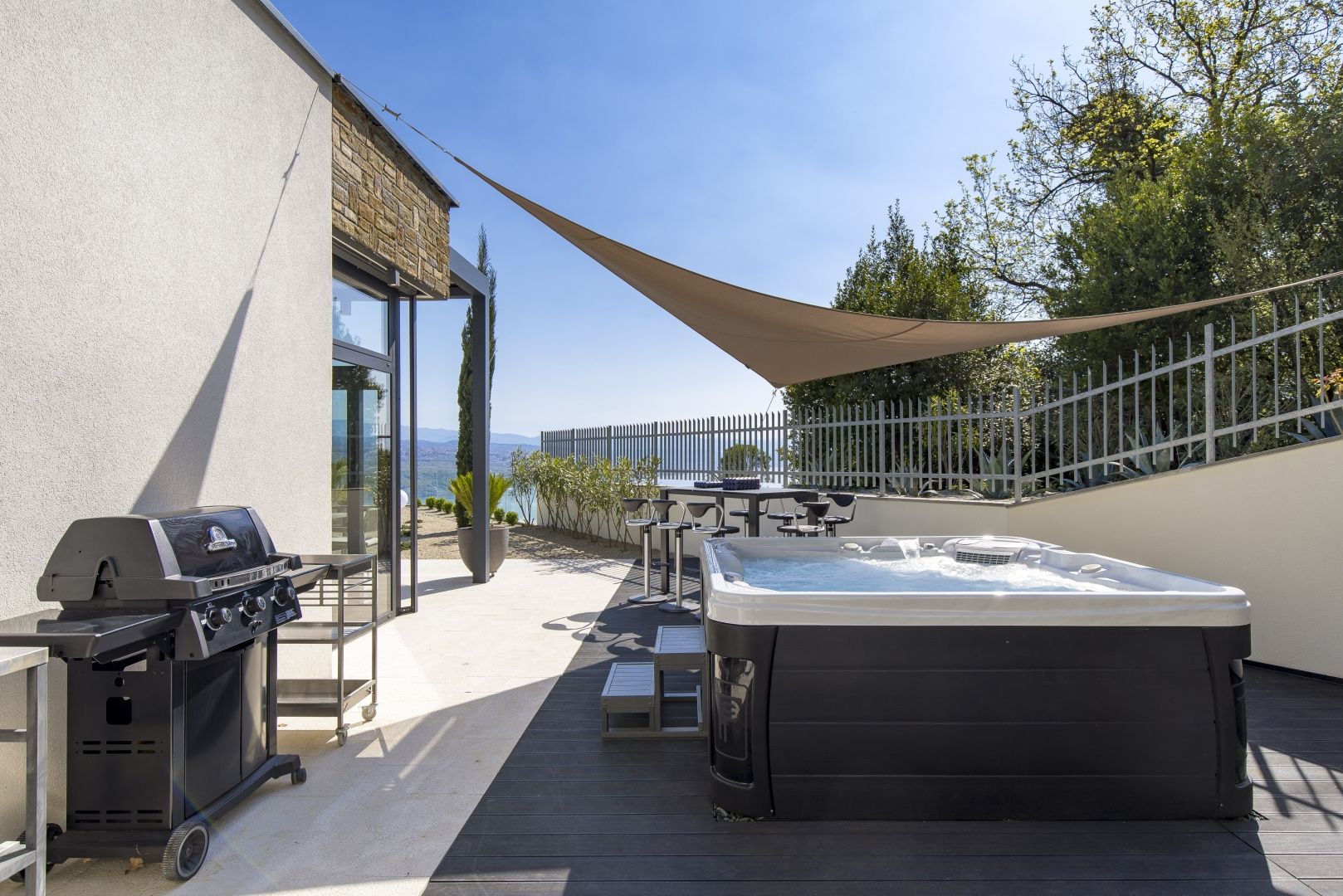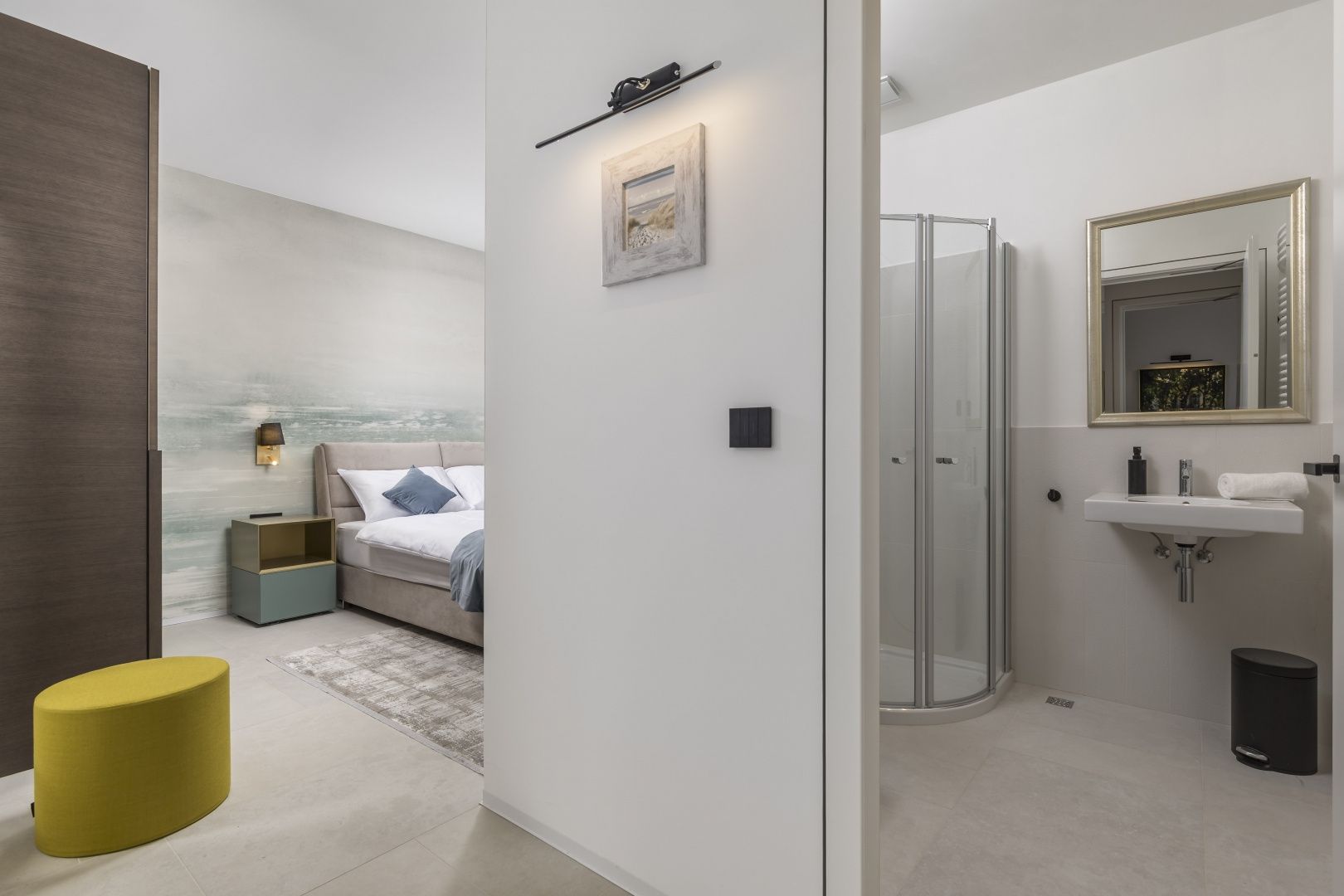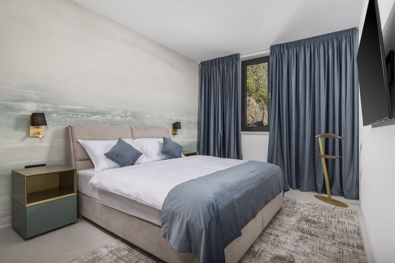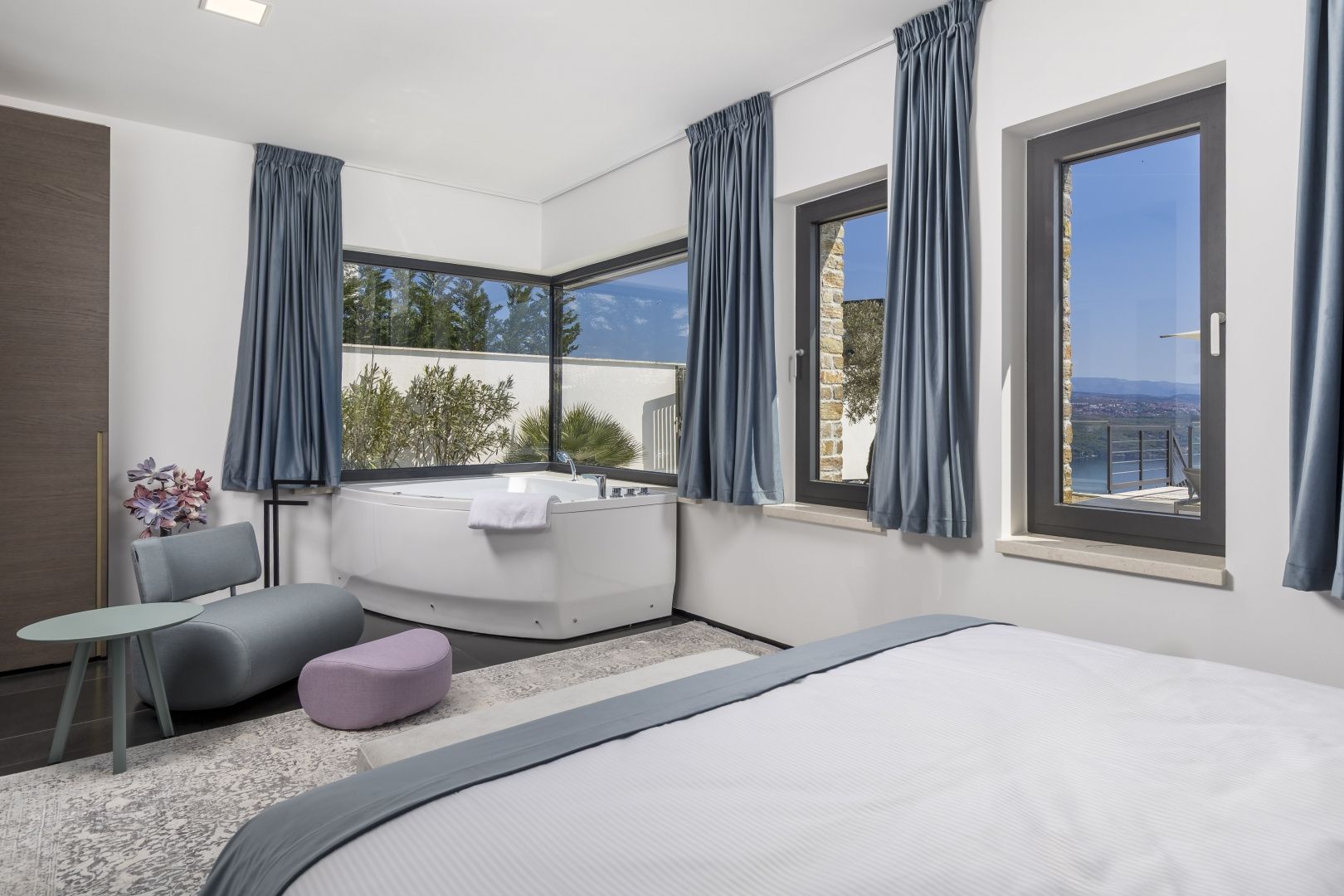 OPATIJA, CENTRUM – zimní pronájem v luxusní vile nad centrem Opatije, v klidné rezidenční čtvrti Nad centrem Opatije, v klidném a prestižním rezidenčním prostředí, se nachází exkluzivní moderní pětihvězdičková vila, která nabízí dokonalou kombinaci luxusu, soukromí a úžasného panoramatického výhledu na moře. V přízemí vily se nachází chodba vedoucí do jedné ložnice s vlastní koupelnou a prostorného obývacího pokoje, který je propojen s jídelnou a velkou kuchyní. Jižní část celého patra je od podlahy až ke stropu pokryta prosklenými stěnami, které poskytují pokojům dostatek přirozeného světla a přímý přístup na velkou terasu a k bazénu. V přízemí se nachází také prádelna a další toaleta. Venkovní prostor je obohacen o vyhřívanou vířivku, gril a terasu na opalování a moře se rozprostírá jako na dlani ze všech stran. V prvním patře se nacházejí zbývající čtyři ložnice, každá s vlastní elegantně zařízenou koupelnou, což zaručuje naprosté pohodlí a soukromí. Do vily se dostanete soukromým výtahem, který poskytuje zvláštní zážitek exkluzivity při příjezdu. Interiér vyzařuje sofistikovanost – vysoce kvalitní designový nábytek, moderní kuchyň a obývací pokoj s příjemnou atmosférou jsou ideální volbou pro zimní měsíce. Na oploceném pozemku je k dispozici soukromé kryté parkování. Vila je ze severní a východní strany obklopena lesními pozemky, zatímco poloha na jižní straně zaručuje naprosté soukromí a působivý výhled na Kvarnerský záliv. Cesta do centra Opatije trvá pouhé dvě minuty a do centra nebo na promenádu Lungomare se dostanete pěšky za 15 minut. Tato vila je k dispozici k zimnímu pronájmu od 1. října do 1. června, ideální pro ty, kteří hledají klid, pohodlí a prestiž v každém detailu. Měsíční nájemné: 8 000 € + poplatky. Pro sjednání prohlídky nemovitosti volejte s důvěrou makléře