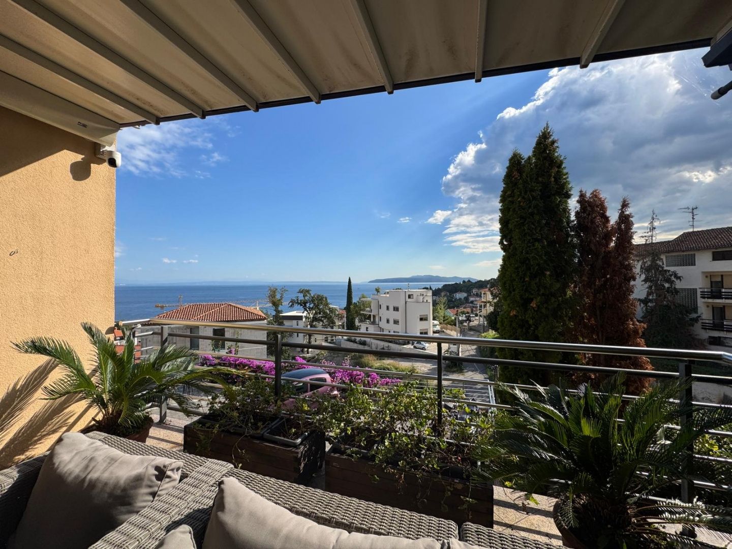 OPATIJA, IČIĆI - Intimní oáza s prostornou terasou a výhledem na moře V klidné lokalitě, pouhých 250 metrů od moře, se nachází tento mimořádně příjemný apartmán 2 ložnice + koupelna v menší budově novější a kvalitní výstavby se 7 apartmány. Na pláž a promenádu se dostanete za méně než 5 minut chůze. Přestože se apartmán nachází ve zvýšeném přízemí, díky konfiguraci terénu a garážovému stání pod ním je kompletně ve výšce prvního patra, což zajišťuje větší soukromí. Dispozice: otevřený obývací pokoj s kuchyní a jídelnou, dvě ložnice, koupelna, chodba a vstupní hala, prostorná terasa o rozloze cca 35 m² s krásným výhledem na moře a Kvarnerský záliv. Zvláštní hodnotou této nemovitosti je terasa - skutečná soukromá oáza, krytá pohyblivou markýzou a zušlechtěná zelení, která poskytuje intimní a relaxační atmosféru. Další vlastnosti: ústřední topení na olej, klimatizace pro chlazení, kvalitní konstrukce a prvotřídní lokalita. K bytu náleží jedno parkovací místo v zahradě k užívání a také sklad o rozloze 2,64 m² v suterénu budovy. Je plně vybavený a zařízený a prodává se jako takový - ihned k nastěhování bez dalších investic. Nemovitost, kterou stojí za to vidět! OPATIJA: Opatija, známá jako "Královna Jadranu", těší svou bohatou historií, luxusní architekturou Belle Epoque a velkolepou promenádou Lungomare. Její mírné klima, kombinace moře a hor a prvotřídní gastronomie z ní činí oblíbenou destinaci po celý rok. Opatija je ideální volbou pro ty, kteří hledají sofistikovaný středomořský životní styl. Chcete-li si domluvit prohlídku nemovitosti, zavolejte s důvěrou makléři.