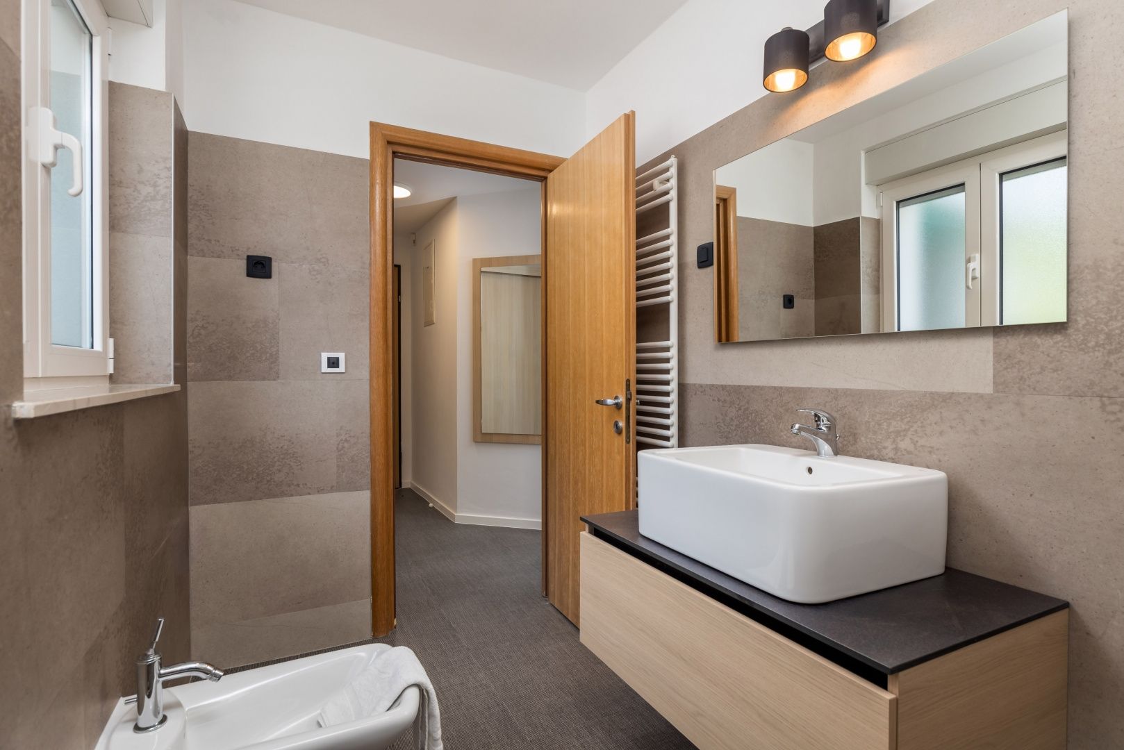 OPATIJA, IČIĆI – moderní byt o rozloze 46 m² k dlouhodobému pronájmu s bazénem a panoramatickým výhledem na moře V krásné lokalitě u moře, v městečku Ičići nedaleko Opatije, se pronajímá moderní a luxusně zařízený byt v bytovém domě s výtahem. Byt D7 se nachází v 1. patře a má prostornou terasu s otevřeným a okouzlujícím výhledem na celý Kvarnerský záliv. Skládá se ze vstupní části se šatní skříní, jedné ložnice, koupelny se sprchovým koutem, bidetem a toaletou a elegantního obývacího pokoje propojeného s kuchyní a jídelnou. Byt je vybaven tepelným čerpadlem pro vytápění a chlazení a větrání s rekuperací zajišťuje svěží a příjemný pobyt po celý rok. K dispozici je jedno parkovací místo s kamerovým systémem a nájemníci mají přístup k venkovnímu bazénu sdílenému s ostatními byty v budově. Měsíční nájemné: 850 € + energie. Pro sjednání prohlídky nemovitosti volejte důvěryhodného makléře