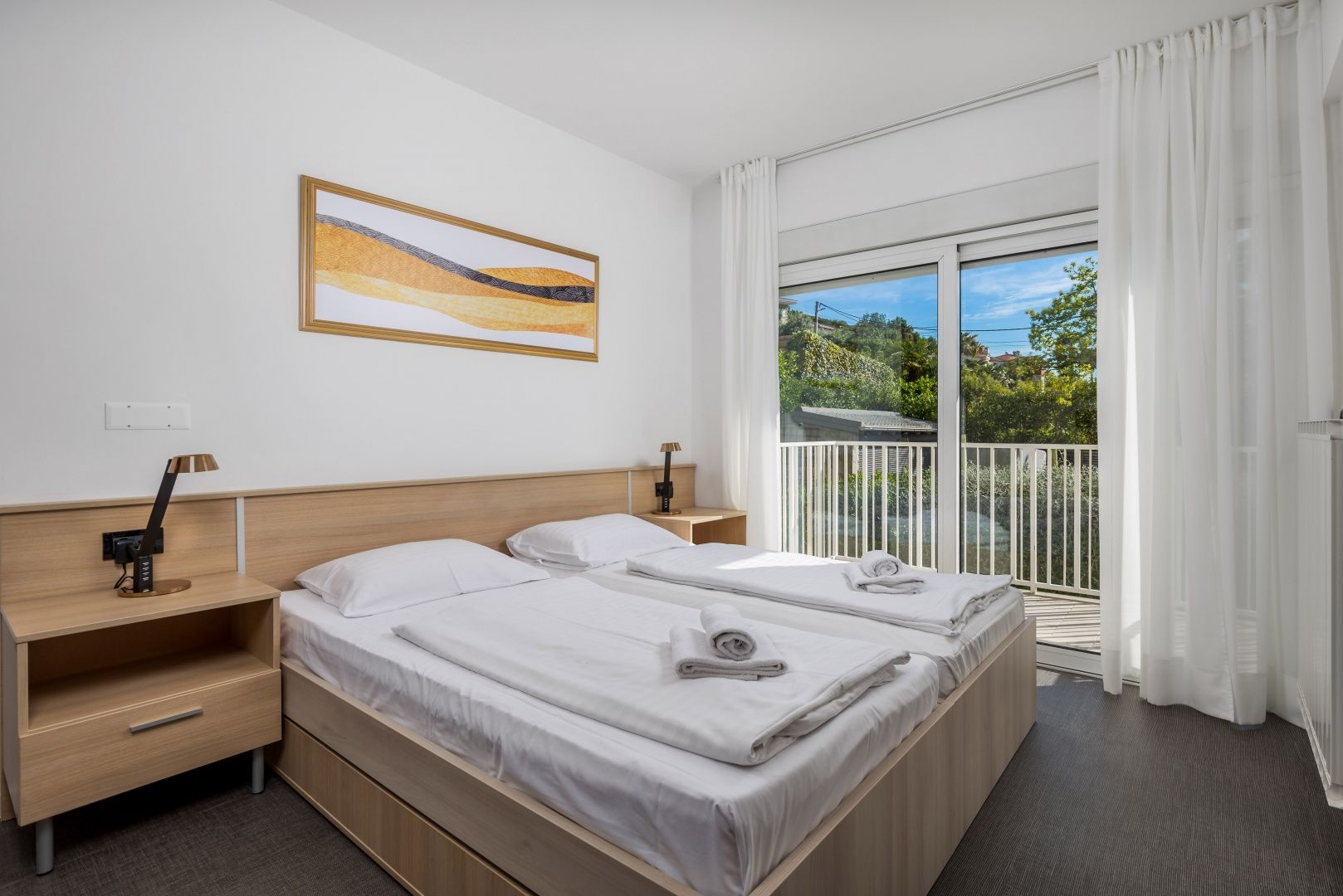 OPATIJA, IČIĆI – moderní byt o rozloze 51 m² k dlouhodobému pronájmu s bazénem a panoramatickým výhledem na moře Ve výjimečné lokalitě u moře, v klidné části Ičići nedaleko Opatije, se pronajímá moderní a luxusně vybavený byt v bytovém domě s výtahem. Byt B2 se nachází ve vysokém přízemí a má dvě prostorné terasy – jednu s otevřeným a druhou s částečným výhledem na moře a Ičići. Interiér je pečlivě zařízený a funkčně uspořádaný. Skládá se ze vstupní části se šatní skříní, jedné ložnice, koupelny se sprchovým koutem, bidetem a toaletou a elegantního obývacího pokoje propojeného s kuchyní a jídelnou. Byt má systém vytápění a chlazení pomocí tepelného čerpadla a větrání s rekuperací zajišťuje optimální teplotu a čerstvý vzduch po celý rok. K dispozici je jedno parkovací místo s kamerovým systémem a nájemníci mohou využívat také venkovní bazén, který je sdílen s ostatními byty v budově. Měsíční nájemné: 950 € + energie.