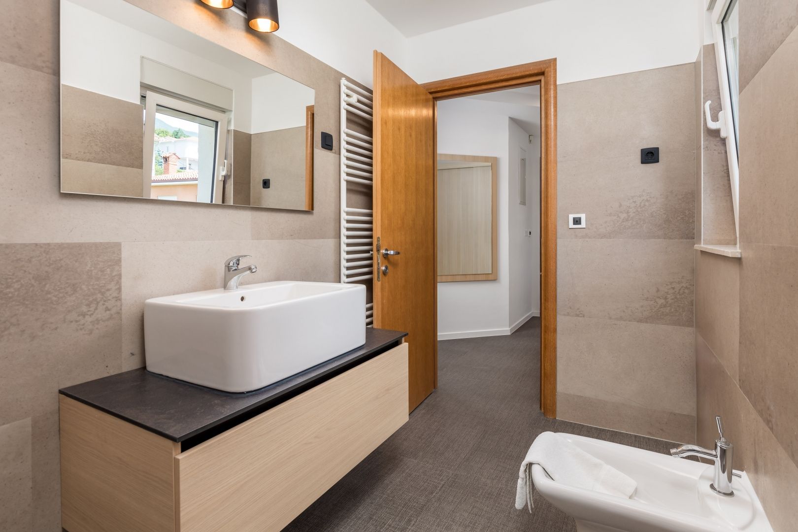 OPATIJA, IČIĆI – moderní byt o rozloze 51 m² k dlouhodobému pronájmu s bazénem a panoramatickým výhledem na moře Ve výjimečné lokalitě u moře, v klidné části Ičići nedaleko Opatije, se pronajímá moderní a luxusně vybavený byt v bytovém domě s výtahem. Byt E5 se nachází v 1. patře a má dvě prostorné terasy – jednu s otevřeným a druhou s částečným výhledem na moře a Ičići. Interiér je pečlivě zařízený a funkčně uspořádaný. Skládá se ze vstupní části se šatní skříní, jedné ložnice, koupelny se sprchovým koutem, bidetem a toaletou a elegantního obývacího pokoje propojeného s kuchyní a jídelnou. Byt má systém vytápění a chlazení pomocí tepelného čerpadla a větrání s rekuperací zajišťuje optimální teplotu a čerstvý vzduch po celý rok. K dispozici je jedno parkovací místo s kamerovým systémem a nájemníci mohou využívat také venkovní bazén, který je sdílen s ostatními byty v budově. Měsíční nájemné: 950 € + energie. Pro sjednání prohlídky nemovitosti volejte důvěryhodného makléře
