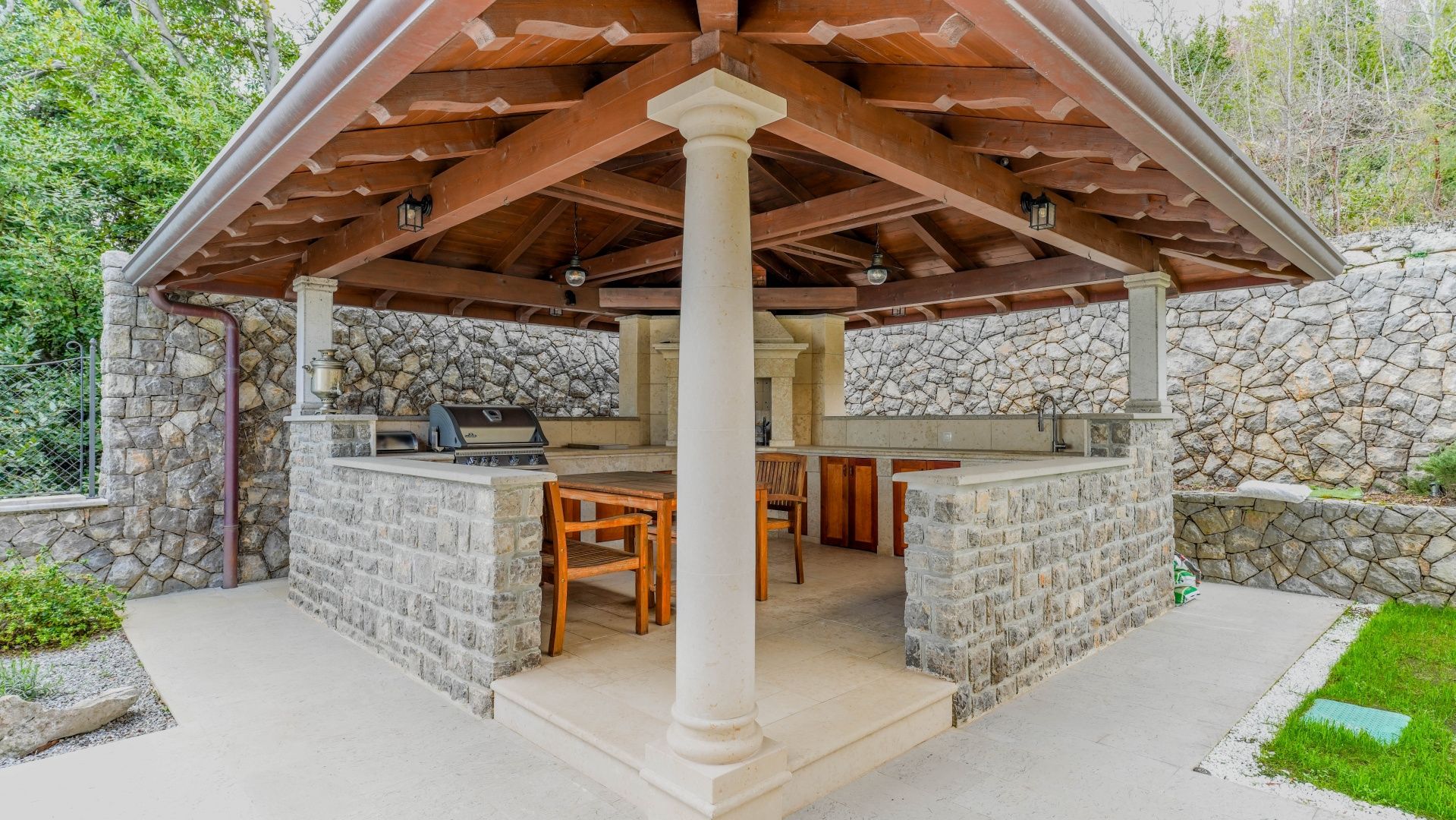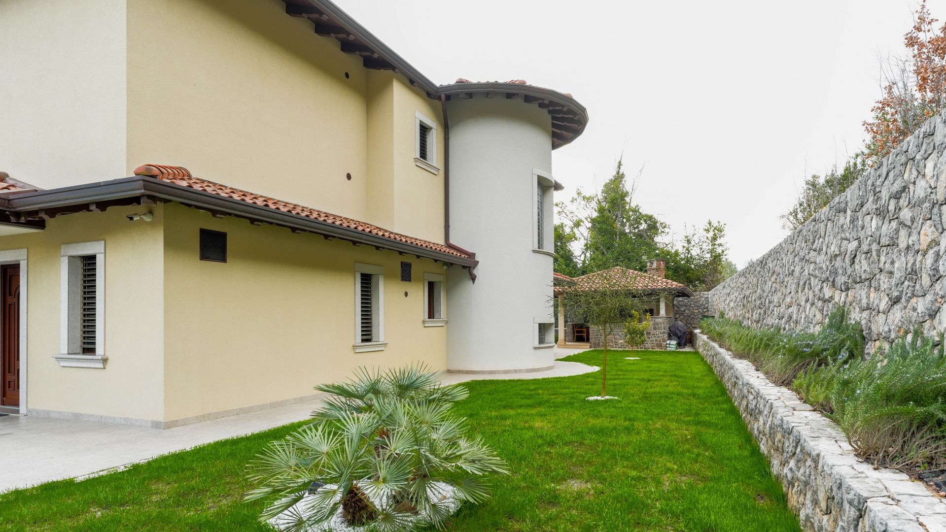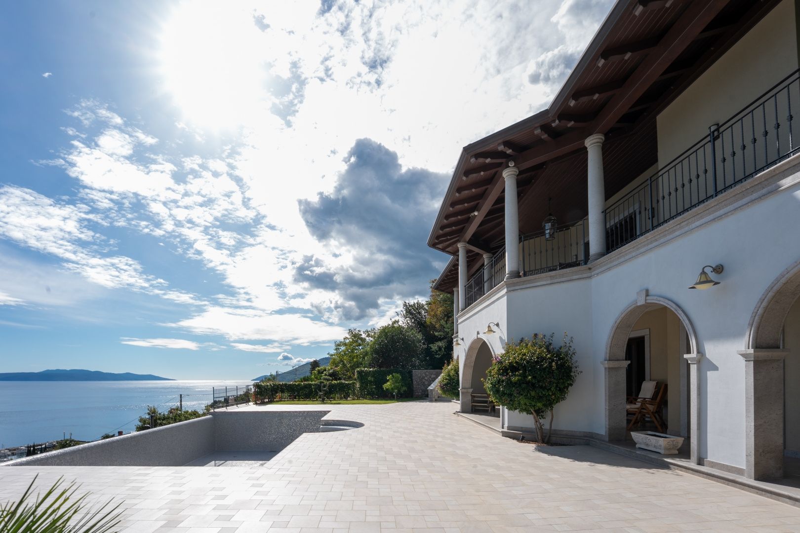 OPATIJA, IČIĆI - Unikátní luxusní vila s bazénem a panoramatickým výhledem Na prodej je exkluzivní luxusní vila s celkovou užitnou plochou 508 m². Nachází se na pozemku o rozloze 1 435 m², v blízkosti moře a Opatija Marriott Resort & Spa. Tato nemovitost, dokončená v roce 2020 a připravená k nastěhování od roku 2022, ztělesňuje špičkovou kvalitu konstrukce, vytříbený tradiční styl a nejmodernější technologie. Jedná se o moderní klasickou vilu s prvky luxusu, vybavenou chytrými systémy, nekonečným bazénem s přepadem, wellness zónou, letní kuchyní a garáží o rozloze 49 m². Dům je postaven z nejkvalitnějších materiálů: stěny jsou vyrobeny z 38 cm silných termobloků Porotherm s dodatečnou izolací z 8 cm grafitového polystyrenu, střecha je pokryta italskými taškami San Marco s měděnými okapy, zatímco fasáda je zdobena masivními sloupy a obkladem z přírodního kamene Repen. Venkovní otvory jsou vyrobeny z masivního dřeva meranti s trojsklem. Interiér vily je navržen s vynikajícím vkusem s použitím mramoru Botticino Classico a Emperador Dark, zatímco ložnice jsou vybaveny africkými dřevěnými parketovými podlahami HARO. Schodiště je mramorové v klasickém stylu haly a krb je z přírodního mramoru. Stěny jsou zakončeny dekorativní omítkou San Marco a tapetami Portofino. Nábytek a vybavení pochází od renomovaných výrobců: kuchyňské linky Muebles Cercos (Španělsko) s vestavěnou technologií Smeg (Itálie), sanitární keramika Olympia Ceramica a keramické obklady Piemme Valentino. Dispozice pokojů zahrnuje prostornou wellness a fitness zónu v suterénu, pokoj pro hosty s vlastní koupelnou, úložné prostory a přístup na terasu s bazénem. V přízemí se nachází reprezentativní vstupní hala, pracovna, velký obývací pokoj s krbem, světlá jídelna, moderní kuchyň a šatna s přístupem na prostornou terasu. V patře se nachází hlavní ložnice s luxusní koupelnou a přístupem na terasu a další dvě ložnice, každá s vlastní koupelnou a terasou. Všechny pokoje mají panoramatický výhled na moře. Vila je plně vybavena systémem chytré domácnosti - veškeré systémy vytápění, chlazení a větrání (dvě tepelná čerpadla Daikin, podlahové vytápění, fan coily, rekuperace tepla) jsou ovládány pomocí mobilní aplikace. Bezpečnost zajišťuje kompletní alarm a video dohled kolem celé vily. Tato unikátní nemovitost na Opatijské riviéře posouvá definici luxusu na ještě vyšší úroveň. Je ideální pro luxusní rodinný život, ale je vhodná i jako investice v podobě elitní turistiky. Vážení potenciální kupující, těší nás, že máte zájem o nemovitosti z naší nabídky. Pro více informací a dohodu o prohlídce nemovitosti nás prosím kontaktujte - konzultace v němčině je možná.