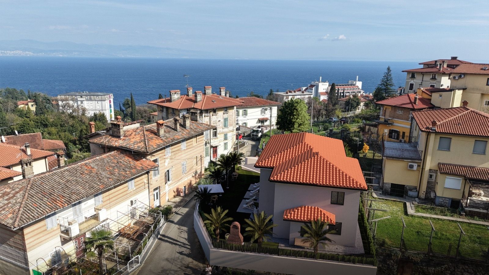 OPATIJA, LOVRAN - byt v novostavbě s vlastní zahradou jen 250 metrů od moře, TOP příležitost