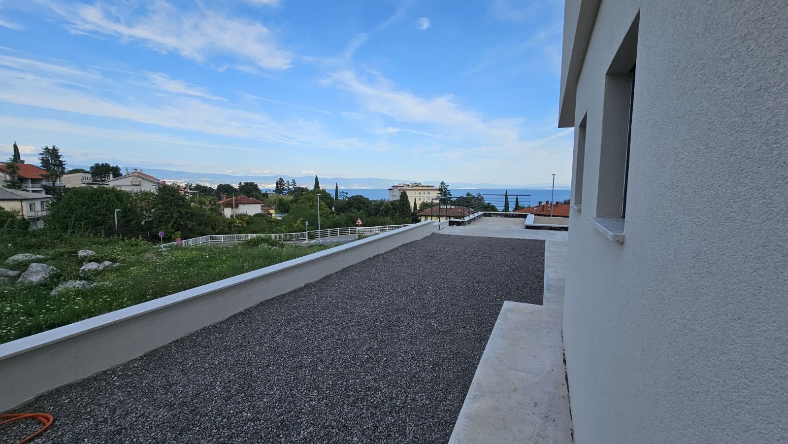 OPATIJA, LOVRAN - luxusní byt 94m2 v prvním patře, 300m od moře K prodeji je exkluzivní byt v prvním patře moderní městské vily se dvěma bytovými jednotkami, která se nachází na výjimečném místě v samém centru Lovranu - pouhých 300 metrů od moře a slavné promenády Lungomare. Nemovitost se nachází na konci klidné slepé ulice, obklopená moderními novostavbami, což zaručuje vysokou úroveň soukromí, bezpečnosti a příjemné okolí. Byt se rozkládá na celém patře a má celkovou čistou užitnou plochu 94 m2. Je zařízen ve vysokém roh-bau, což umožňuje budoucímu majiteli samostatně si vybrat povrchové materiály, jako jsou podlahy, dlažby, sanitární keramika a interiérové dveře - ideální příležitost k personalizaci prostoru podle vlastního vkusu a stylu. Půdorys byl pečlivě navržen tak, aby poskytoval maximální pohodlí a funkčnost. Otevřený obývací pokoj s kuchyní a jídelním koutem se otevírá na prostornou krytou terasu s panoramatickým výhledem na Kvarnerský záliv, ostrovy a středomořskou krajinu. Velké prosklené stěny přivádějí dostatek přirozeného světla a dále zdůrazňují pocit elegance a prostornosti. Byt zahrnuje dvě prostorné ložnice, z nichž jedna je hlavní s vlastní koupelnou a šatnou, zatímco druhá má přístup na terasu. Další místnost může sloužit jako třetí ložnice, pracovna nebo pokoj pro hosty. Kromě dvou koupelen má byt také další toaletu, která přispívá ke každodenní praktičnosti. K bytu náleží také 24 m² velký sklad v suterénu budovy, ideální pro uložení sezónních předmětů, sportovního vybavení a podobně. Byt je vybaven systémem vytápění a chlazení pomocí tepelného čerpadla s možností podlahového vytápění, zatímco špičková tepelná izolace a moderní stavební technologie zajišťují vysokou energetickou účinnost po celý rok. Upravená a oplocená zahrada s vlastním parkováním pro několik vozidel dále zdůrazňuje kvalitu a komfort této nemovitosti. Díky atraktivní mikrolokaci je byt ideální pro trvalé bydlení, luxusní dovolenou nebo jako investice do luxusního turistického pronájmu. Blízkost moře, restaurací, obchodů, škol, klinik a přírodního parku Učka činí tuto nemovitost mimořádně žádanou - vzácnou příležitost na realitním trhu v Lovranu. Vážení potenciální kupující, těší nás, že máte zájem o nemovitosti z naší nabídky. Pro více informací a pro domluvení prohlídky nemovitosti nás neváhejte kontaktovat. Prohlídka nemovitosti je možná pouze s podpisem realitní smlouvy.