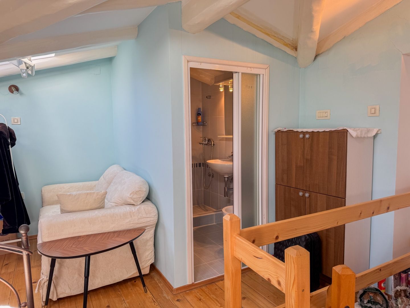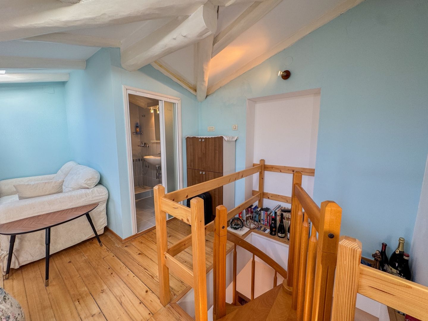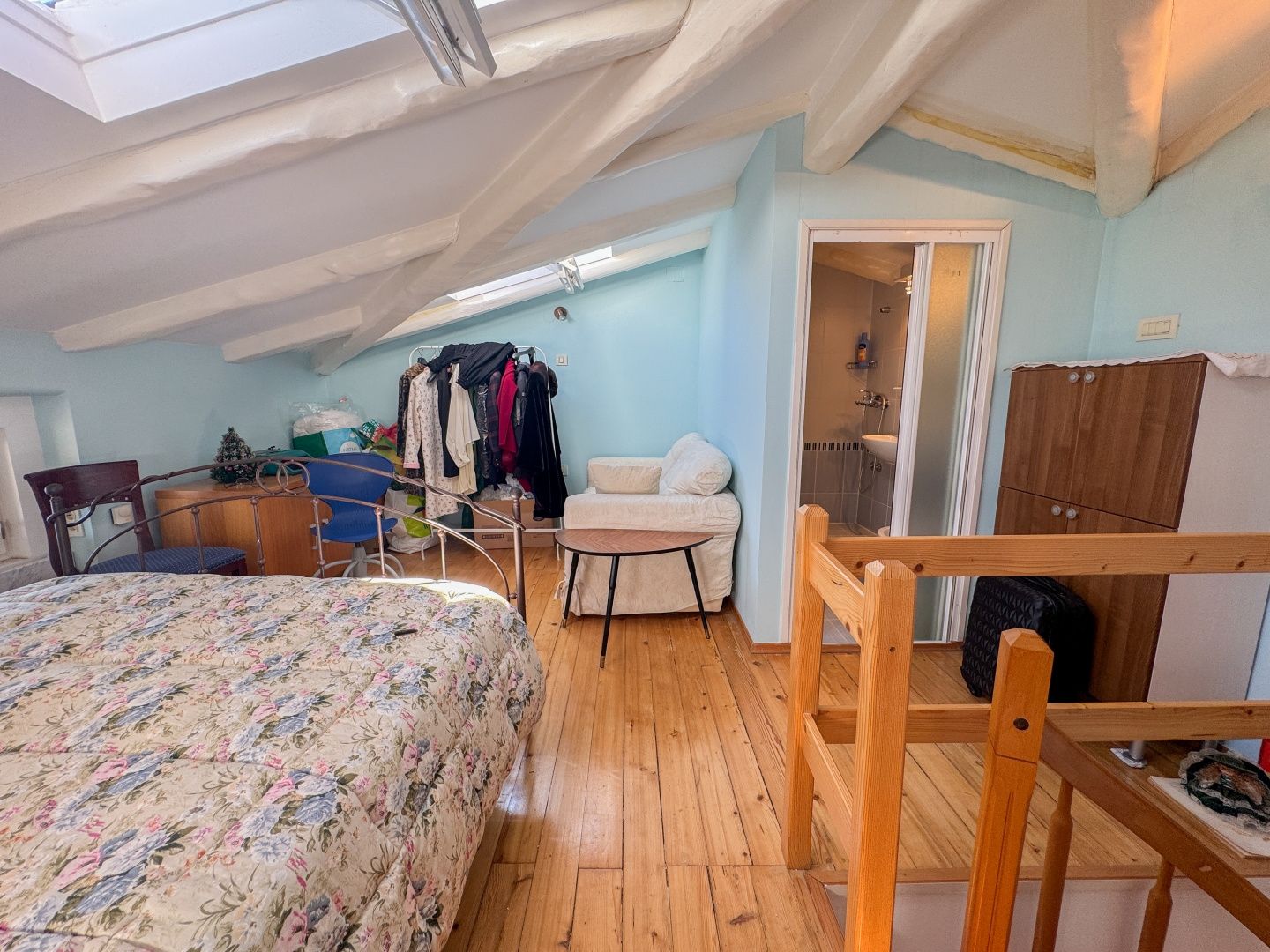 OPATIJA, LOVRAN - skvělá příležitost ke koupi historického bytu ve vile, druhá řada u moře, terasa a výhled Exkluzivně z nabídky DUX vyzdvihujeme byt ve druhé řadě u moře, který se nachází v historické vile v jedné z nejlepších ulic v Lovranu (nedaleko Opatije). Byt se nachází ve 3. patře rakousko-uherské vily a skládá se z chodby, kuchyně, velké koupelny s oknem, prostorné ložnice orientované na jih s vlastním balkonem a výhledem na moře a otevřeného obývacího pokoje s přístupem na další balkon s panoramatickým výhledem na moře. Točité schody vedou do podkroví, kde se nachází druhá ložnice s vlastní koupelnou. Byt i nemovitost jsou celkově v dobrém a funkčním stavu. Tesařské práce jsou původní, dřevěné, stejně jako zábradlí na balkonech. Vysoké stropy dále zdůrazňují autenticitu této nemovitosti. Jedná se o fantastickou investiční příležitost a ideální volbu pro milovníky historických budov. Vila má společnou zahradu o rozloze 400 m² a k moři se dostanete pěšky během několika sekund. Krátkou procházkou se dostanete do samého centra Lovranu a na slavnou promenádu Lungomare. Chcete-li si domluvit prohlídku nemovitosti, zavolejte s důvěrou makléři - konzultace v němčině je možná.