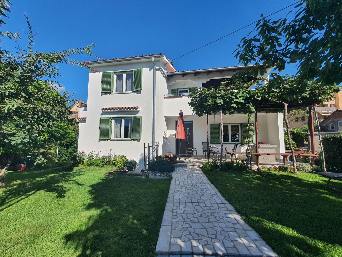 OPATIJA, MATULJI - rodinný dům s pěknou zahradou nad centrem Opatije, výhled na moře, skvělá poloha Mihotići je vesnice v Chorvatsku, 1500 m od centra Matulji. Území obce Matulji je většinou pokryto lesy a lesní půdou. Cíle rozvoje cestovního ruchu obce Matulji jsou v souladu s globálními ekonomickými a sociálními cíli obce. Dlouhodobým cílem rozvoje cestovního ruchu v obci Matulji je především blahobyt místního obyvatelstva a dosažení ekonomické prosperity s maximálním možným zachováním přírodního prostředí a kulturně-historického dědictví. kamena Nabízíme k prodeji krásný rodinný dům, který se nachází nad kouzelným centrem Opatije, tato kráska nabízí jedinečnou příležitost žít život svých snů. Dům postavený v roce 1992 o dvou nadzemních podlažích, obohacený o sklepní místnosti (90m2), které lze využít k různým účelům, přičemž v současné době je využívána kotelna, sklep a dílna, Vás přivítá udržovanou zahradou a místem pro odpočinek. a socializace. V přízemí domu se nachází vstupní chodba a předsíň, kuchyně s jídelnou, obývací pokoj s pracovnou, koupelna, komora a ložnice. Do prvního patra vedou ručně vyrobené dřevěné schody. Je zde krásná velká krytá terasa s výhledem na moře a okolí, šatna, koupelna a dvě ložnice, z nichž jedna má vstup na balkon. V přední části jsou dvě oplocená parkovací stání s možností rozšíření, několik ovocných stromů, zrekonstruovaná stodola, kterou lze také využít. Vytápění je ústřední v celém domě a je zde možnost vytápění peletami, dřevem nebo olejem. S touto kráskou přichází prostorný pozemek o rozloze 870 metrů čtverečních, vytvářející dokonalé prostředí pro vaše soukromí a pohodlí. Nemovitost má neuvěřitelný potenciál vytvořit oázu klidu a relaxace s krásnou zahradou, která se může snadno stát vaší osobní idylkou, kde je možné vybudovat bazén, protože poskytuje soukromí před zvědavými pohledy. Je to ráj pro rodinu, která si ráda užívá pohodlí vlastního domova se spoustou soukromí a nachází se na skvělém místě, nedaleko autobusového nádraží, tržnice, vzdušnou čarou 1400m od moře. Čisté vlastnictví bez břemen a řádná dokumentace s povolením k užívání. Nenechte si ujít příležitost stát se majitelem této krásné nemovitosti a užívat si výhod života na pobřeží! Kontaktujte nás a domluvte si prohlídku co nejdříve!