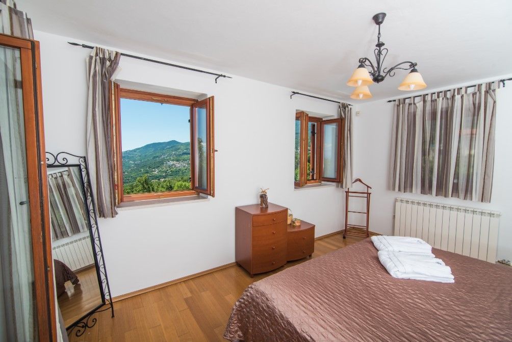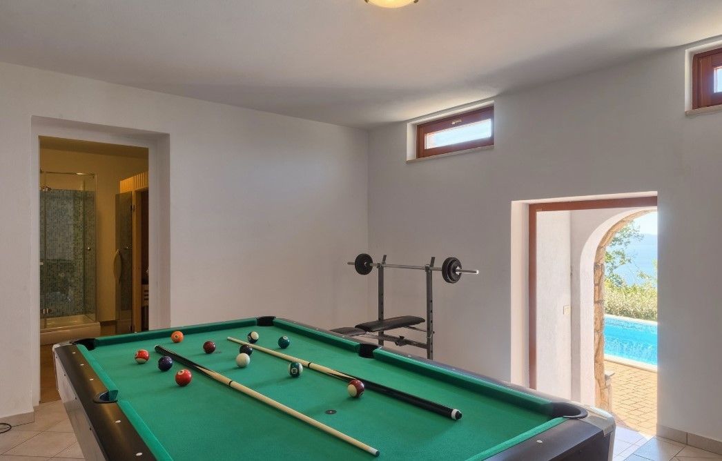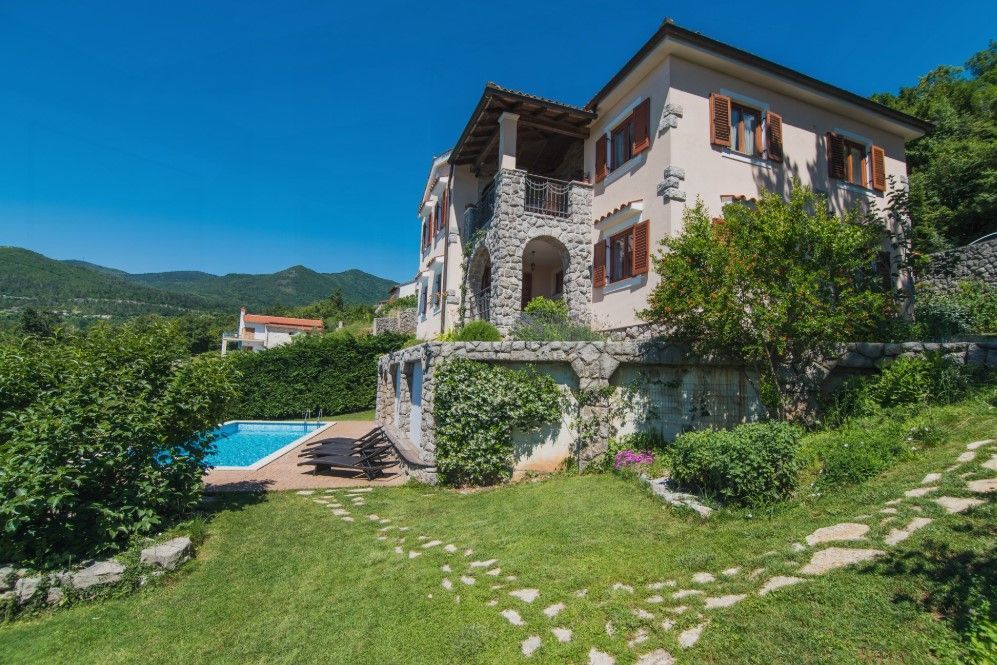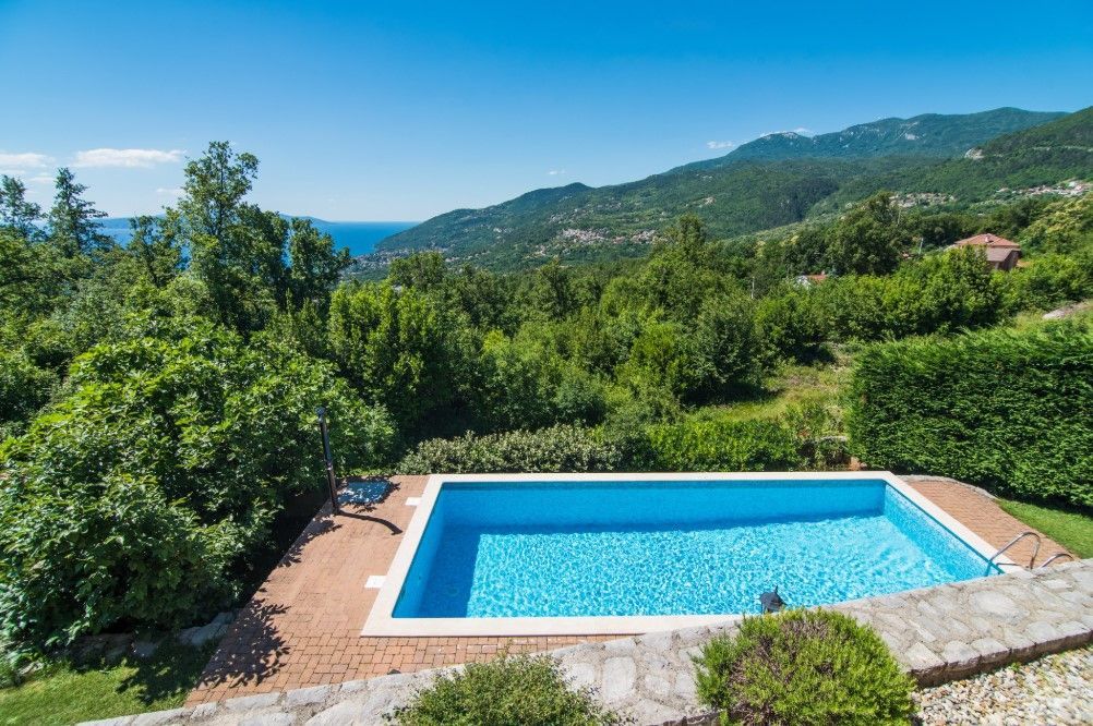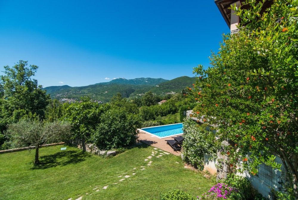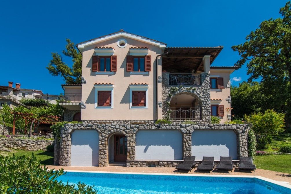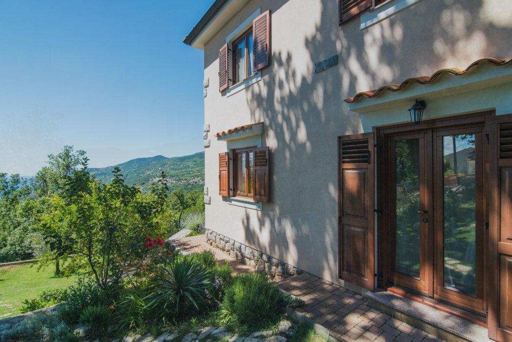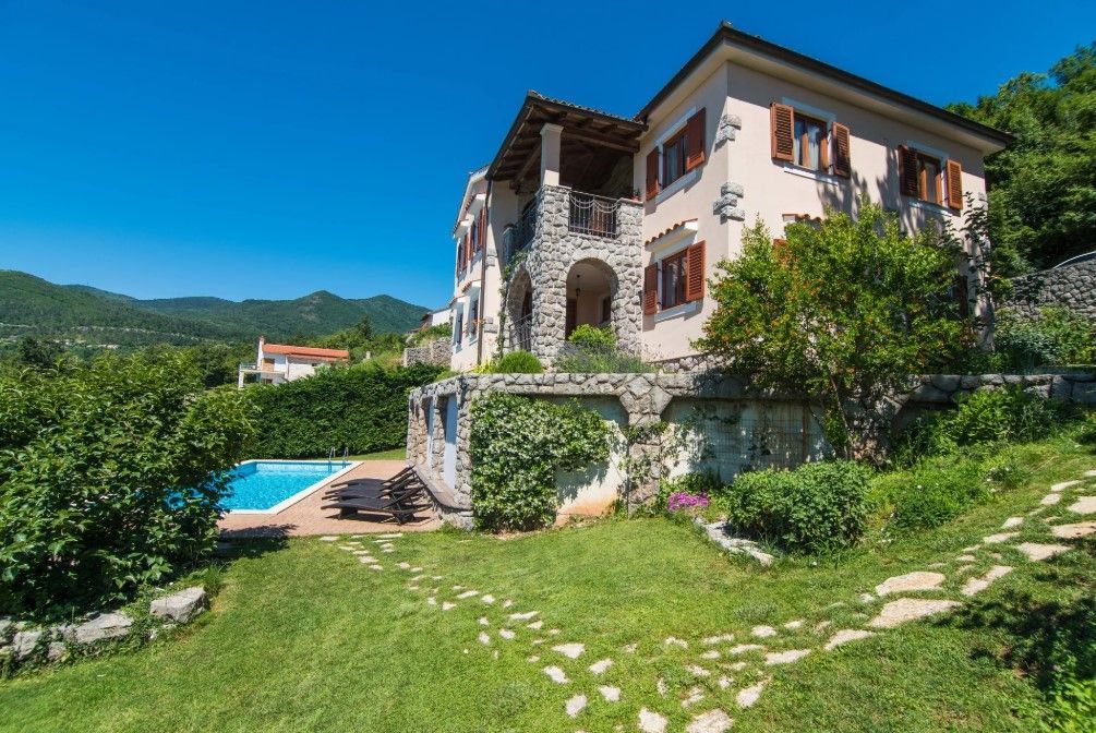 OPATIJA, VEPRINAC – okouzlující dům v klidné vesnici s bazénem a panoramatickým výhledem na Kvarnerský záliv Tato elegantní vila, nacházející se pod impozantní horou Učka, nad Ičići, nabízí jedinečnou kombinaci přírodního klidu a blízkosti moře. Kromě soukromého vyhřívaného bazénu se vila pyšní nádherným výhledem na Kvarnerský záliv, ostrovy Krk a Cres a Istrijský poloostrov, což vytváří ideální prostředí pro luxusní dovolenou a život. Vila může ubytovat až osm hostů a nabízí čtyři prostorné ložnice – tři s manželskou postelí a jednu s oddělenými lůžky. K dispozici jsou tři koupelny, z nichž jedna má vířivku. Prostorný obývací pokoj je propojen s plně vybavenou kuchyní a jídelnou, což poskytuje ideální prostor pro společenské akce. Zvláštní atrakcí vily je soukromé wellness centrum s posilovnou a saunou. Vila je vybavena podlahovým vytápěním, ústředním topením a klimatizací pro maximální pohodlí po celý rok. Dobře udržovaná zahrada s trávníkem a zavlažovacím systémem je obohacena o vyhřívaný bazén, venkovní sprchu a gril. Pro nejmenší hosty je v blízkosti bazénu k dispozici dětské hřiště. Vila má také soukromé parkoviště s kapacitou až pro čtyři vozidla. Vila se nachází na pěší stezce, která vede k moři a Ičići (25 minut chůze), a jen pár minut jízdy autem vás dělí od krásných pláží a špičkových restaurací. Do okouzlujících Ičići se dostanete autem za pouhých pět minut, zatímco do okouzlující Opatije se dostanete za deset minut. Město Rijeka je vzdálené pouhých 20 minut jízdy. Chcete-li si domluvit prohlídku nemovitosti, zavolejte s důvěrou makléři - konzultace v němčině je možná.