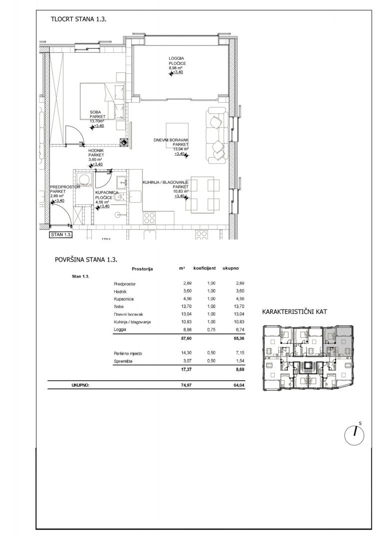 | Plocha celkem | 74 m² |