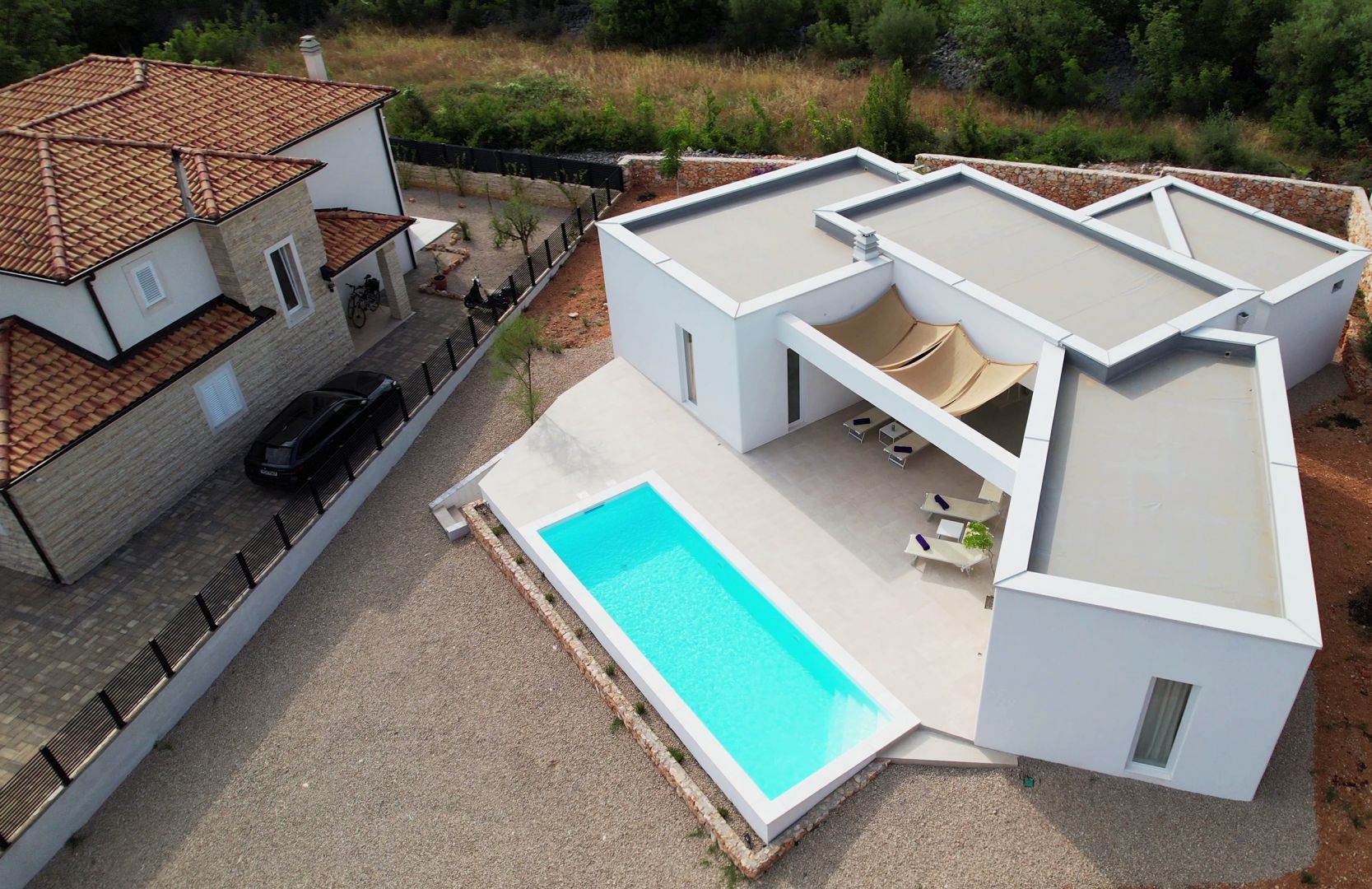 OSTROV KRK, LINARDIĆI - Luxusní moderní přízemní dům s bazénem a výhledem na moře