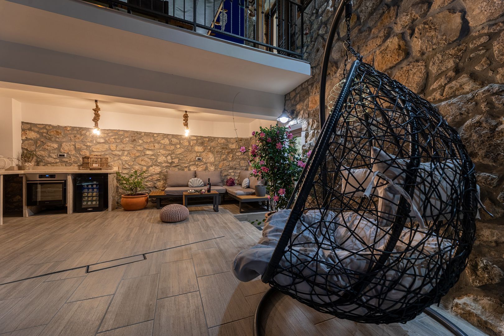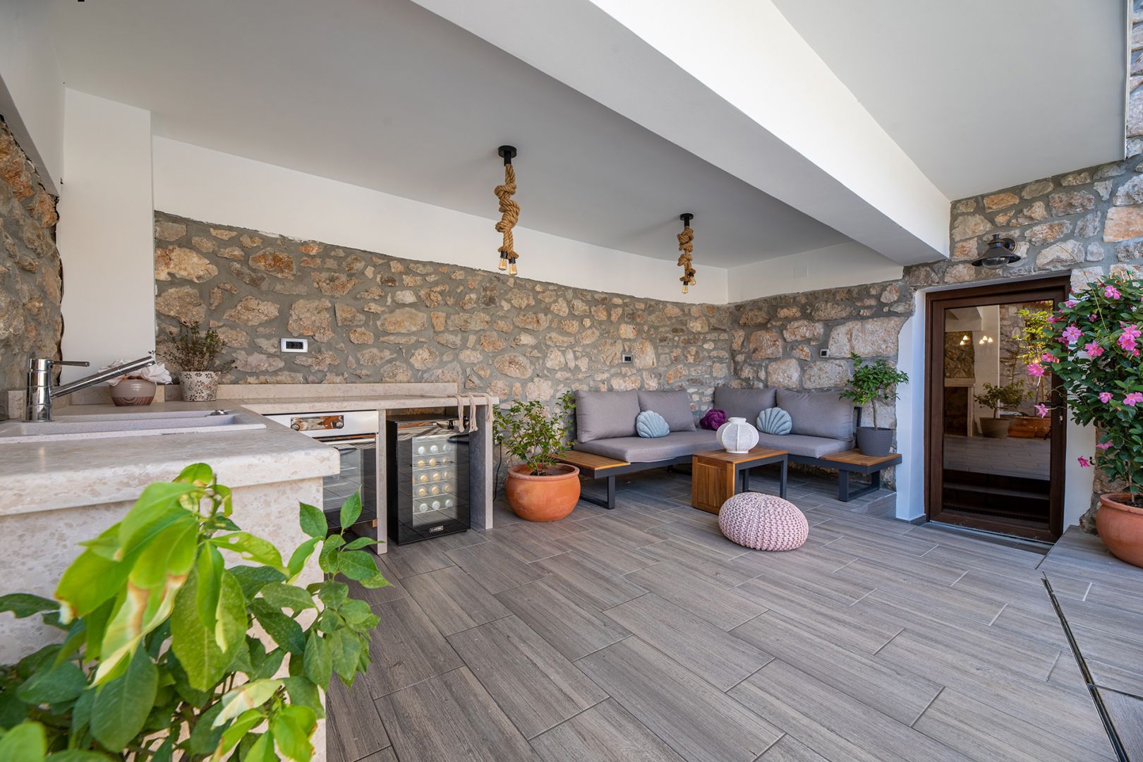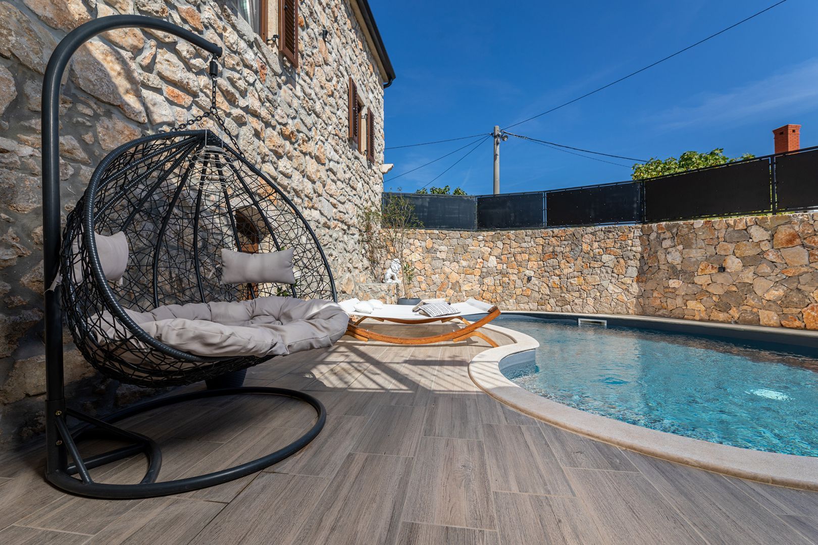 Ostrov Krk - Luxusní kamenná vila s bazénem, jen 1500 m od moře V přízemí budovy se nachází taverna, kde můžete strávit příjemné chvíle s přáteli při kulečníku nebo šipkách, ve vedlejší místnosti je sauna a posilovna. Z velké terasy v prvním patře se vchází do obývacího pokoje, kuchyně s jídelnou, koupelny a ložnice. Vnitřní schodiště vede do druhého patra, kde je kromě galerie obývací pokoj, dvě ložnice, koupelna a krásná terasa. Na oploceném dvoře se nachází bazén, prostor na slunění se sprchou a gril. Tato krásná budova má čtyři parkovací místa. Pokud hledáte klid a skutečný odpočinek, je toto zařízení to pravé pro vás. Na východní straně ostrova Krk se nachází obec Dobrinj se stejnojmenným centrem. Dobrinj se nachází na kopci vysokém asi 200 metrů a je jedním ze středověkých hradů, které byly v minulosti centry gramotnosti. Dobrinjština byla po staletí mimořádně zemědělskou oblastí. Zastoupen byl také chov zvířat a pěstování oliv a využívání lesních zdrojů. Místo je také známé svými pestrými lidovými kroji, folklorními akcemi, školou sopela (krkský dechový nástroj) a tradiční místní kuchyní. V tomto ostrovním centru převažují autochtonní kamenné domy a úzké kamenné uličky, které připomínají minulost. Nedaleko Dobrinje je jeskyně Biserujka, která potěší svou krásou a zajímavými vysráženými formami. Je to jediná jeskyně na ostrově, kterých je více než 50, určená k přijímání návštěvníků. Podle pověsti byla jeskyně pojmenována Biserujka (perla) podle nalezeného pokladu, který patřil místním pirátům.