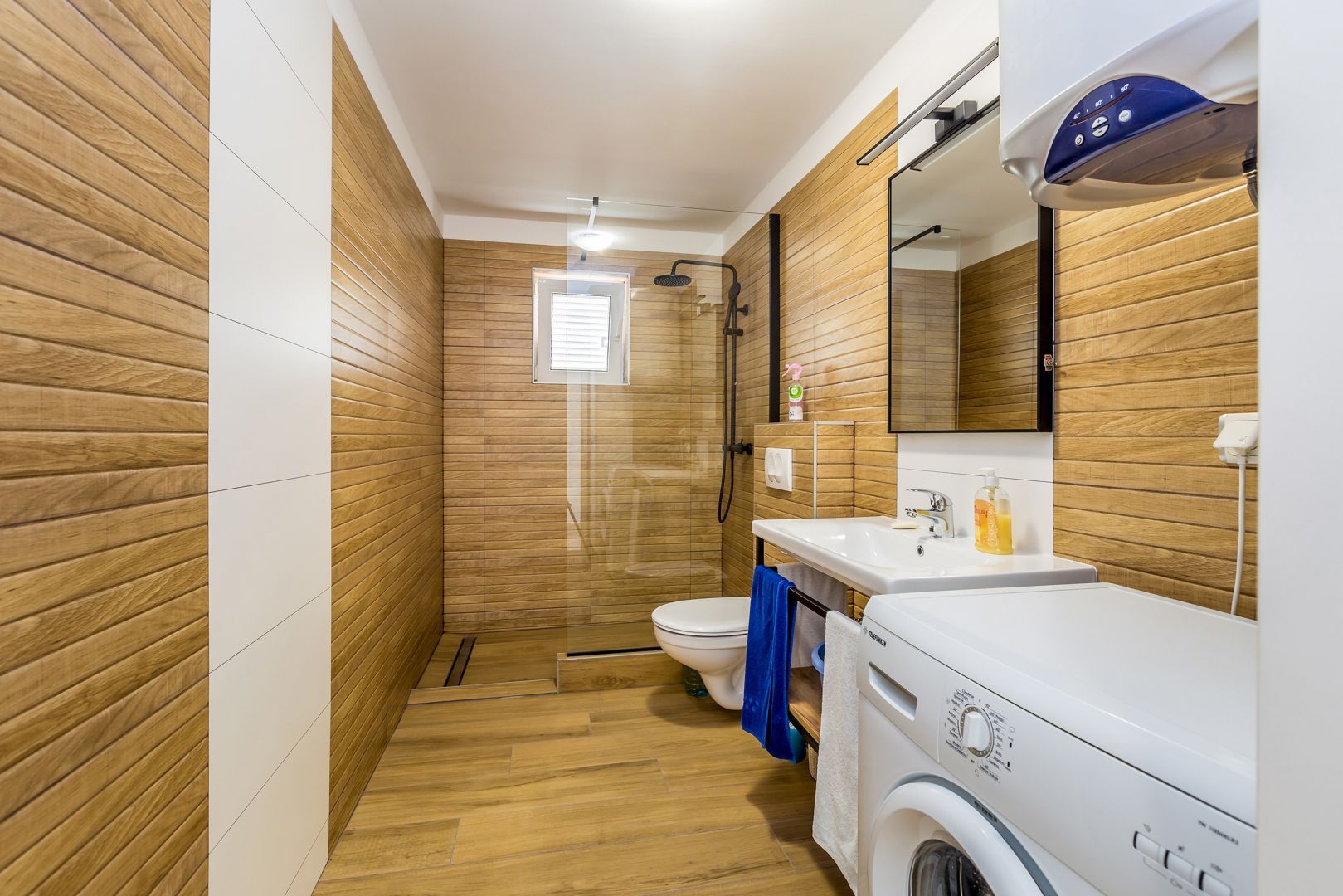 OSTROV KRK, MALINSKA - Dvoupokojový apartmán s výhledem na moře Nově zařízený apartmán o velikosti 67 m2 se nachází v 1. patře budovy s celkem 2 patry. Skládá se z otevřeného prostoru, kde je kuchyň s jídelnou a obývacím pokojem se vstupem na krytou terasu s panoramatickým výhledem na moře, 2 ložnice, každá s vlastním balkonem a koupelnou. K bytu náleží jedno parkovací stání před domem. Byt byl adaptován v roce 2023, je klimatizovaný, má PVC truhlářství, krb, kvalitní keramiku, sanitu a podlahové krytiny. Je plně zařízený a vybavený všemi domácími spotřebiči. Mikroumístění je na skvělém místě, pouhých 650 m od pláží, centra města a všech ostatních zařízení. Malinska a celá její oblast se nazývá Dubašnica a nachází se v západní části ostrova Krk. Dubašnica byla až do 15. století téměř bez stálých obyvatel, stejně jako oblast jižně od ní, téměř k městu Krk. Název oblasti pochází z dubu nebo dubu, protože jsou zde bohaté lesy a pastviny s trochou orné půdy. Dubašnica byla převážně oblastí Omišalj již před 12. stoletím, ale její část patřila také Krku. Malinska, z přístavu na vývoz dřeva, se díky mírnému klimatu s asi 260 slunečnými dny v roce stává klimatickými lázněmi. Dnes je to jedna z nejsilnějších turistických destinací ostrova, známá svými četnými plážemi a rozvinutým hotelovým průmyslem a rodinnou turistikou. Nedaleko Malinské je Porat, klidné místo, kde kdysi obyvatelstvo žilo z rybolovu, ale dnes hlavní roli převzal turistický ruch. Název místa pochází z italského slova porto, což znamená přístav. Pláže v Malinska a na ostrově Krka jsou známé jako jedny z nejlepších v Chorvatsku. Jednou z výhod členitého a širokého pobřeží v Malinské je to, že pláže, ať se vydáte kamkoli, nejsou nikdy daleko. Rozmanité pobřeží ostrova nabízí širokou škálu pláží: od skalnatých, písečných a oblázkových až po skryté zátoky. Pláže pro děti, pro handicapované, neplavce či seniory, pláže pro psy, pláže pro ty, kteří hledají přírodní stín a blízkost parkovacích míst, milovníky sportovních aktivit a plážových barů, ale také neoficiální nudapláž – to vše je nabízí Malinska.