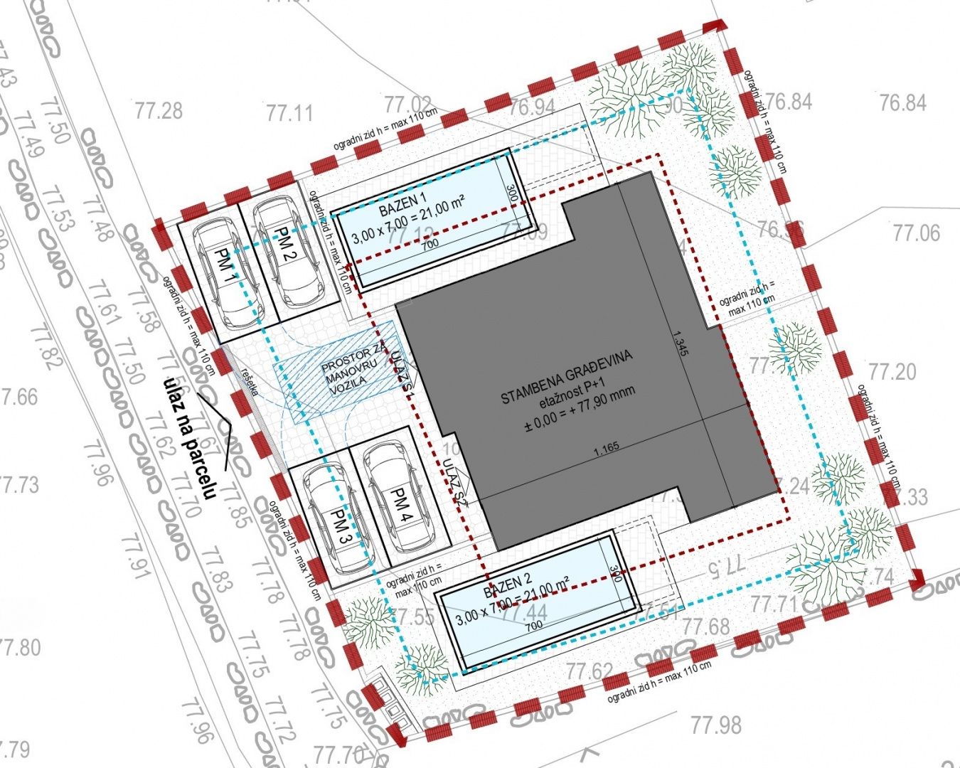 OSTROV KRK, MALINSKA (okolí) - Stavební pozemek 511 m2 s projektem Představujeme stavební pozemek o rozloze 511 m2, který se nachází v klidné oblasti v blízkosti Malinské, pouhých 1,5 km vzdušnou čarou od moře. Lokalita je obklopena novostavbami a představuje ideální příležitost pro investory nebo kupující, kteří hledají hotové řešení pro výstavbu moderních rodinných zařízení. K pozemku existuje stávající projekt na dvojdomek, přičemž každá jednotka má přibližně 112 m2, vlastní bazén a dvě parkovací místa. Stavební povolení je ve vyřizování, což umožňuje budoucímu majiteli okamžitě po jeho získání zahájit stavbu bez dalších přípravných kroků. Infrastruktura a přístup: Elektřina, voda a internetové připojení se nacházejí 20 metrů od pozemku, kanalizační infrastruktura je plánována na rok 2026. Přístup je zajištěn z asfaltové komunikace. Charakteristika pozemku: Obdélníkový tvar, rovinatá konfigurace - ideální pro výstavbu. Přípravné práce již byly provedeny - pozemek je oplocen betonovými zdmi a srovnán s konečnou výškou budovy. Terén nemá výhled na moře, ale nabízí výhodnou mikrolokaci a orientaci. Vlastnictví je 1/1, dokumentace je v pořádku, žádná věcná břemena. Proč je to skvělá příležitost? Tento stavební pozemek na Krku nabízí vynikající poměr hodnoty a investičního potenciálu. Dokončený projekt, klidná lokalita v okolí novostaveb, blízkost moře a centra a možnost rychlého zahájení výstavby dělají z tohoto pozemku vynikající volbu pro investory, ale i pro soukromé kupce, kteří chtějí moderní dům s bazénem v atraktivní lokalitě na Krku. *** Máte zájem a potřebujete podrobnější informace k rozhodnutí? Schůzku k prezentaci a prohlídce si můžeme domluvit telefonicky nebo e-mailem. ***