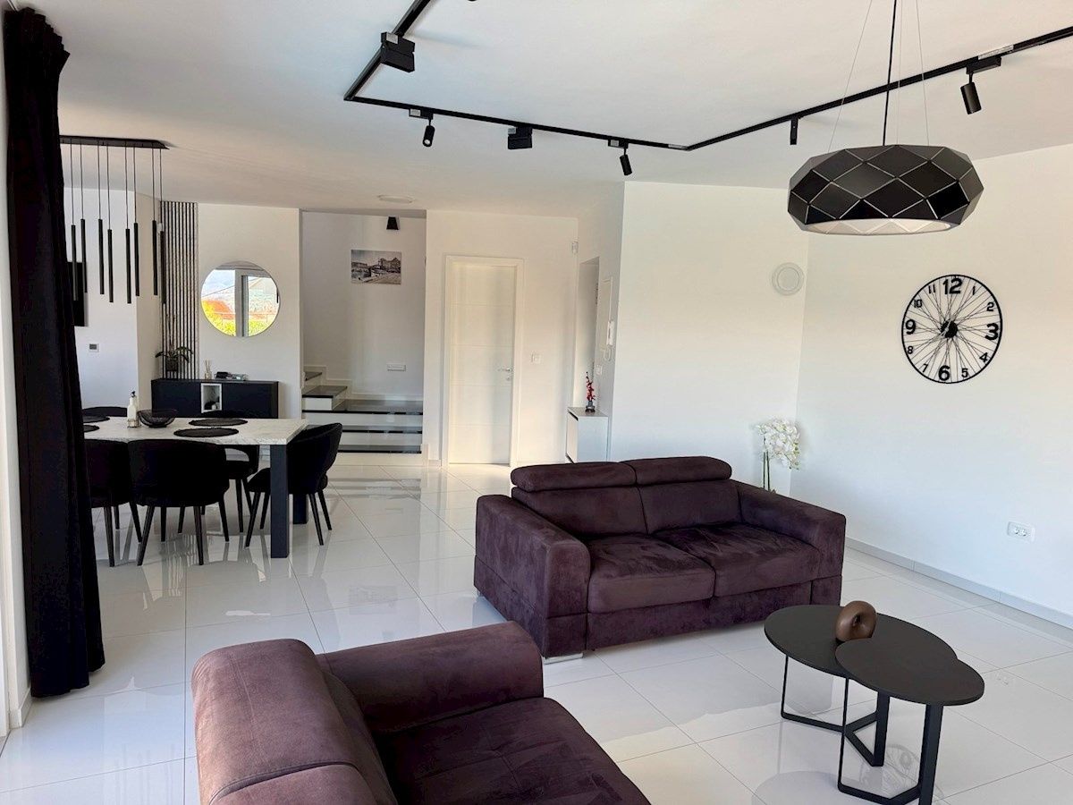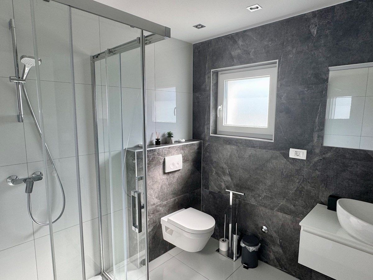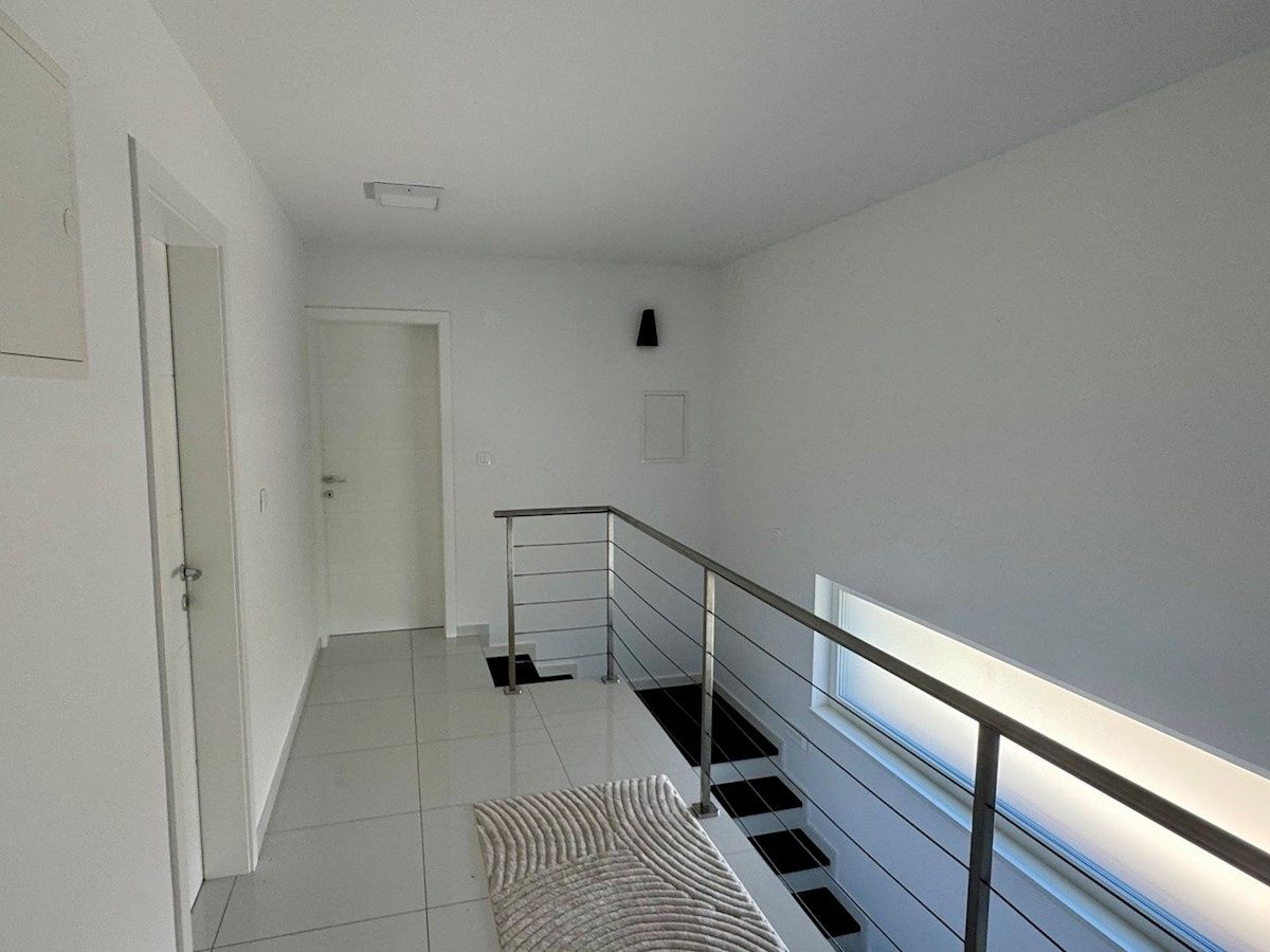OSTROV KRK, MALINSKA – samostatně stojící vila s bazénem, výhledem na moře a plným soukromím V klidné, chráněné oblasti nedaleko Malinské, v elegantním komplexu luxusních domů, se nachází tato výjimečná samostatně stojící vila – moderní, prostorná a s nádechem středomořského kouzla. Dům se nachází na 600 m² vlastní zahrady a je pečlivě navržen tak, aby každá terasa, každý pokoj a každý výhled měl svůj vlastní význam – a v pozadí dech moře. Venkovní prostor vyzařuje jednoduchost a harmonii: bazén s prostornou opalovací plochou, příjemný prostor pro společenské akce a krytá terasa s výhledem na moře – vše, co potřebujete k klidnému začátku dne s ranní kávou a štěbetáním ptáků. Interiér pokračuje ve stejném tónu: světlý otevřený obývací pokoj s kuchyní a jídelnou v přízemí a jedna ložnice s vlastní toaletou pro větší praktičnost. V patře – tři pohodlné ložnice, dvě koupelny a terasa orientovaná na jih s nezapomenutelným výhledem. Z každého pokoje je výhled na moře na obzoru a hlavní ložnice má také největší soukromou terasu pro chvíle ticha, které si každý občas přeje. Dům byl postaven promyšleně: - podlahové vytápění - hliníkové truhlářské práce s velkými posuvnými stěnami - elektrické rolety a klimatizace v každém pokoji - kvalitní keramika a vybrané detaily činí prostor pohodlným a dlouhodobě udržitelným. Vila se prodává s nábytkem, téměř nepoužitá, ihned k nastěhování - bez nutnosti dalších investic. Zvláštní hodnotou této nemovitosti je její poloha - výhled na moře zůstává navždy, bez možnosti nové výstavby v oblasti. Moře a centrum Malinské jsou vzdálené jen pár minut jízdy autem a ulice, kde se vila nachází, poskytuje klid a soukromí, které jsou dnes zřídka k dispozici.