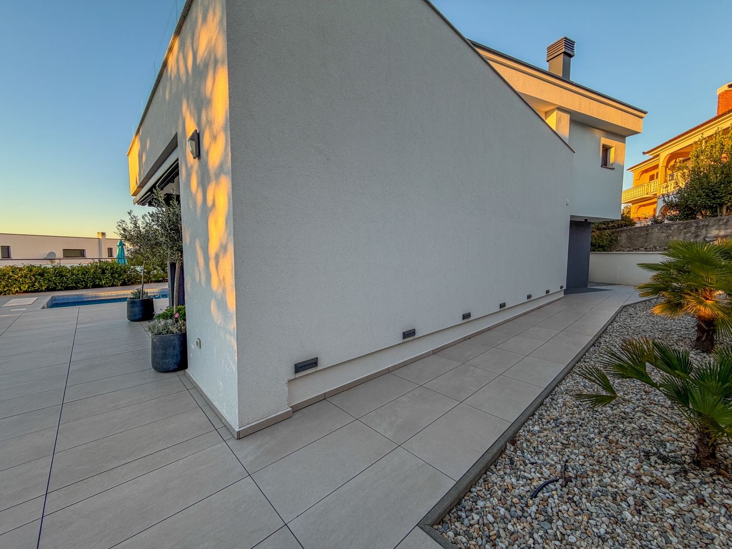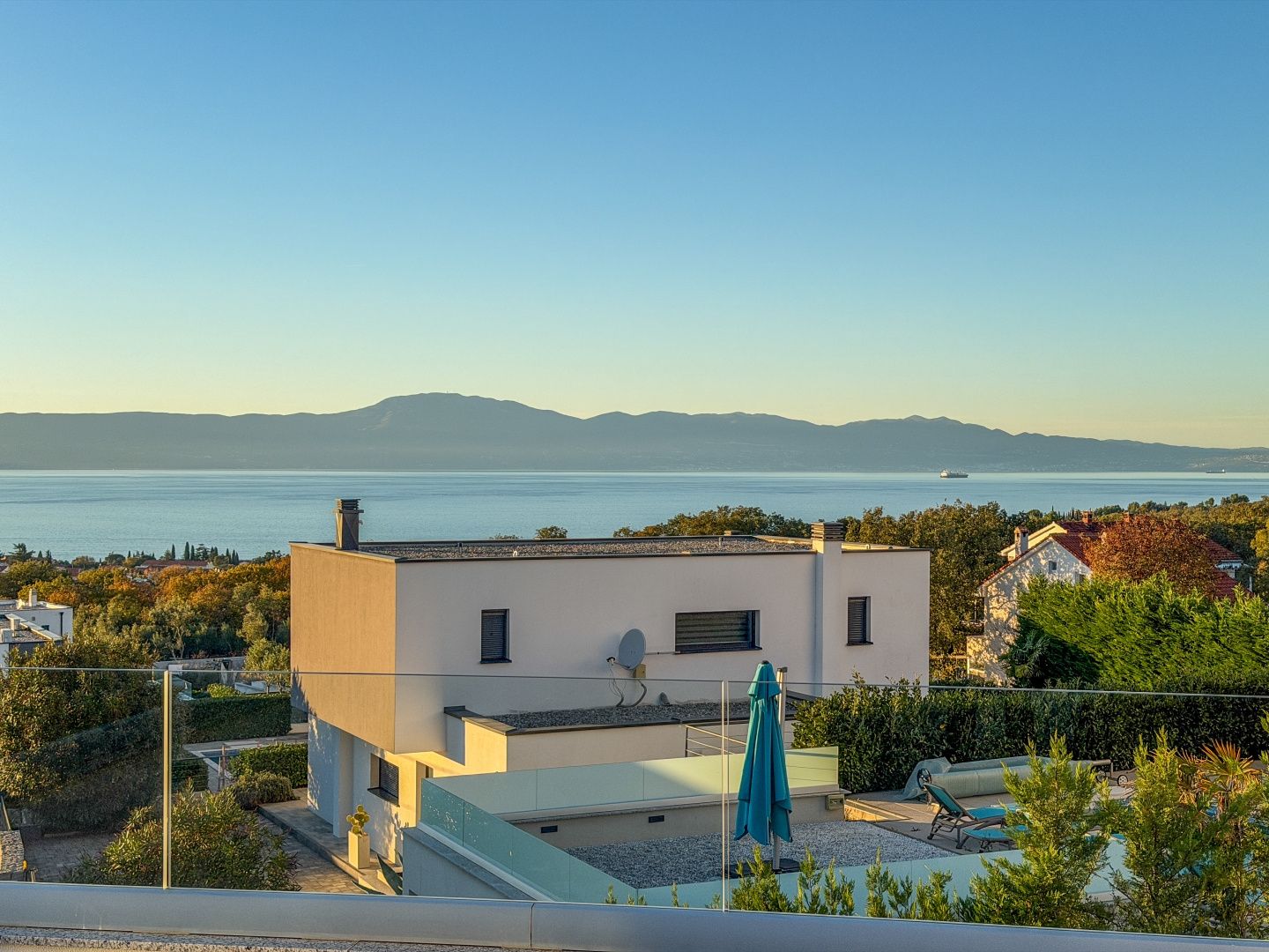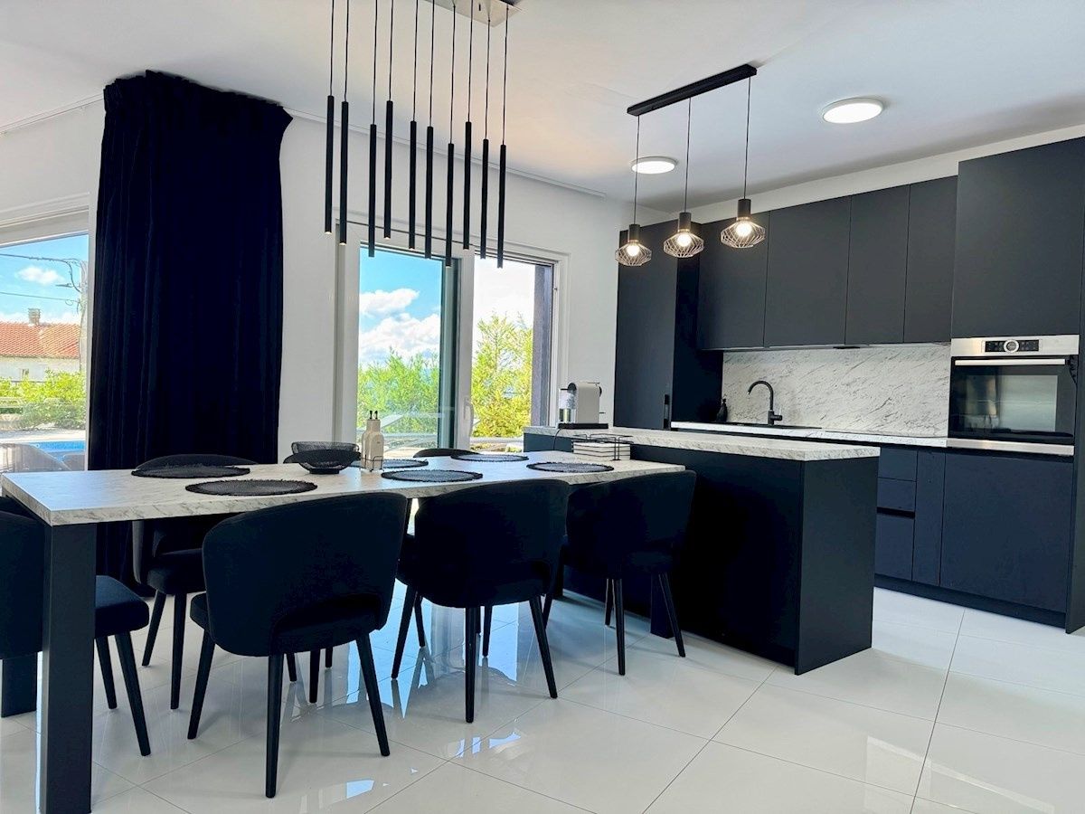 OSTROV KRK, MALINSKA – samostatně stojící vila s bazénem, výhledem na moře a plným soukromím V klidné, chráněné oblasti nedaleko Malinské, v elegantním komplexu luxusních domů, se nachází tato výjimečná samostatně stojící vila – moderní, prostorná a s nádechem středomořského kouzla. Dům se nachází na 600 m² vlastní zahrady a je pečlivě navržen tak, aby každá terasa, každý pokoj a každý výhled měl svůj vlastní význam – a v pozadí dech moře. Venkovní prostor vyzařuje jednoduchost a harmonii: bazén s prostornou opalovací plochou, příjemný prostor pro společenské akce a krytá terasa s výhledem na moře – vše, co potřebujete k klidnému začátku dne s ranní kávou a štěbetáním ptáků. Interiér pokračuje ve stejném tónu: světlý otevřený obývací pokoj s kuchyní a jídelnou v přízemí a jedna ložnice s vlastní toaletou pro větší praktičnost. V patře – tři pohodlné ložnice, dvě koupelny a terasa orientovaná na jih s nezapomenutelným výhledem. Z každého pokoje je výhled na moře na obzoru a hlavní ložnice má také největší soukromou terasu pro chvíle ticha, které si každý občas přeje. Dům byl postaven promyšleně: - podlahové vytápění - hliníkové truhlářské práce s velkými posuvnými stěnami - elektrické rolety a klimatizace v každém pokoji - kvalitní keramika a vybrané detaily činí prostor pohodlným a dlouhodobě udržitelným. Vila se prodává s nábytkem, téměř nepoužitá, ihned k nastěhování - bez nutnosti dalších investic. Zvláštní hodnotou této nemovitosti je její poloha - výhled na moře zůstává navždy, bez možnosti nové výstavby v oblasti. Moře a centrum Malinské jsou vzdálené jen pár minut jízdy autem a ulice, kde se vila nachází, poskytuje klid a soukromí, které jsou dnes zřídka k dispozici.