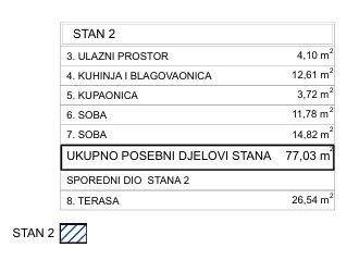 OSTROV KRK, OMIŠALJ - Apartmán 77 m2 s terasou a zahradou Apartmán o obytné ploše 77 m2 se skládá z jedné ložnice, koupelny, kuchyně s jídelnou a samostatného obývacího pokoje s přístupem na částečně krytou terasu o rozloze 27 m2. K apartmánu náleží zahrada se 3 olivovníky a jedno parkovací místo. Dům byl postaven v roce 1994 a v roce 2013 byl kompletně zrekonstruován, kdy byla instalována nová hliníková okna a okenice. Apartmán je klimatizovaný, zařízený a vybavený a jako takový se prodává. V blízkosti domu se nachází dětské hřiště a fotbalové hřiště. Díky vynikající lokalitě se v blízkosti nachází veškerá důležitá zařízení, včetně supermarketu, pošty, banky, kaváren, zdravotního střediska, lékárny, školy a školky, a v centru města se nachází zachovalé staré město, které si zachovalo kouzlo minulých časů. Na rozdíl od jiných měst na Krku žije Omišalj i v zimě. Většina majitelů v obci žije trvale, což ji činí živou a atraktivní. Příjemnou procházkou za pár minut nebo autem se dostanete k několika plážím dle vašeho výběru. Omišalj se nachází na skvělém místě v blízkosti Rijeky, Crikvenice, Záhřebu, Lublaně a má dobré autobusové spojení do Rijeky. Vynikající nemovitost k bydlení, ale také jako investice k dlouhodobému nebo krátkodobému pronájmu. ***