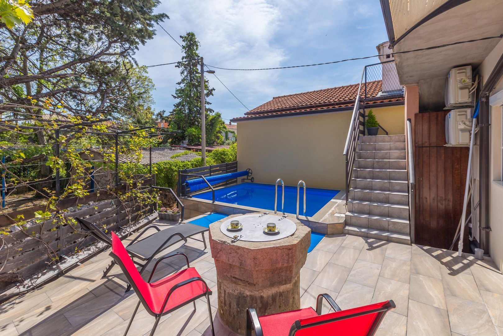 OSTROV KRK, širší oblast města KRKA - kamenný dům v řadě s bazénem, jacuzzi a panoramatickým výhledem na moře