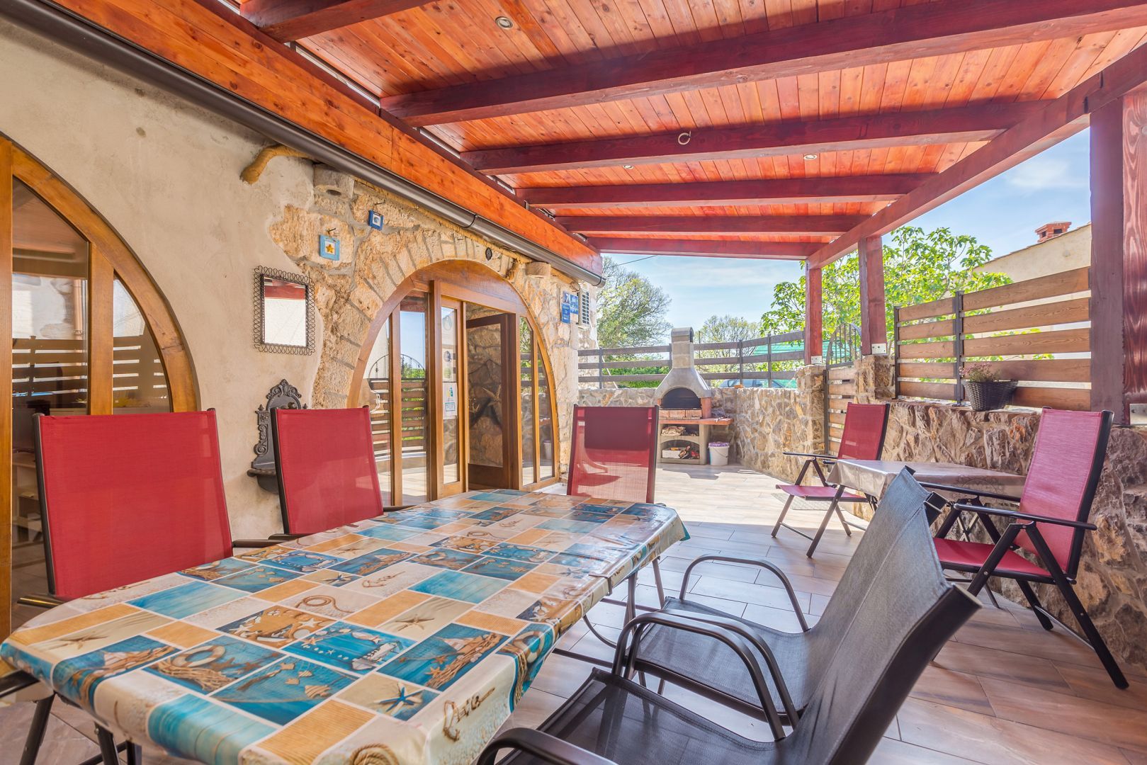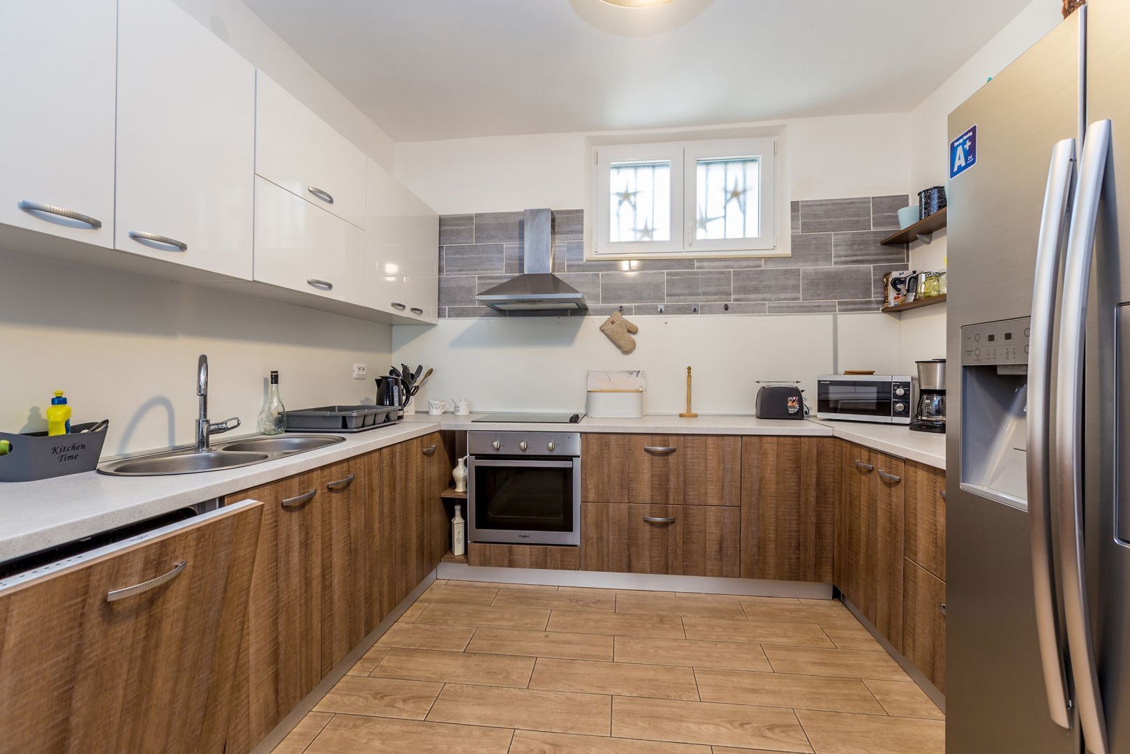 OSTROV KRK, širší oblast města KRKA - kamenný dům v řadě s bazénem, jacuzzi a panoramatickým výhledem na moře Dům se skládá z přízemí, prvního patra a střešní terasy. V přízemí se nachází obývací pokoj s kuchyní a jídelnou, WC, komora, krčma a místnost pro zábavu. V patře jsou čtyři ložnice s vlastními koupelnami, šatna, WC a terasa s vyhřívaným bazénem, která je venkovním schodištěm propojena se střešní terasou, kde je vířivka. Střešní terasa má velikost 22 m2 a je hlavním přínosem tohoto kamenného domu. Nabízí panoramatický výhled na všechny strany, zejména směrem na nedaleký ostrov Cres. Dům se prodává kompletně zařízený a vybavený a díky své klidné poloze je ideální jako rekreační dům. Na zahradě jsou parkovací místa pro několik aut. Dnes známe Krk jako turistickou destinaci výjimečného kulturního a uměleckého dědictví, kde starobylá Splendidissima Civitas Curitarum (nádherné město obyvatel Krku) žije v souladu s rušným charakterem moderní doby. Ideální zeměpisná poloha je výhodou, kterou si ostrov Krk jako turista velmi dobře cenil. Hovoříme o blízkosti pevniny, ke které před dvaceti lety přibyl most spojující Krk s pevninou, a tím ji ještě více zpřístupnil. Dobré dopravní spojení udělalo z ostrova Krk oblíbený výletní cíl, ale také naopak: z ostrova lze podnikat smysluplné jednodenní výlety. Například výlet do národních parků Plitvická jezera a Severní Velebit. Opravdoví objevitelé určitě budou chtít poznat Rijeku - centrum Primorsko-goranské župy, a svůj pobyt v Rijece spojí s nevyhnutelnou návštěvou Opatije - turistické "perly Jadranu". Velmi zajímavý bude jednodenní výlet na Istrii, kde doporučujeme ubytovat se spíše v její centrální části než na pobřeží! Konečně je ostrov Krk spojen trajektovou linkou se třemi ostrovy: Rab, Cres, Lošinj, které se také mohou stát cílem vašich jednodenních výletů.