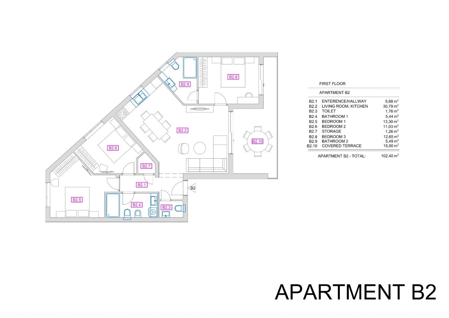OSTROV KRK, VRBNIK - Apartmán v 1. patře s terasou a výhledem na moře Představujeme moderní novostavbu ve Vrbniku se šesti bytovými jednotkami, na okraji zeleného pásu! - Vysoce kvalitní konstrukce a vybavení. Vyzdvihujeme elektrické podlahové vytápění s Wi-Fi ovládáním (obývací pokoj, koupelna a WC), klimatizace Daikin v ložnicích a obývacím pokoji, kotel o objemu 180–200 litrů, keramiku s dřevěným vzorem, venkovní PVC truhlářské práce, interiérové dřevěné dveře se skrytými panty a magnetickým zamykáním a kamerový systém. - Budova v klidné lokalitě s dostatkem soukromí a krásným výhledem, pouhých 350 metrů od moře! Nabízíme pro vás: Apartmán v 1. patře s terasou a výhledem na moře - plocha 102 m2 - 3 ložnice (11 m2 - 13,30 m2) - 2 koupelny a 1 toaleta - úložný prostor - otevřený prostor kuchyně s jídelnou a obývacím pokojem - 31 m2 - krytá terasa 15 m2 - výhled na moře - 2 parkovací místa Dokončení výstavby je plánováno na léto 2026. Vynikající příležitost pro soukromé užívání nebo investici do turistického pronájmu! ***