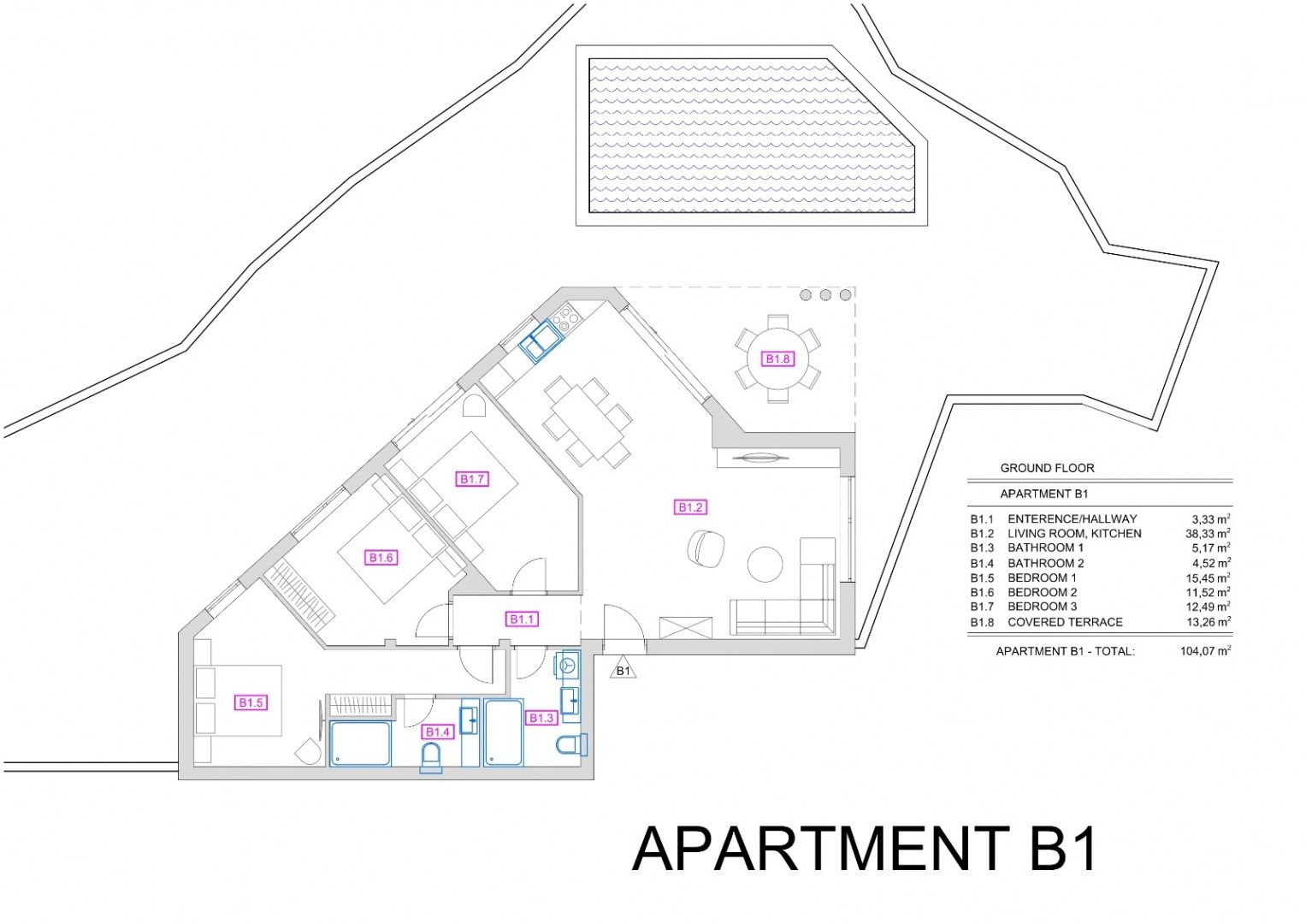 OSTROV KRK, VRBNIK - Apartmán v přízemí s bazénem a zahradou Představujeme moderní novostavbu ve Vrbniku se šesti bytovými jednotkami, na okraji zeleného pásu! - Vysoce kvalitní konstrukce a vybavení. Vyzdvihujeme elektrické podlahové vytápění s Wi-Fi ovládáním (obývací pokoj, koupelna a WC), klimatizace Daikin v ložnicích a obývacím pokoji, kotel o objemu 180–200 litrů, keramiku s dřevěným vzorem, venkovní PVC truhlářské práce, interiérové dřevěné dveře se skrytými panty a magnetickým zamykáním a kamerový systém. - Budova v klidné lokalitě s dostatkem soukromí a krásným výhledem, pouhých 350 metrů od moře! Nabízíme pro vás: Apartmán v přízemí s bazénem a zahradou - plocha 104 m2 - 3 ložnice (11 m2 - 15,50 m2) - 2 koupelny - otevřený prostor kuchyně s jídelnou a obývacím pokojem - 38 m2 - krytá terasa 13 m2 - zahrada - bazén, prostorná zahrada, 2 parkovací místa Dokončení výstavby je plánováno na léto 2026. Vynikající příležitost pro soukromé užívání nebo investici do turistického pronájmu! ***