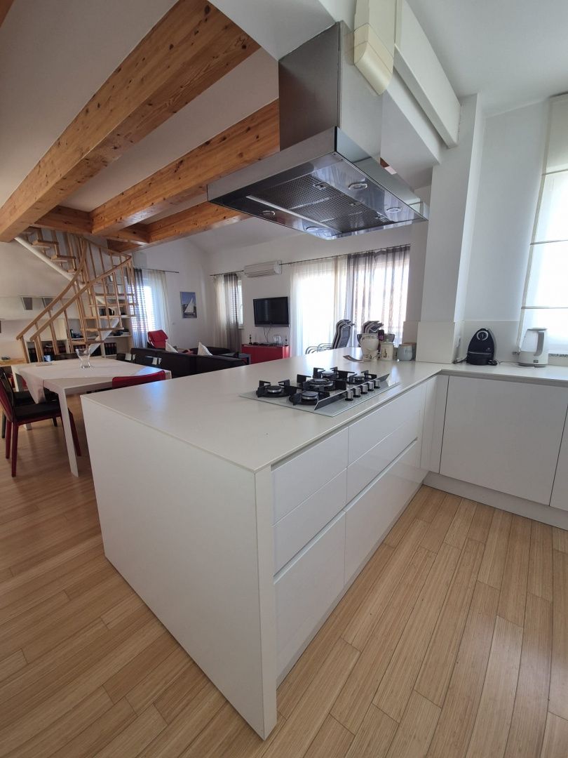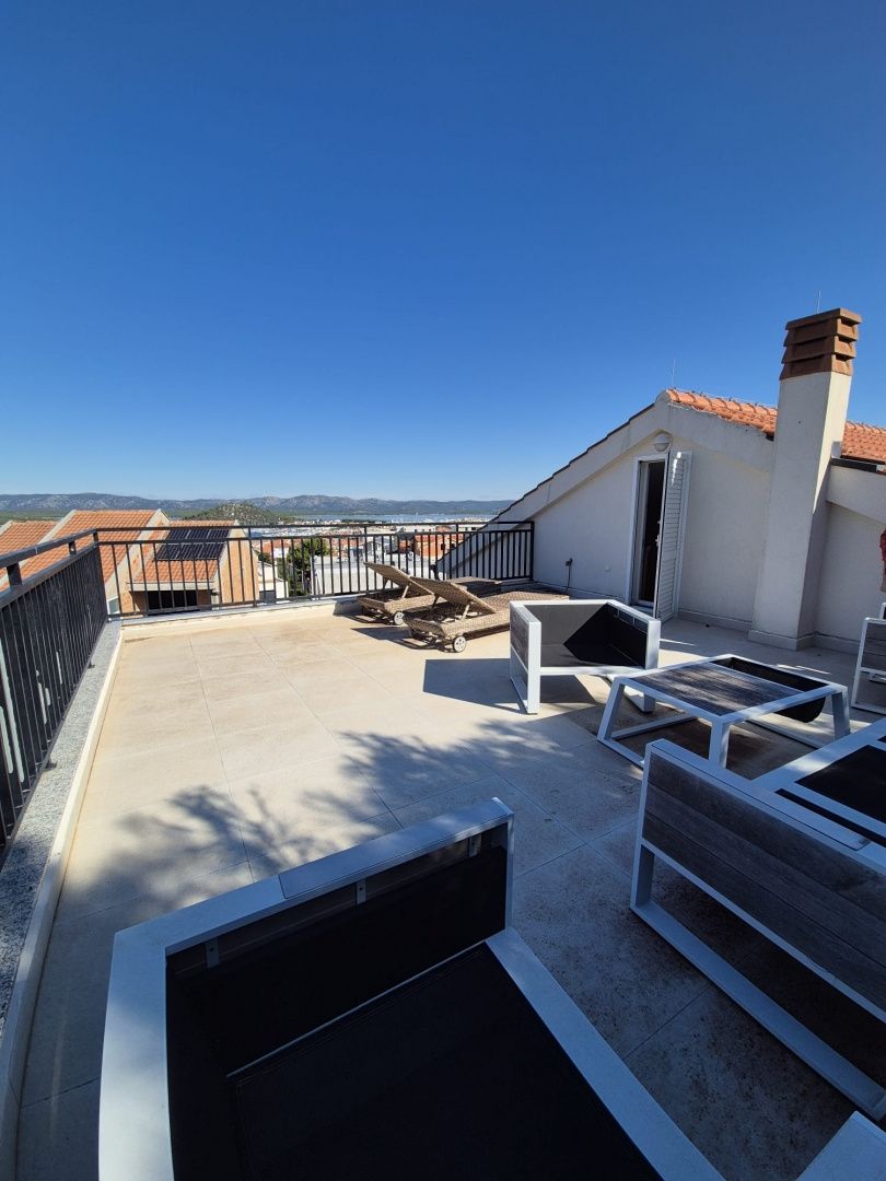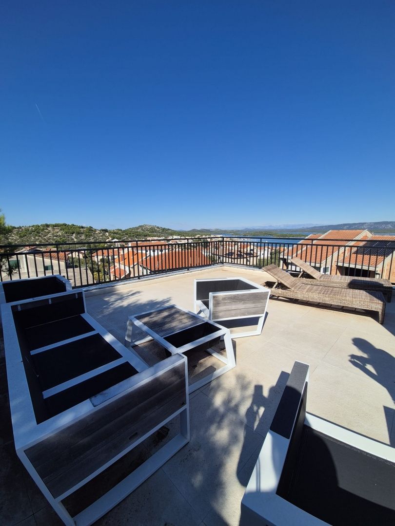 OSTROV MURTER, MURTER - PŘÍLEŽITOST! Exkluzivní čtyřpokojový penthouse Penthouse s krásným výhledem na moře! Na prodej je atraktivní penthouse rozložený na dvou podlažích, který se nachází v klidné části ostrova Murter - jednoho z nejžádanějších míst na pobřeží Jaderského moře. Tato unikátní nemovitost nabízí kombinaci moderního designu, přirozeného světla a ničím nerušeného výhledu na moře. Byt se skládá z prostorného obývacího pokoje s kuchyní a jídelnou, který se rozkládá až do prvního patra, spolu se třemi pohodlnými ložnicemi a dvěma moderními koupelnami. V horním patře se nachází galerie - ideální jako pracovní prostor, další ložnice nebo relaxační zóna. Výjimečným prvkem tohoto penthouse je až šest teras, včetně velké střešní terasy s působivým panoramatickým výhledem na moře - ideální místo pro sledování západů slunce a letních večerů. Byt je vybaven kamny na dřevo a klimatizací pro celoroční bydlení a bambusové podlahy dodávají prostoru teplo a eleganci. Kuchyně je vyrobena na míru a plně vybavena - s běžnou i parní troubou, myčkou nádobí a všemi potřebnými spotřebiči pro pohodlné bydlení. K bytu náleží dvě parkovací místa, což dále zvyšuje praktičnost a hodnotu této nemovitosti. Tato nemovitost je ideální pro ty, kteří hledají luxusní bydlení u moře, ať už k trvalému pobytu, dovolené nebo jako investici k turistickému pronájmu. Klíčové vlastnosti: Lokalita: Ostrov Murter Typ: Penthouse na dvou podlažích Plocha: 155 m2 4 ložnice (včetně galerie) 2 koupelny 6 teras, včetně střešní Otevřený obývací pokoj s kuchyní a jídelnou Bambusové podlahy Kamna na dřevo a klimatizace Plně vybavená kuchyň (s parní troubou) 2 parkovací místa Příležitost, kterou byste si neměli nechat ujít! Zavolejte nám pro více informací a domluvte si prohlídku této mimořádně krásné nemovitosti!
