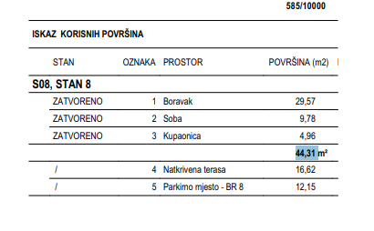 OSTROV PAG, POVLJANA - PŘÍLEŽITOST! Nově postavený apartmán u moře! ATRAKTIVNÍ NOVOSTAVBA – 300 m od moře, Povljana (ostrov Pag) Prodává se moderní apartmán označený jako "Apartmán 8", který se nachází v 1. patře exkluzivní novostavby v klidné a slunné části Povljany. Tato nemovitost představuje perfektní kombinaci funkčnosti a středomořského životního stylu. Základní charakteristiky: Plocha apartmánu: 44,31 m² (maximální využití půdorysu) Terasa: Prostorná krytá terasa o rozloze 16,62 m² – ideální pro užívání si letních večerů. Parkování: Soukromé parkovací místo (12,15 m²) je zahrnuto v ceně. Lokace: Klidná ulice, pouhých 300 metrů snadné chůze od křišťálově čistého moře. Dispozice pokojů: Interiér apartmánu je navržen moderně a vzdušně: Obývací pokoj s kuchyní a jídelním koutem (29,57 m²) Pohodlná ložnice (9,78 m²) Koupelna (4,26 m²) Proč si vybrat Povljanu a ostrov Pag? Povljana se nachází v jižní části ostrova Pag a je skutečným klenotem pro ty, kteří hledají klid, čisté moře a nedotčenou přírodu. Místo nabízí veškeré vybavení potřebné pro život a turistiku - od vynikajících restaurací a obchodů až po dobře udržované promenády. Vynikající spojení: Silniční dostupnost: Pažský most umožňuje rychlý příjezd autem v kteroukoli roční dobu. Letecké spojení: Letiště Zadar je vzdálené jen hodinu jízdy. Námořní linky: Trajektová linka Žigljen–Prizna a rychlolodní linky do Rijeky, Rabu a Lošinje. Investiční potenciál: Vzhledem ke své poloze a kvalitě provedení je apartmán vynikající příležitostí k vysoce výnosnému turistickému pronájmu nebo jako soukromá oáza pro rodinnou dovolenou.