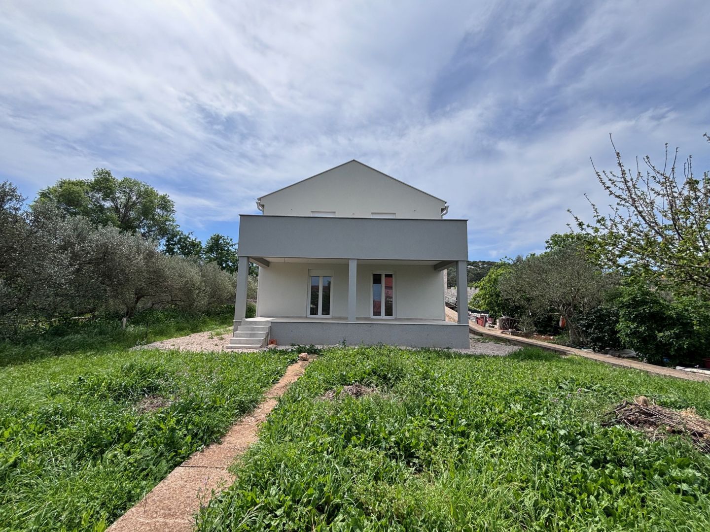 OSTROV PAŠMAN, TKON - Dům s výhledem na moře, k nastěhování od 01.05. Na prodej je plně zařízený samostatně stojící dům o rozloze 135 m² na pozemku o rozloze 450 m², situovaný na výborném místě v Tkonu - jen pár minut chůze od pláže, centra a veškeré občanské vybavenosti. Dispozice: Přízemí: obývací pokoj s kuchyní, koupelna, úložný prostor První patro: 3 ložnice, koupelna Krytá terasa 24 m² + otevřená terasa 24 m² Parkování min. 3 vozidla Charakteristika: PVC okná, fasáda 10 cm Podlahové vytápění (Wi-Fi termostaty) Klimatizace Mitsubishi Kvalitní keramika a laminát Elektřina, voda, bio jáma Vybavení: Dům se prodává kompletně zařízený (kuchyňská linka na míru se spotřebiči Bosch, Samsung 65" TV, boxspring postele, zahradní nábytek). Dokumentace v pořádku (1/1), kolaudační povolení v procesu. Skvělá příležitost pro dovolenou, bydlení nebo turistický pronájem. Pro více informací nás neváhejte kontaktovat.