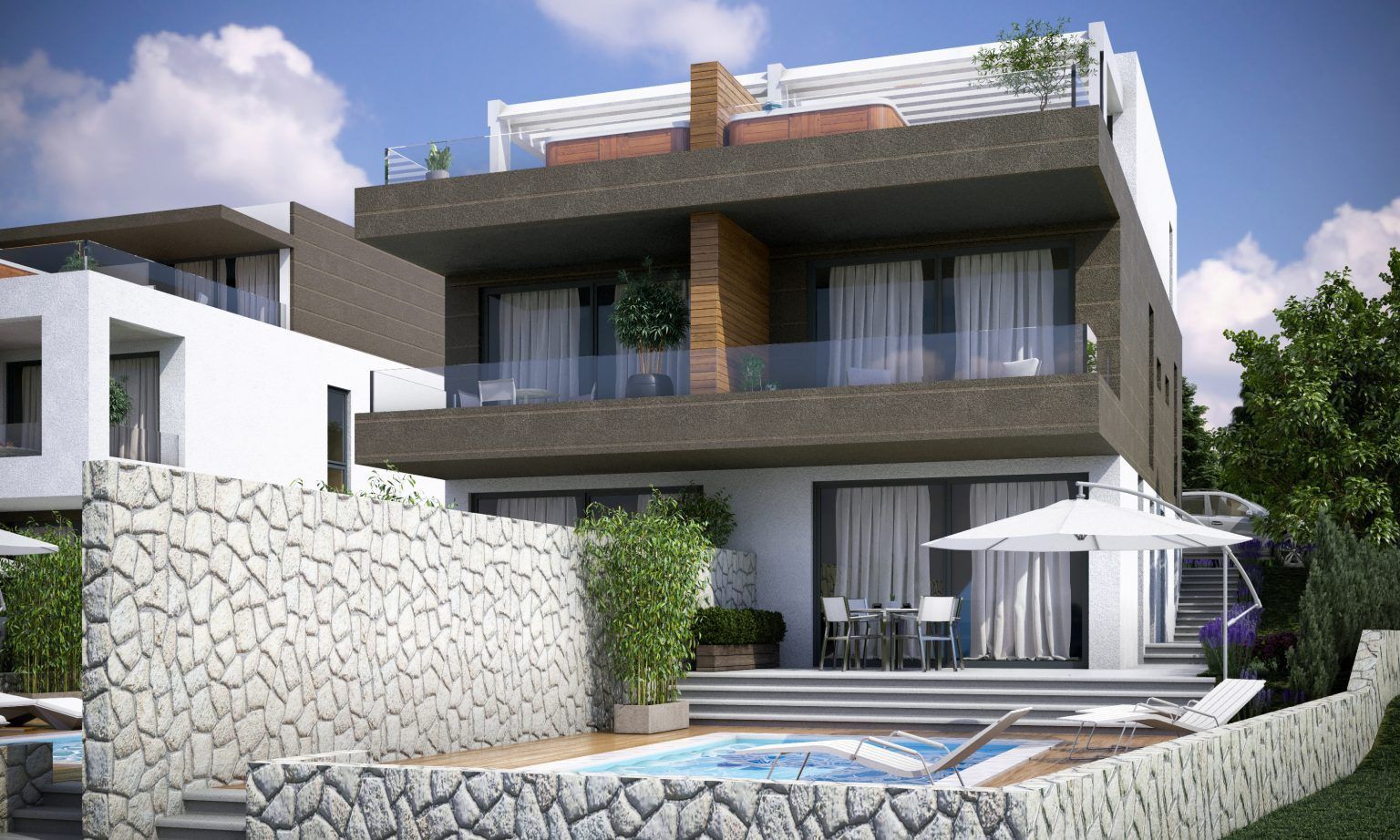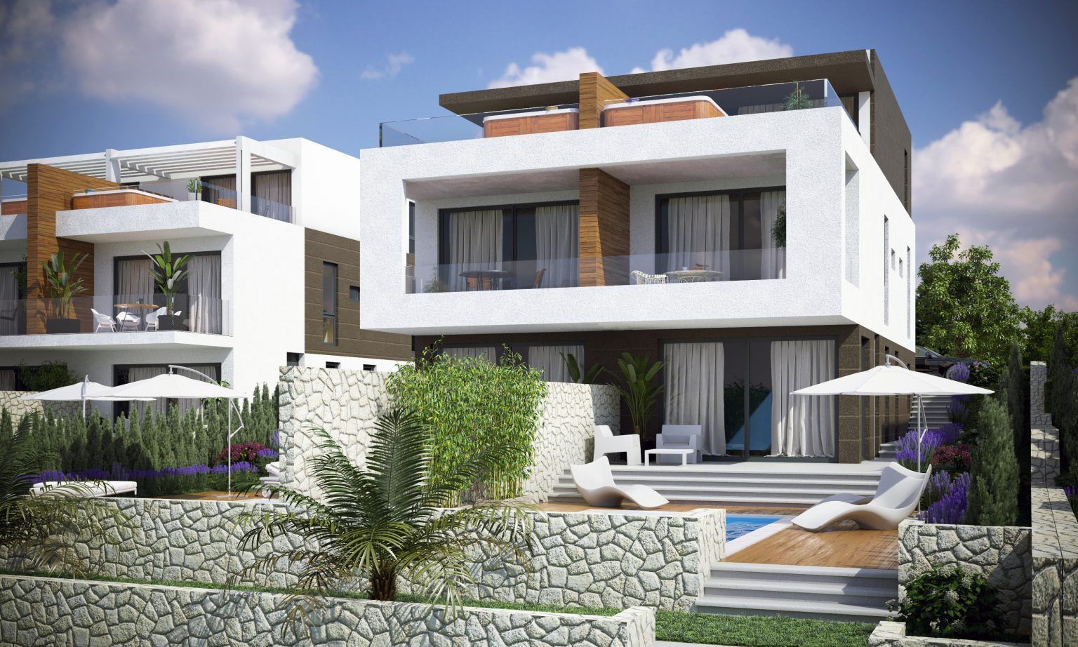 PAG, NOVALJA - Mezonetový penthouse se střešní terasou Na ostrově Pag v Novalji, pouhých 200 metrů od moře, jsou tři městské vily se 4 bytovými jednotkami v každé. Dvouložnicové byty v přízemí 62 a 69 m2 mají zahradu, bazén a jedno parkovací místo, mezonetové byty se nacházejí v prvním patře a mají vířivku na střešní terase. Nádherné novostavby obklopené zelení v krásné lokalitě v blízkosti města a moře. Zprostředkujeme prodej krásného dvoupodlažního penthouse v městské vile se 4 bytovými jednotkami. Byt se skládá ze dvou ložnic, obývacího pokoje s kuchyní, předsíně, dvou koupelen, samostatného WC, balkonu, terasy a galerie, kterou lze využít jako třetí ložnici nebo prostor pro společenské vyžití. K bytu náleží komora a dvě parkovací stání v objektu. Obytná plocha bytu je 99 m2. Terasa bude vybavena jacuzzi. Nová budova je postavena z vysoce kvalitních materiálů a má podlahové vytápění ve všech pokojích a umístění je blízko moře a pláže. Probíhá dostavba dvou objektů (zahájení nastěhování v létě). Třetí je plánován na konec roku.