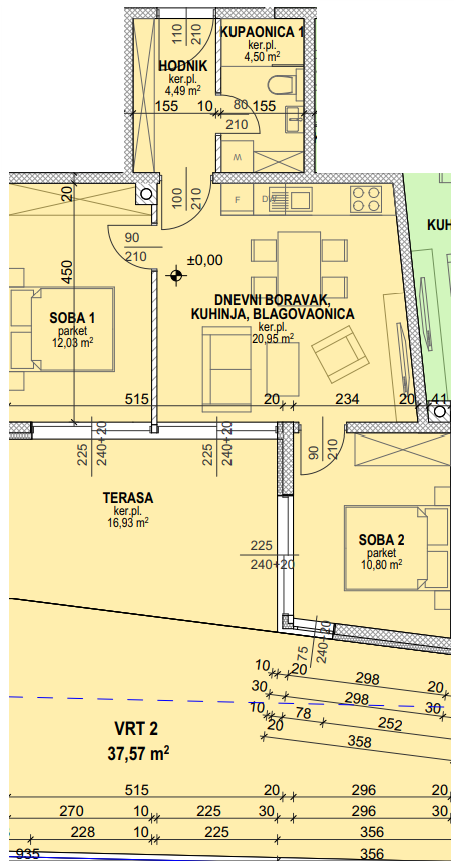 PAG, POVLJANA - PŘÍLEŽITOST! Novostavba 200m od pláže! S2 Apartmán na prodej s prostornou zahradou. Apartmán se skládá ze dvou ložnic, kuchyně s obývacím pokojem, koupelny, terasy a jednoho parkovacího místa. Budova, ve které se apartmán nachází, se skládá z deseti (10) bytových jednotek a vstup je z venkovního prostoru na severovýchodní fasádě. Apartmán je orientován na jih. Celý objekt je postaven z vysoce kvalitních materiálů a s kvalitní zvukovou a tepelnou izolací. Vytápění apartmánů, chlazení a ohřev teplé vody jsou řešeny tepelnými čerpadly. Apartmán je vybaven vysoce kvalitní keramikou a parketovými podlahami. Všechny interiérové dveře jsou dřevěné, se zárubněmi na šířku zdi. Ve všech místnostech v apartmánu je plánována instalace PVC oken s dvojitým tepelně izolačním sklem se skleněnými panely o tloušťce 4 mm. V budově je plánováno bezpečnostní a panické osvětlení s lampami s autonomním zdrojem napájení (baterie), provozní autonomie 3 hodiny po výpadku síťového napájení. Objekt je ve výstavbě a nabízí 10 apartmánů. Investor je spolehlivá společnost s dlouholetými zkušenostmi ve stavebnictví. Pro více informací a pro domluvení prohlídky nemovitosti nás prosím kontaktujte.