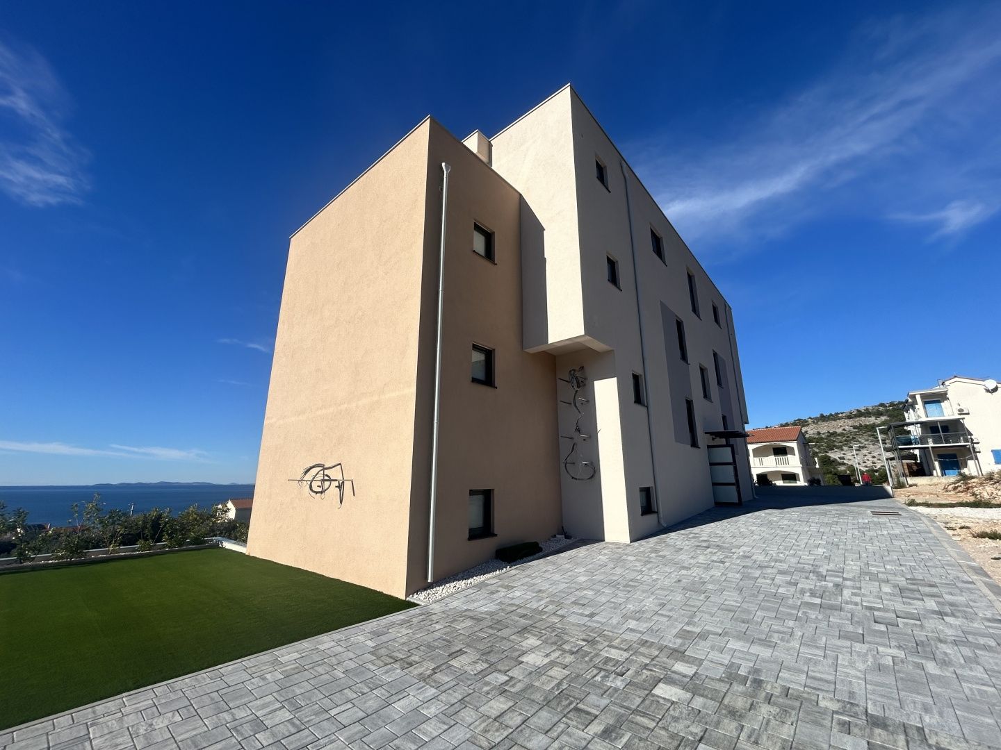 PRIMOŠTEN, DOLAC - Apartmán S4 s nejkrásnějším výhledem Byt v novostavbě o rozloze 86,76 m2 představuje dokonalé spojení komfortu, praktičnosti a estetiky. Byt se nachází ve druhém patře bytového domu s celkem osmi byty, poskytující svým nájemníkům klidné a soukromé prostředí. Skládá se z hlavní ložnice s vlastní koupelnou a poskytuje intimní prostor pro relaxaci, další ložnice a koupelny nabízejí komfort a flexibilitu. Kuchyně, oddělená od obývacího pokoje a jídelny, poskytuje funkční prostor pro přípravu jídel s dodatečným soukromím, zatímco jídelna, integrovaná s obývacím pokojem, vytváří centrální prostor pro socializaci a stravování. Obývací pokoj je světlý a vzdušný a nabízí příjemné prostředí pro relaxaci. Lodžie nabízí nádherný výhled na západ slunce a dále rozšiřuje prostor pro vyžití. Praktičnost zajišťuje jedno parkovací stání patřící k bytu. Tento apartmán nabízí rovnováhu mezi soukromím a společným bydlením a vytváří útulný domov s nejkrásnějším výhledem na západ slunce v Dalmácii. Primošten je krásné městečko ležící na východním pobřeží Jaderského moře, mezi Šibenikem a Trogirem. V Primoštenu - vrch Gaj, na kterém je socha Panny Marie Loretánské, která je zároveň symbolem a patronkou Primoštenu. Primošten je ze všech stran obklopen dlouhými písečnými plážemi, které vyrazí dech každému návštěvníkovi. Pro milovníky intimity je plná skrytých malých pláží, které vám po dlouhých procházkách snadno padnou do oka. Na druhou stranu se vždy můžete rozhodnout pro velké písečné pláže a svou velikostí vynikají dvě pláže, a to Raduča a Mara. Pláž Raduča se nachází v samém centru a táhne se podél celého poloostrova, zatímco pláž Mara je pod kopcem Gaj a nabízí mimořádný výhled na celou specifickou podobu starého jádra Primoštenu.