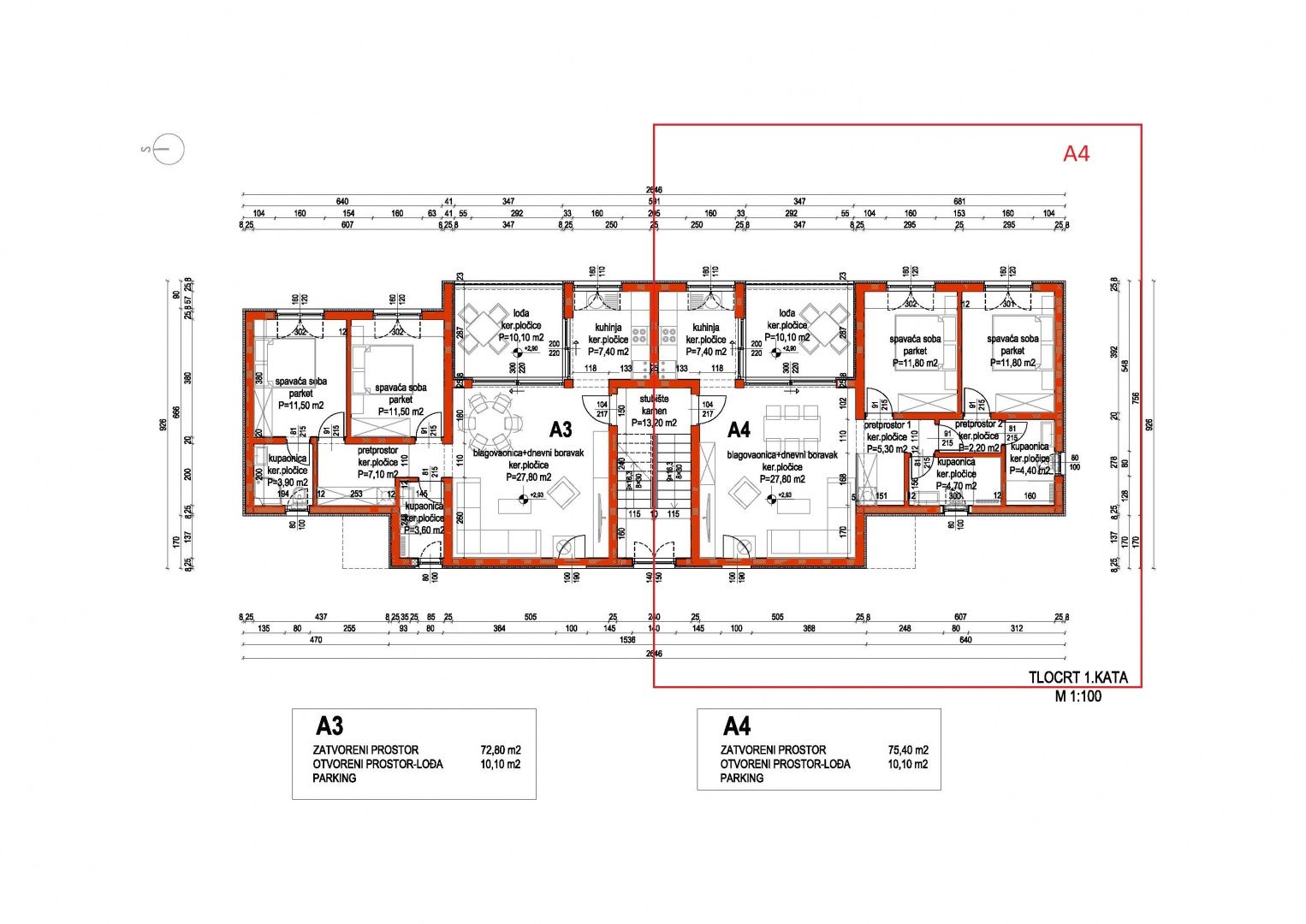 PRIMOŠTEN, DOLAC – Dvoupokojový apartmán v novostavbě s krásným výhledem na moře PRLIKA! Prodává se moderní dvoupokojový apartmán v 1. patře novostavby s celkovou užitnou plochou 85,48 m², který se nachází v klidné a atraktivní vesničce Dolac nedaleko Primoštenu. Apartmán A4 se nachází v kvalitní novostavbě s celkem 8 apartmány na krásném vyvýšeném místě, které nabízí nádherné západy slunce, autentickou středomořskou scenérii a výhled na moře. Apartmán se skládá ze dvou ložnic, z nichž jedna má vlastní koupelnu (en-suite), další koupelny a otevřeného konceptu kuchyně, jídelny a obývacího pokoje s výstupem na lodžii. Celý apartmán je vybaven klimatizací, kvalitními truhlářskými dílnami a moderními dokončovacími materiály. K nemovitosti náleží jedno parkovací místo a další výhodou je možnost zakoupení sousedního pozemku o rozloze 100 m², který lze využít jako další zahradu, zahradu nebo další parkování. Pláž je vzdálena pouhých 280 metrů, což je jen pár minut chůze. Tento apartmán představuje vynikající příležitost pro klidný rodinný život, dovolenou nebo investici do turistického pronájmu, a to díky své atraktivní poloze a blízkosti Primoštenu, jednoho z nejžádanějších míst na Jadranu. Pro další informace nebo pro domluvení prohlídky nás neváhejte kontaktovat.