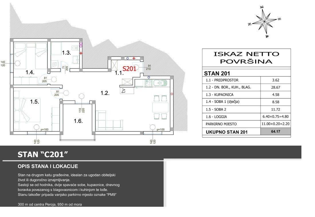 Prodáváme byt (C201) ve druhém patře nové budovy v Peroju!