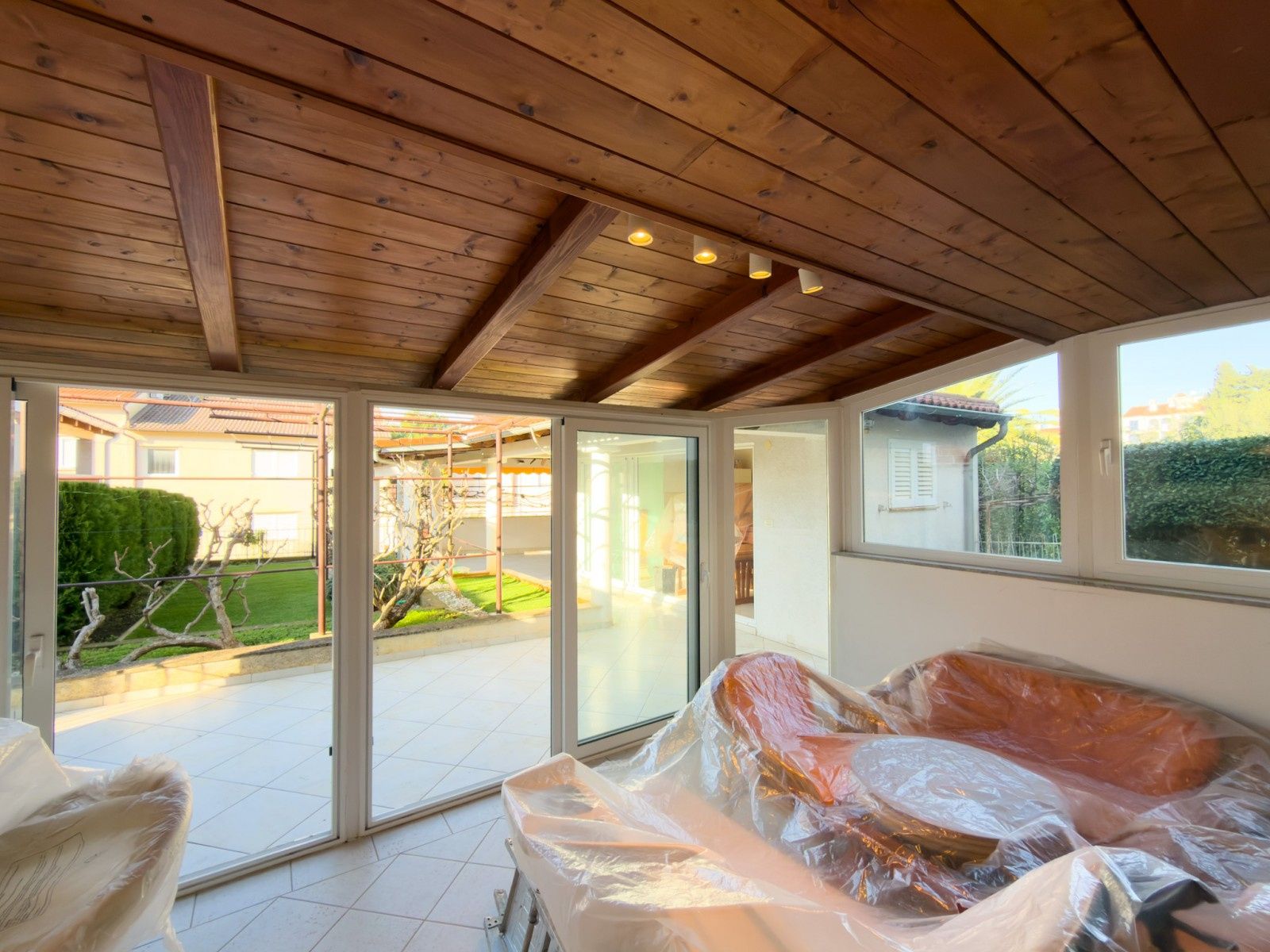 V klidné a zelené části Puly, pouhých 50 metrů od moře a promenády Lungomare, se prodává dům se dvěma samostatnými bytovými jednotkami. Nachází se na upraveném pozemku o rozloze 701 m² a tato nemovitost nabízí výjimečnou kombinaci soukromí, funkčnosti a atraktivní lokace. Dům se skládá ze dvou podlaží + suterénu. V prvním patře se nachází prostorný byt o rozloze 98,7 m² s velkým západně orientovaným balkonem (12 m²), dvěma ložnicemi, obývacím pokojem, kuchyní, jídelnou a koupelnou. Byt je prosvětlený a obklopený výhledem na borový les a středomořskou zeleň. V přízemí se nachází druhá, menší bytová jednotka (33 m²) s dalšími zařízeními: zimní zahradou se skleněnými stěnami (18 m²), vinným sklípkem/letní kuchyní (16 m²) a velkou zastřešenou terasou (34 m²) s grilem. Prostor je velmi příjemný, propojený se zahradou, orientovaný na jih a ideální pro relaxaci po celý rok. V suterénu se nachází garáž (21 m²) a vedle domu jsou další tři parkovací místa – jedno zastřešené pergolou s vinnou révou. Zahrada je udržovaná a zařízená ve stylu venkovských vil, s kiwi, středomořskými bylinkami a pocitem úplného soukromí. Oba byty jsou klimatizované. Dům je dobře izolovaný (12 cm tepelné izolace + dodatečná cihlová izolace) a konstrukce zahrnuje kvalitní okna a střechu. Nemovitost je ideální pro vícečlennou rodinu, dvě generace, kombinaci bydlení a turistického pronájmu, nebo jako cenná investice na skvělé lokalitě v Puli.